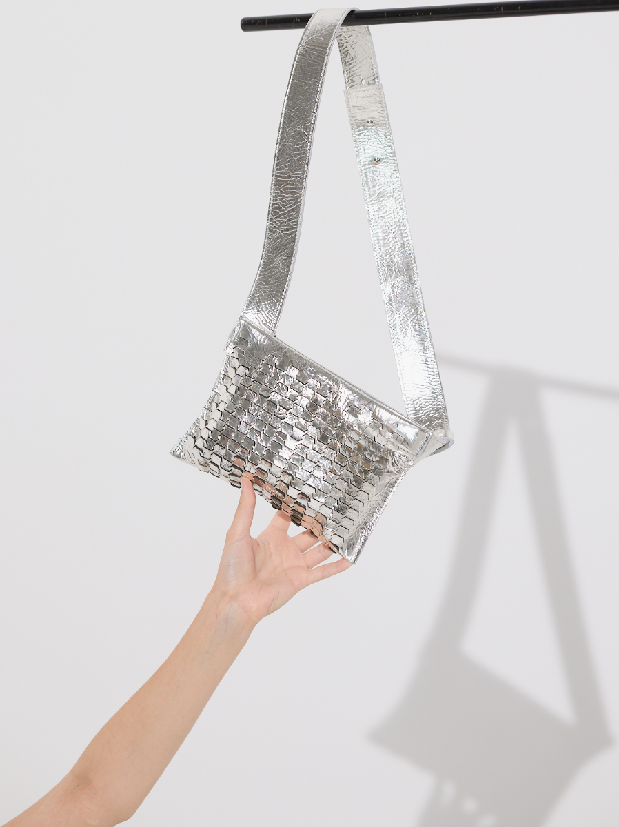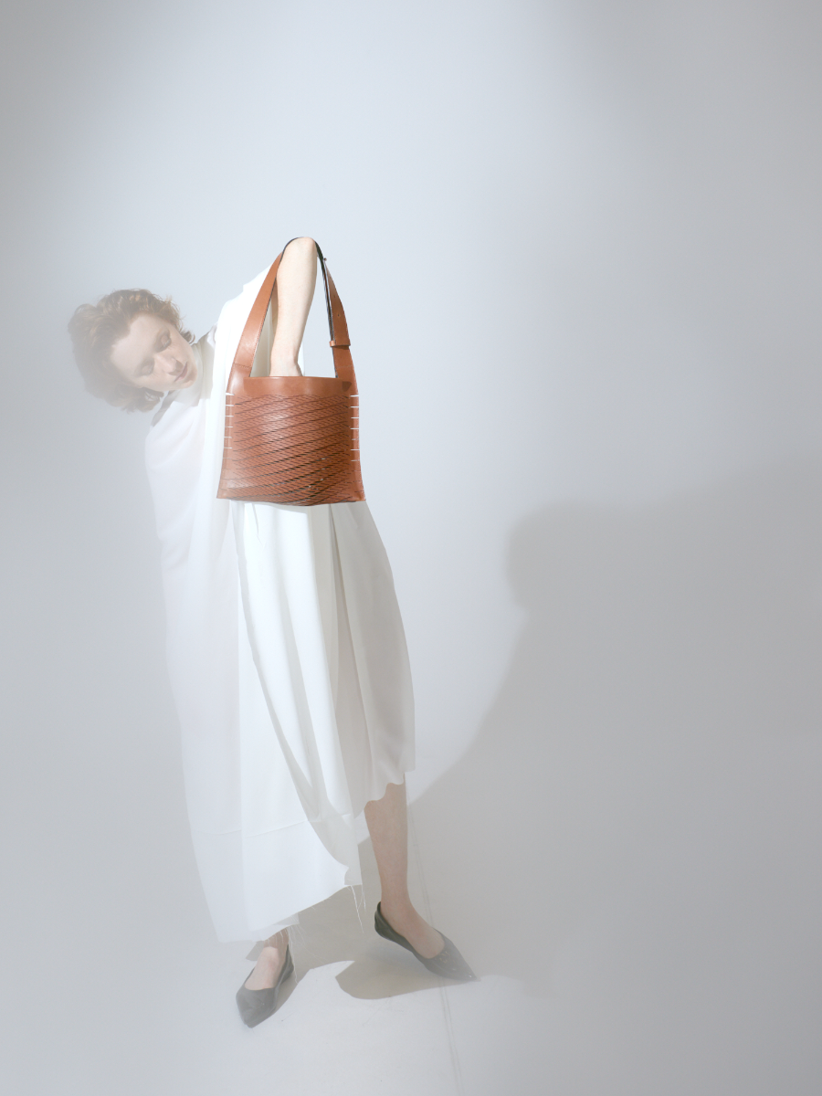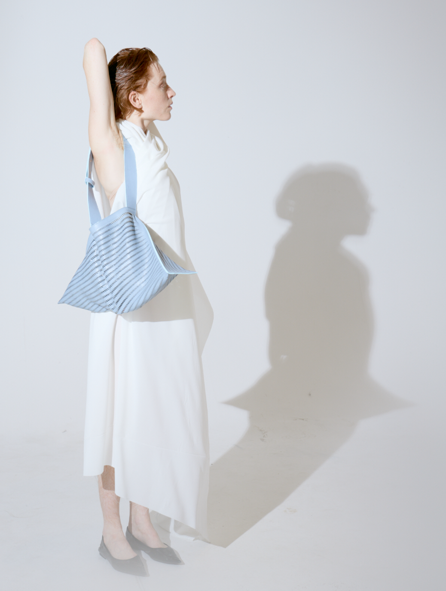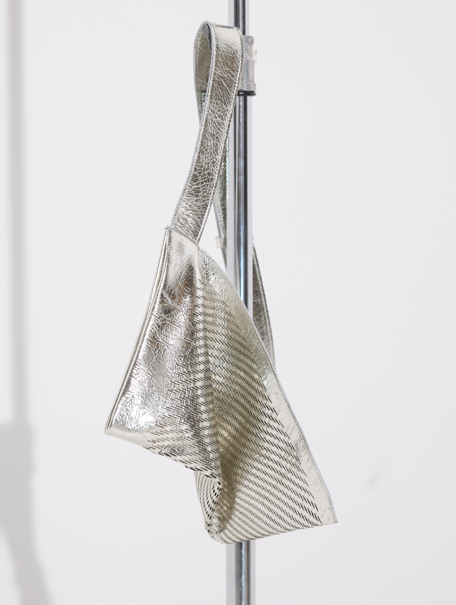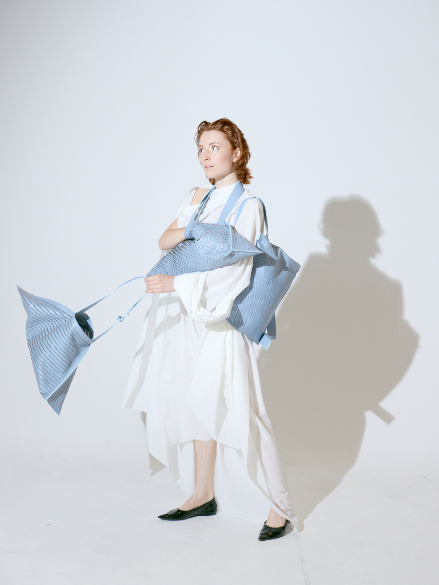 My graduate collection is a group of adaptive shape-changing clothing accessories. The objects are made using a minimal tailoring method with laser-cut perforations to create flexible structures, which makes it possible to size and shape the transformation of the bags in an adaptive way using the elements inserted in them. The collection pieces minimize the amount of raw material used and tailoring waste during manufacturing. I present pattern systems and variations on leather materials of different thicknesses and characters through the scale and pattern variations of the several cut surfaces.