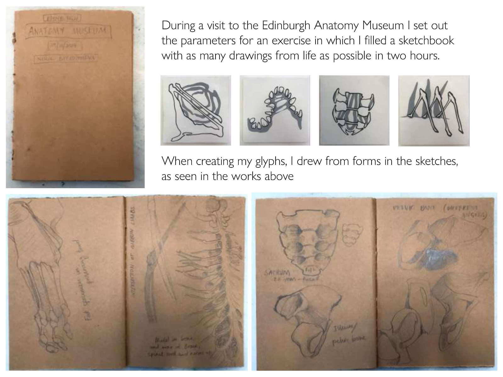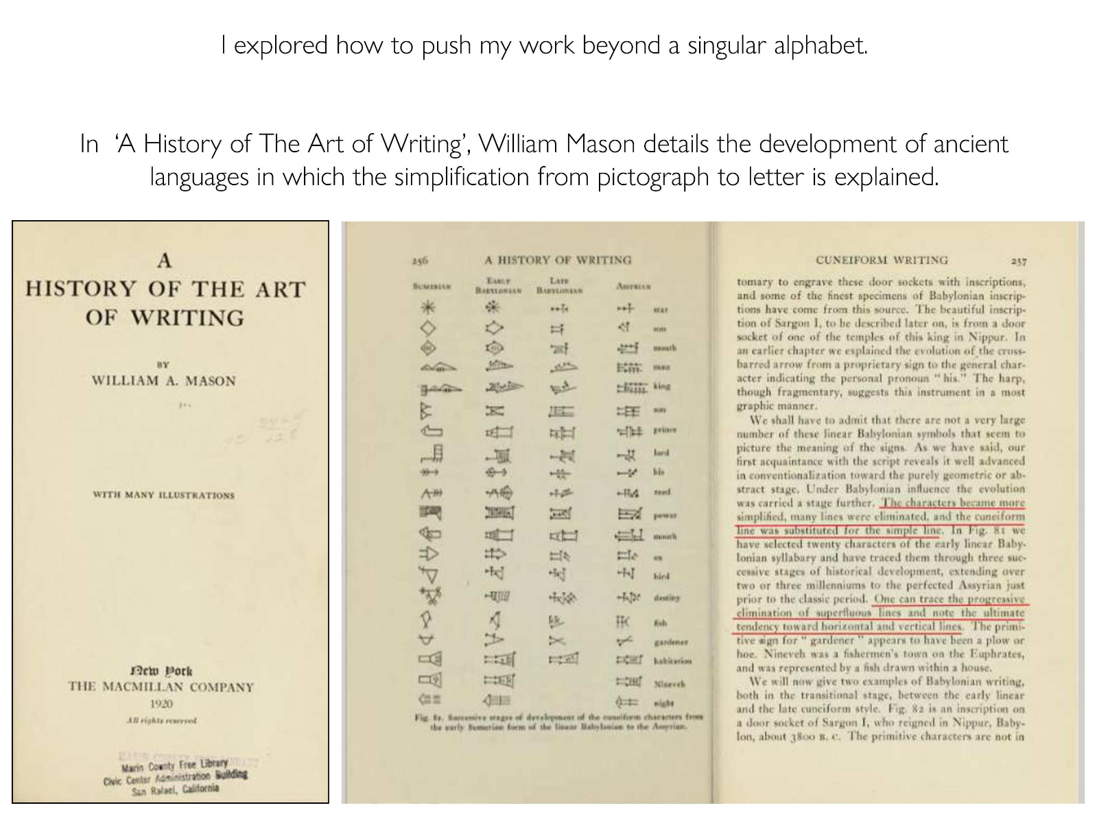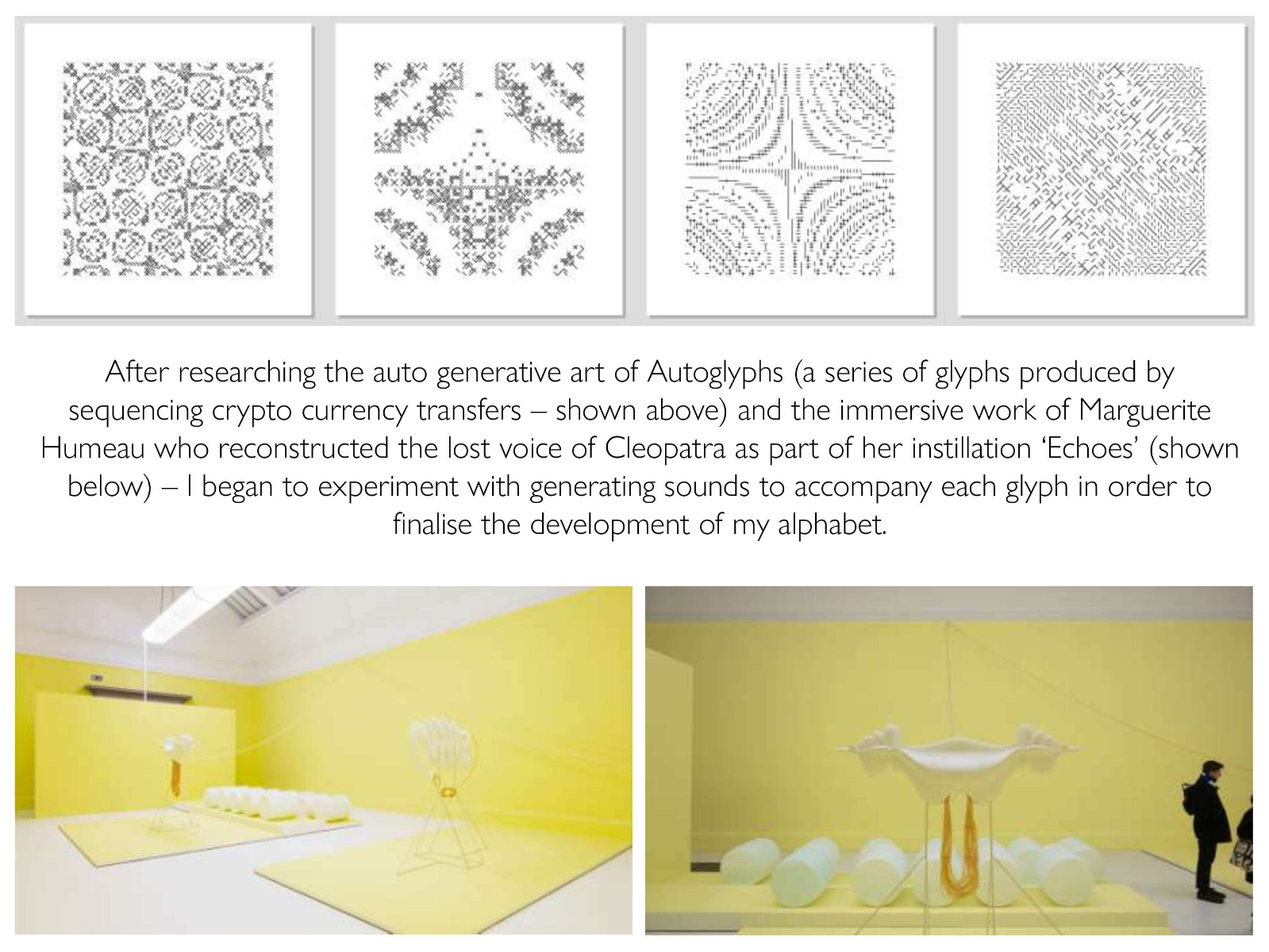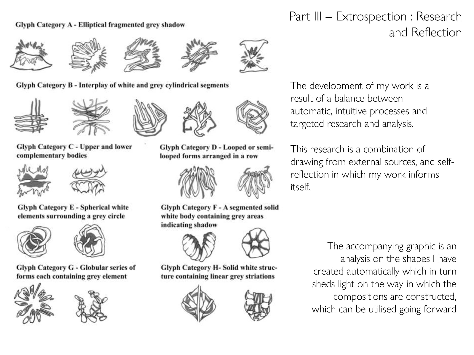 The human need to communicate and ‘leave a mark’ is ancient, visible even in the earliest traces of prehistoric life. Symbols - both representational and abstract - have persisted throughout history, surviving even the twentieth century’s so-called ‘death of painting.’ In my Aftoglyph installation, I created 121 glyphs shaped from forms that feel both organic and alien. Each distills my exploration of line and form into a visual fingerprint of my aesthetic language, shaped by targeted research and refined automation. My work seeks the obscure while probing the innate. The installation’s fragments invite viewers to assemble meaning for themselves.