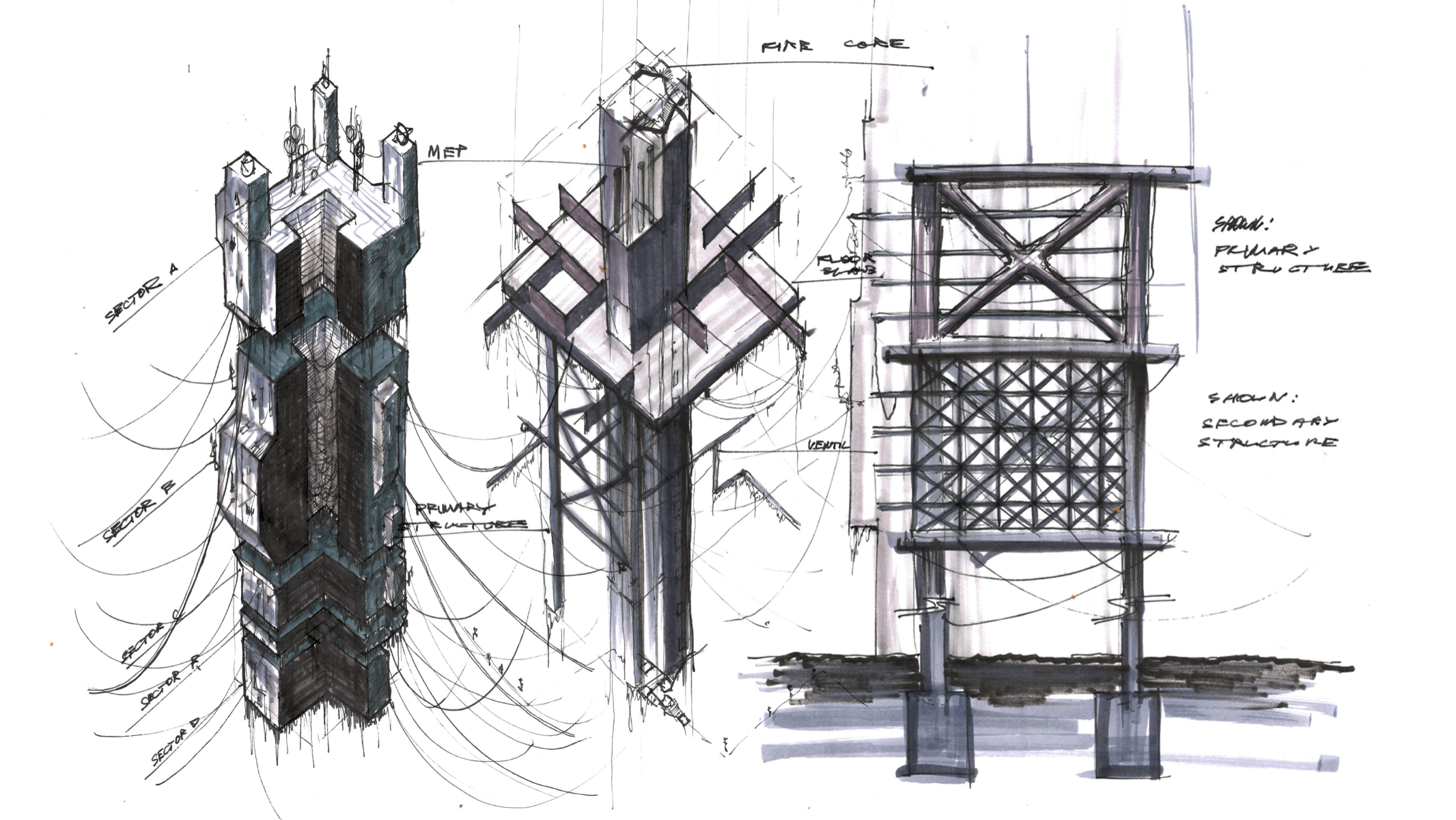 The project explores the consequences of cities that are fully reliant on digital technology and cloud services. As long as the technology functions, the system can operate. But what would happen if, one day, the digital backbone were to cease to exist? Despite designing a dystopia was never the main goal — but it was necessary in order to explore a new architectural typology — the Megatower, a failed vertical digital city. Unable to exist without its digital overlay, the Megatower had to be adapted to the new environment, making Arocalypse an adaptive reuse project, extrapolated on a post-technological skyline.