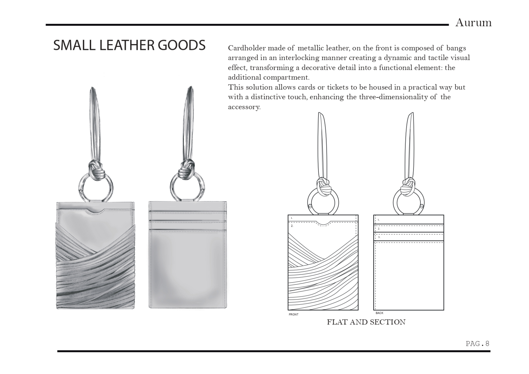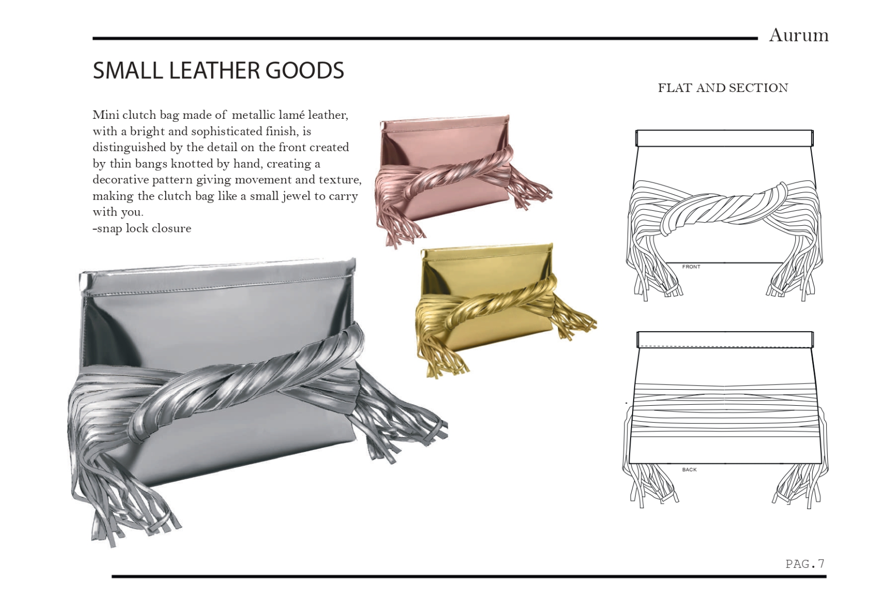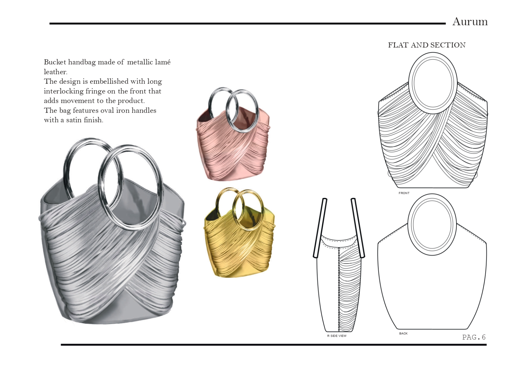 This collection of bags explores the art of transforming metals into pure elegance. Inspired by the fluid forms of bracelets, each bag features modern, sculptural lines that recall the aesthetics of worked metal. Metallic shades of gold, silver and rose gold coat the surfaces with an eye-catching play of light and reflections giving each piece an immediate feeling of luxury and contemporaneity. The circular part, a symbol of perfection and continuity, is reinterpreted by leather bangs with a metallic effect. creating a dynamic contrast between the softness of leather and the rigidity of metal. A collection that combines tradition and innovation, telling the story of the beauty and strength of metal through th craftsmanship of its workmanship.