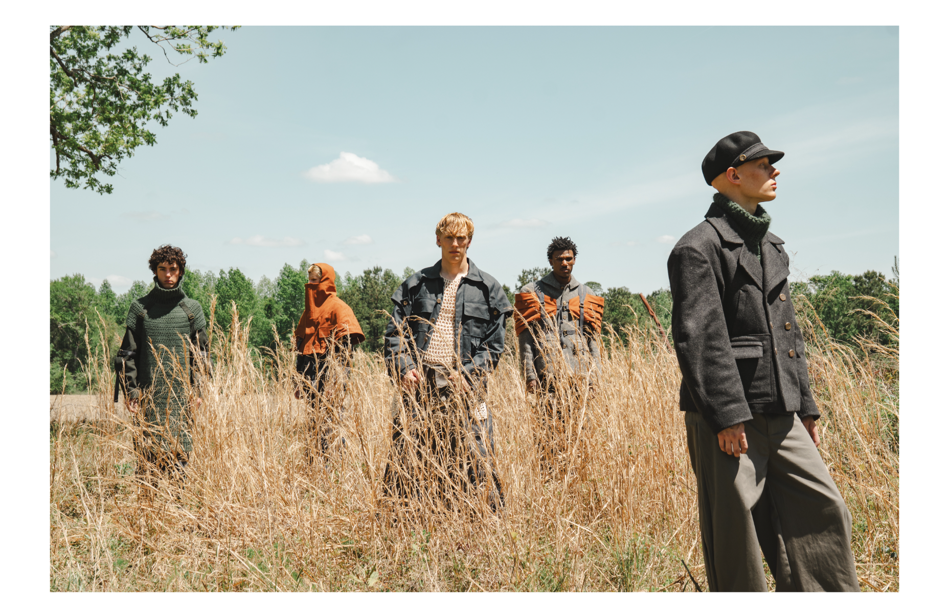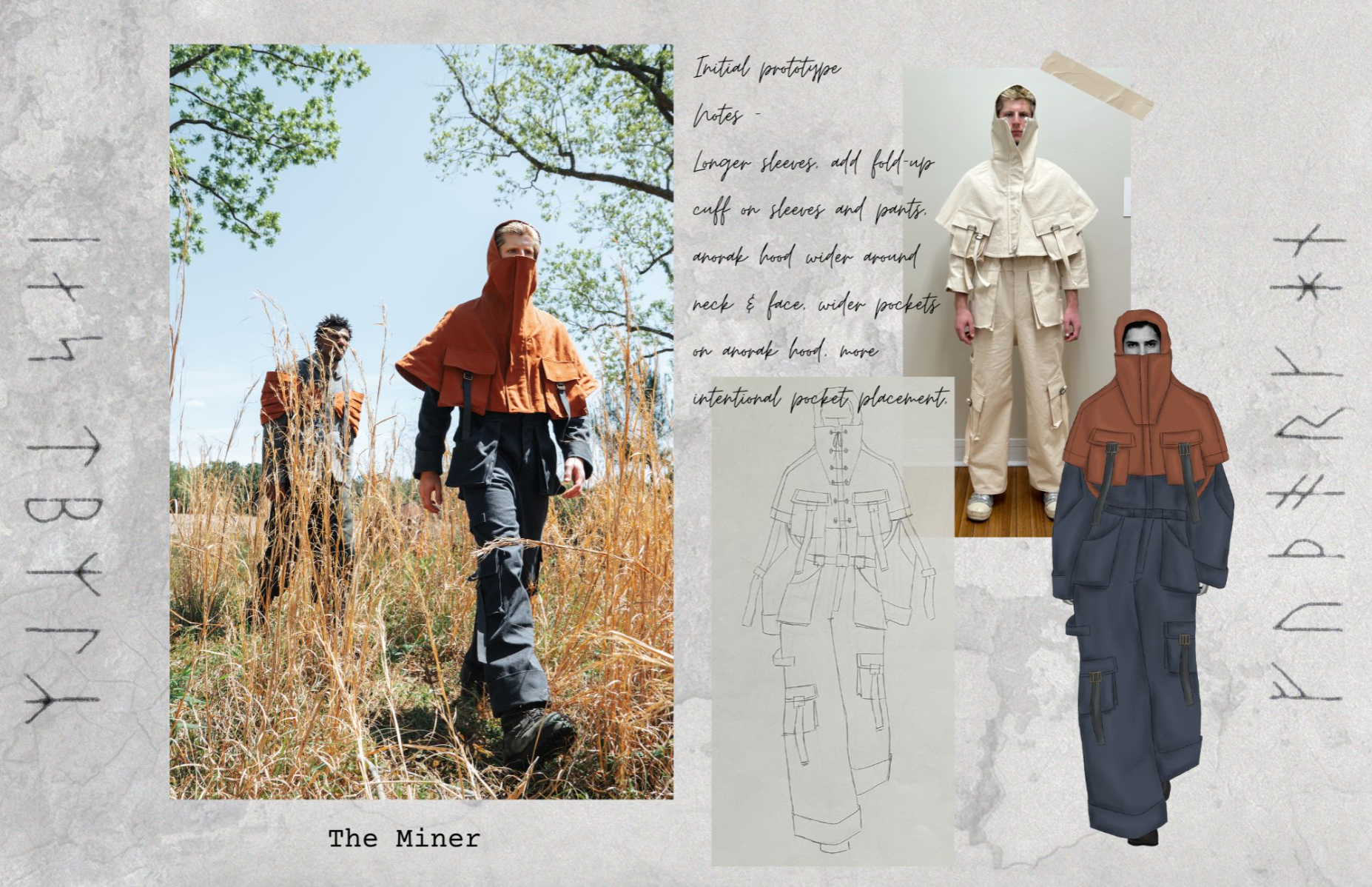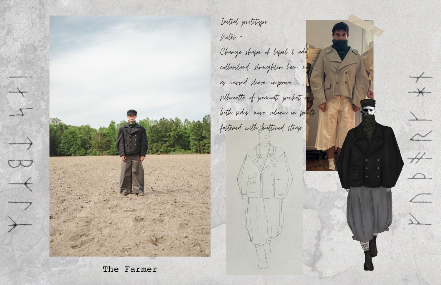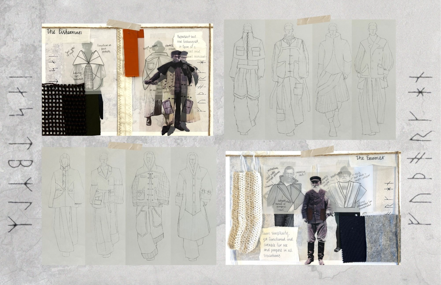 Futhark explores traditional Swedish communities - the Farmer, the Miner, the Industrial Worker, the Fisherman, the Viking Warrior, and the Sami Reindeer Herder - reflecting on the deep and interwoven relationships between individuals and their environment. Each community demonstrates a reciprocal influence with the environment and reflects Sweden's historical resilience, where harsh landscapes have shaped cultural identity, and the tension between rural and urban, tradition and modernity, nature and industry. Futhark celebrates these communities with respect and authenticity, showcasing a harmonious balance of heritage and modernity. At the heart of this concept lies the cyclical relationship between people and the environment: as our environments mold societal and cultural structures, so do we reshape the world around us. This collection invites a reflection on how modern Swedish society can learn from its historical communities to create a more balanced and sustainable relationship with its surroundings. CREDITS Photography by Samuel Murray Talent by Benjamin Pulka, Archer Lesser, Jonah Punnett, Aaron Waters, and Peyton Walston Jewelry Design by Rhys Morrow Shoe Design by Hailey Lander
