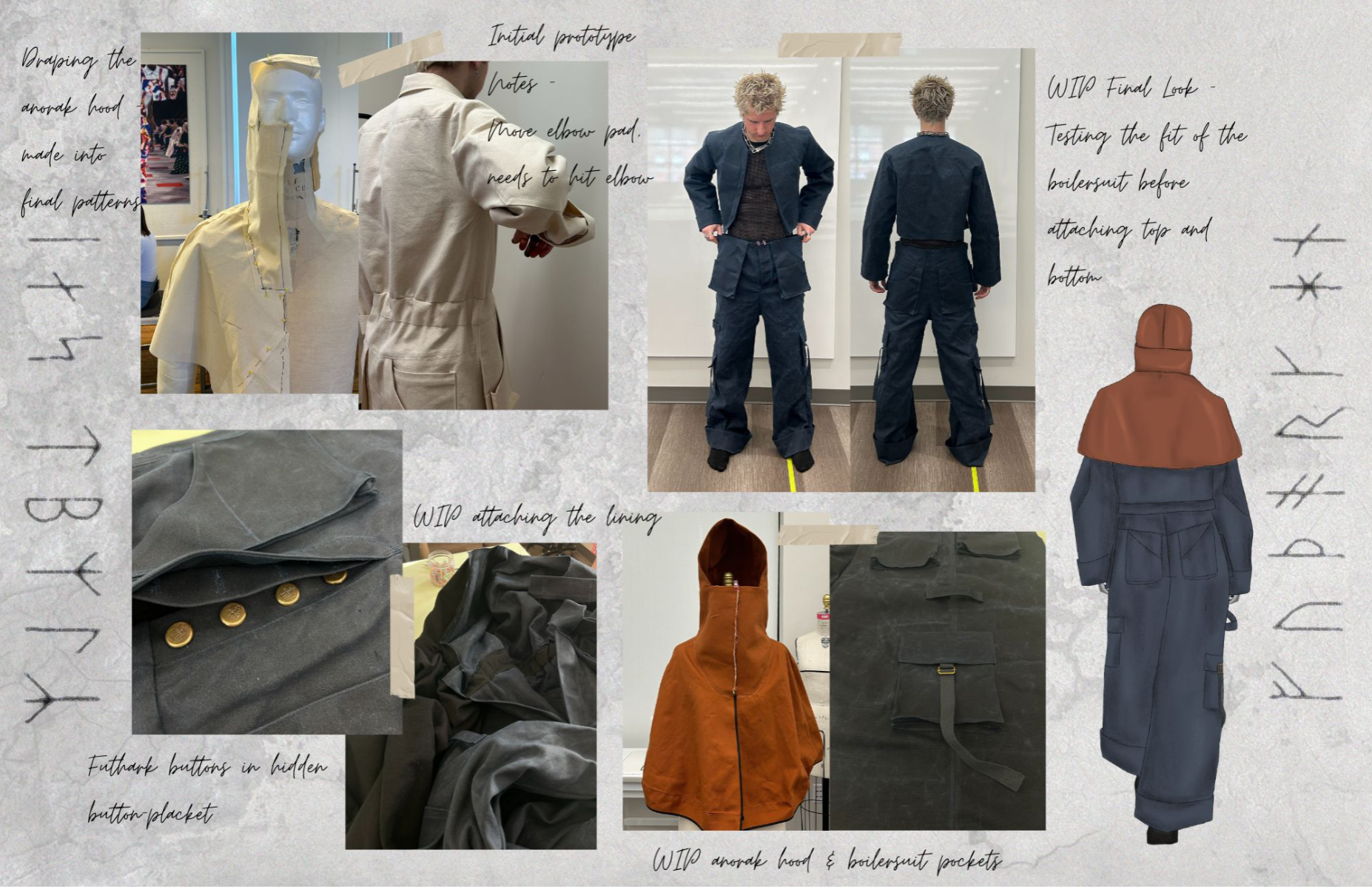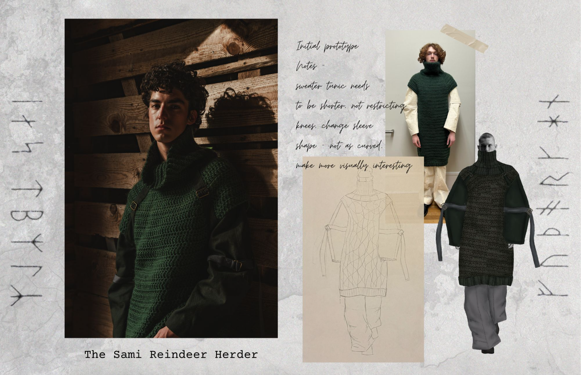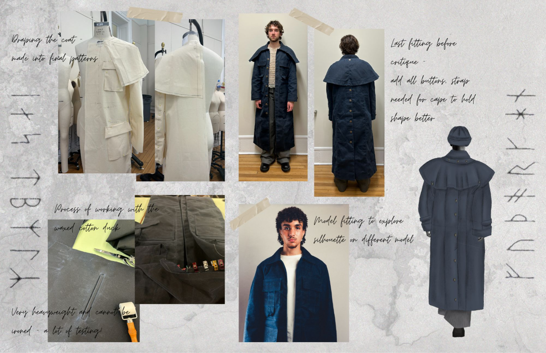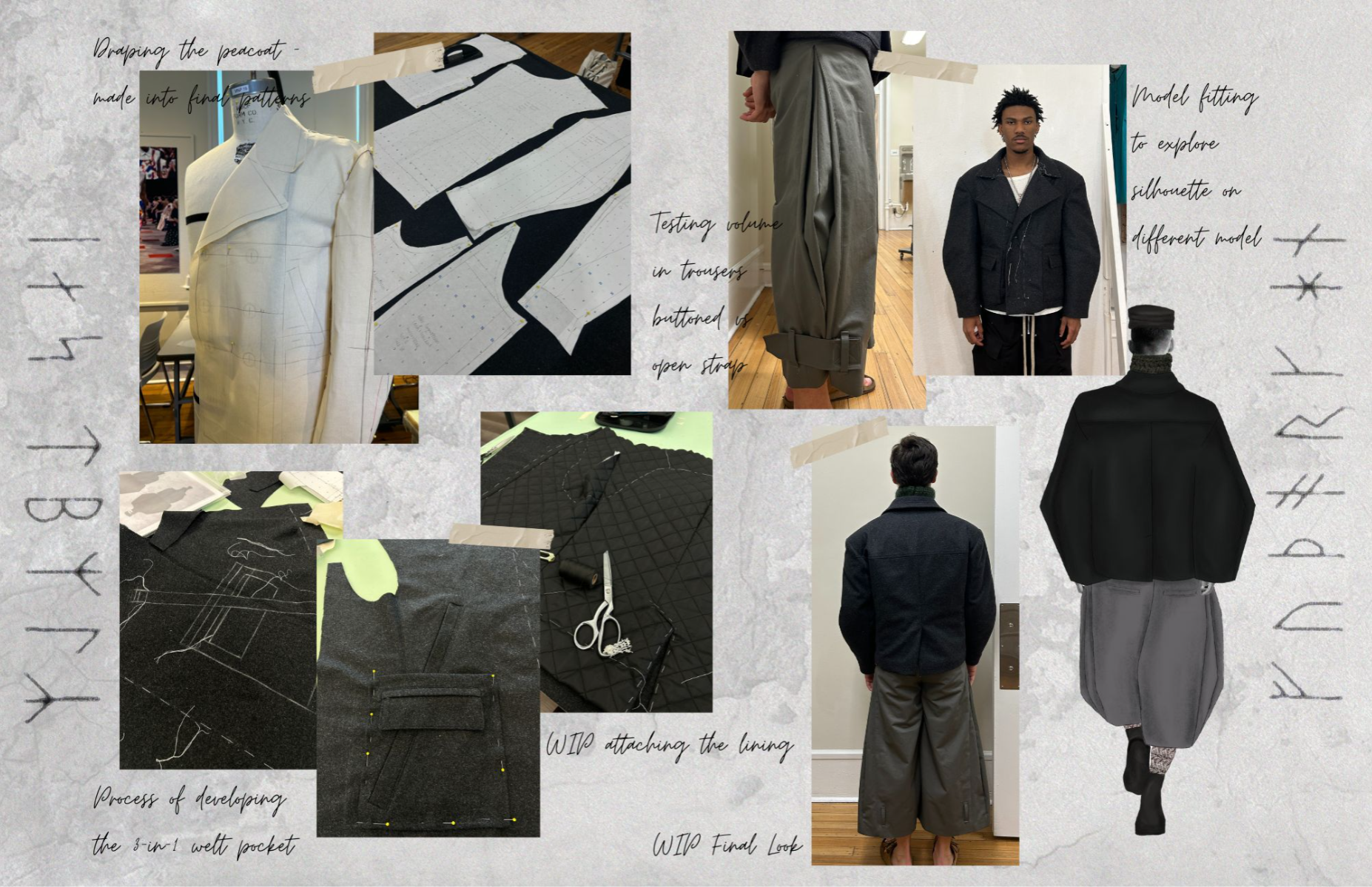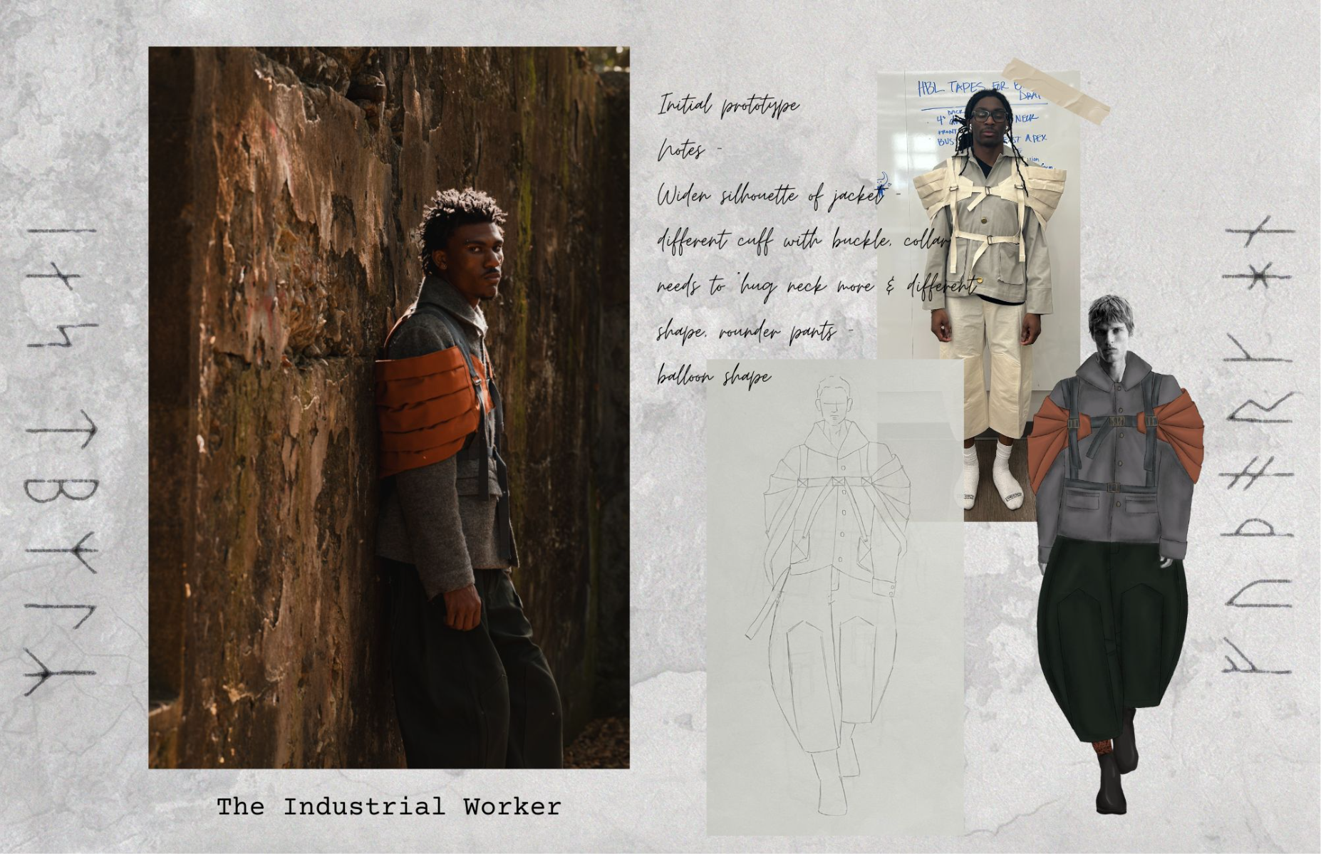 Futhark explores traditional Swedish communities - the Farmer, the Miner, the Industrial Worker, the Fisherman, the Viking Warrior, and the Sami Reindeer Herder - reflecting on the deep and interwoven relationships between individuals and their environment. Each community demonstrates a reciprocal influence with the environment and reflects Sweden's historical resilience, where harsh landscapes have shaped cultural identity, and the tension between rural and urban, tradition and modernity, nature and industry. Futhark celebrates these communities with respect and authenticity, showcasing a harmonious balance of heritage and modernity. At the heart of this concept lies the cyclical relationship between people and the environment: as our environments mold societal and cultural structures, so do we reshape the world around us. This collection invites a reflection on how modern Swedish society can learn from its historical communities to create a more balanced and sustainable relationship with its surroundings. CREDITS Photography by Samuel Murray Talent by Benjamin Pulka, Archer Lesser, Jonah Punnett, Aaron Waters, and Peyton Walston Jewelry Design by Rhys Morrow Shoe Design by Hailey Lander