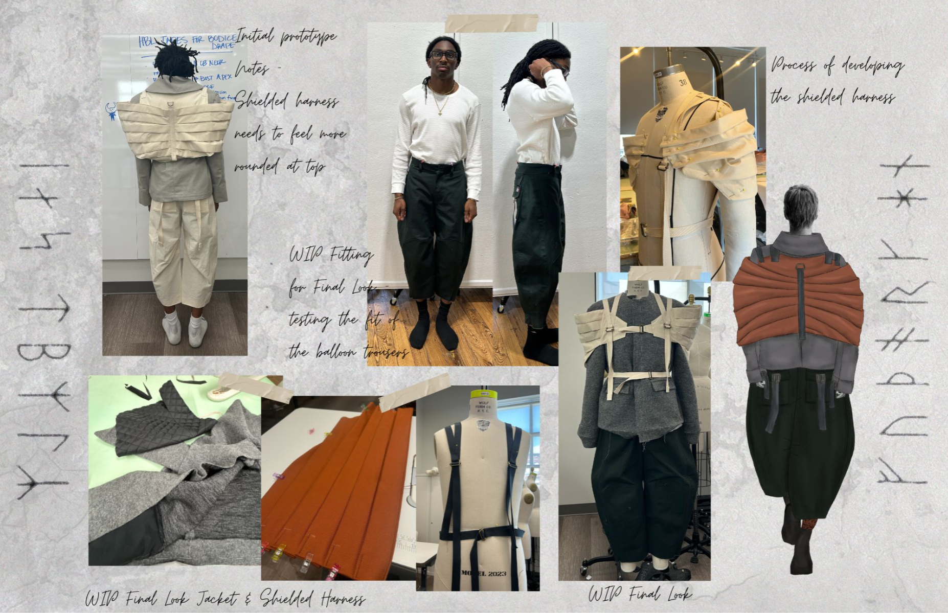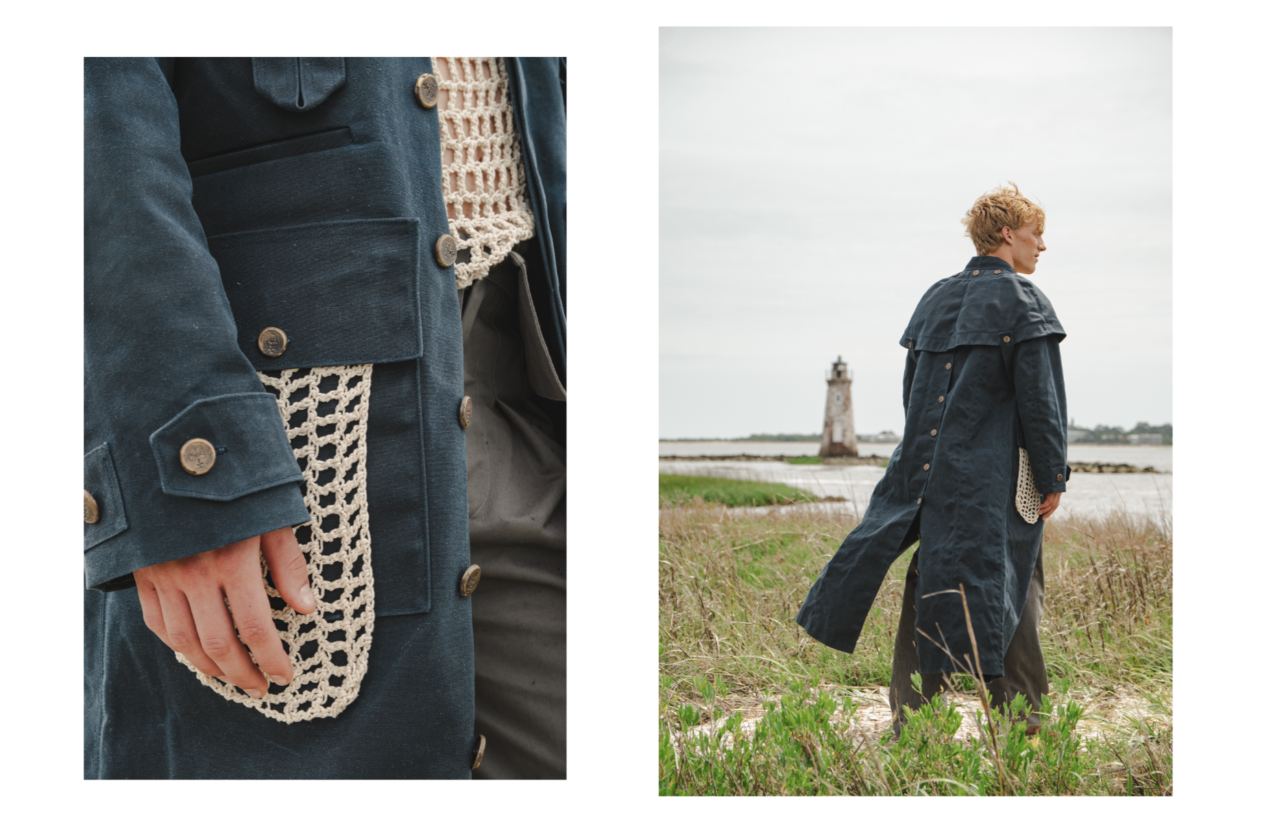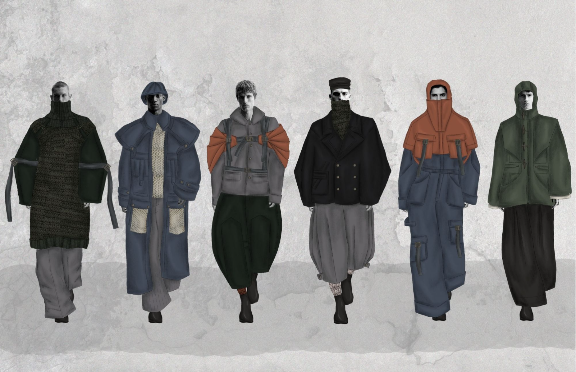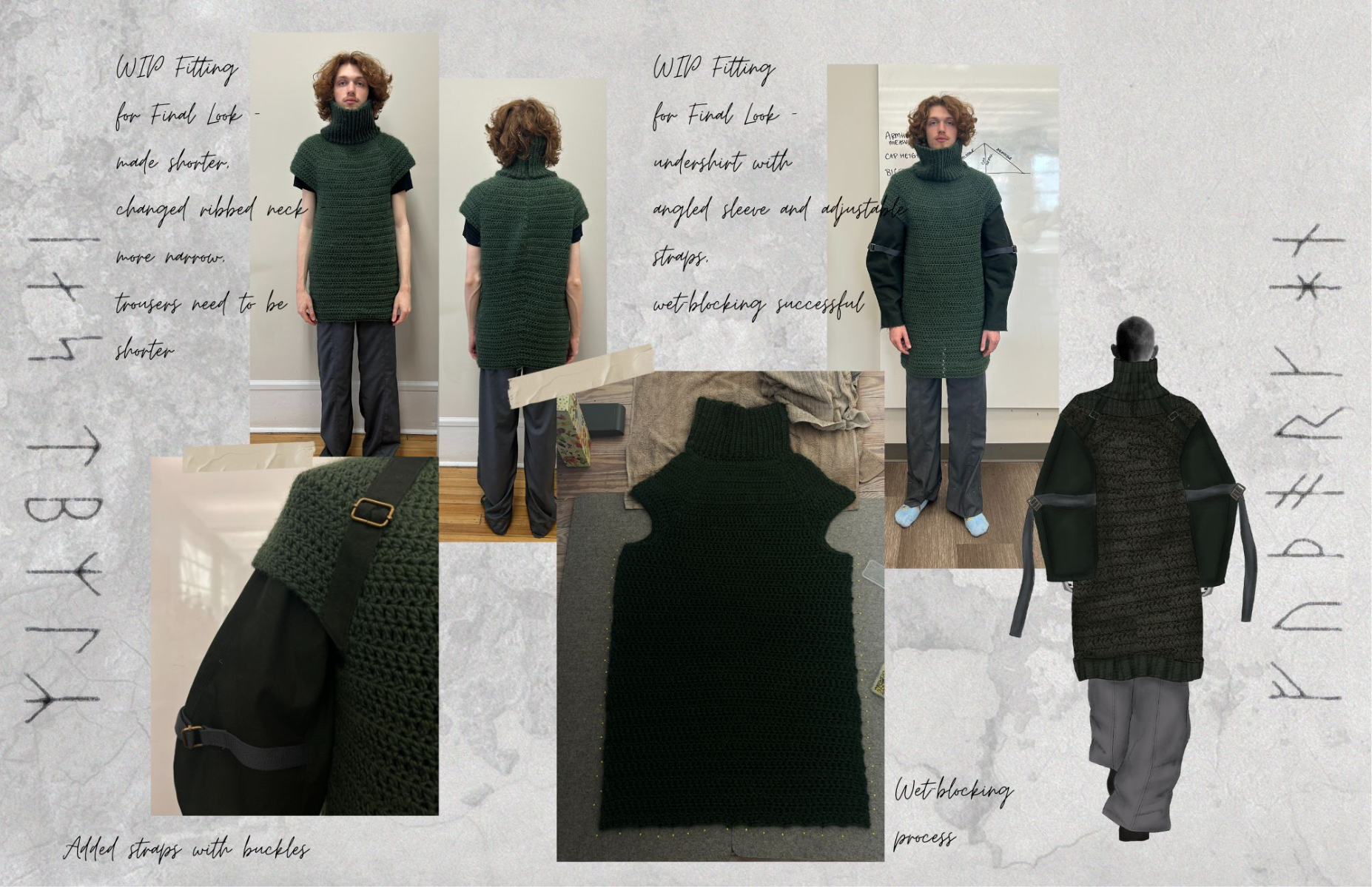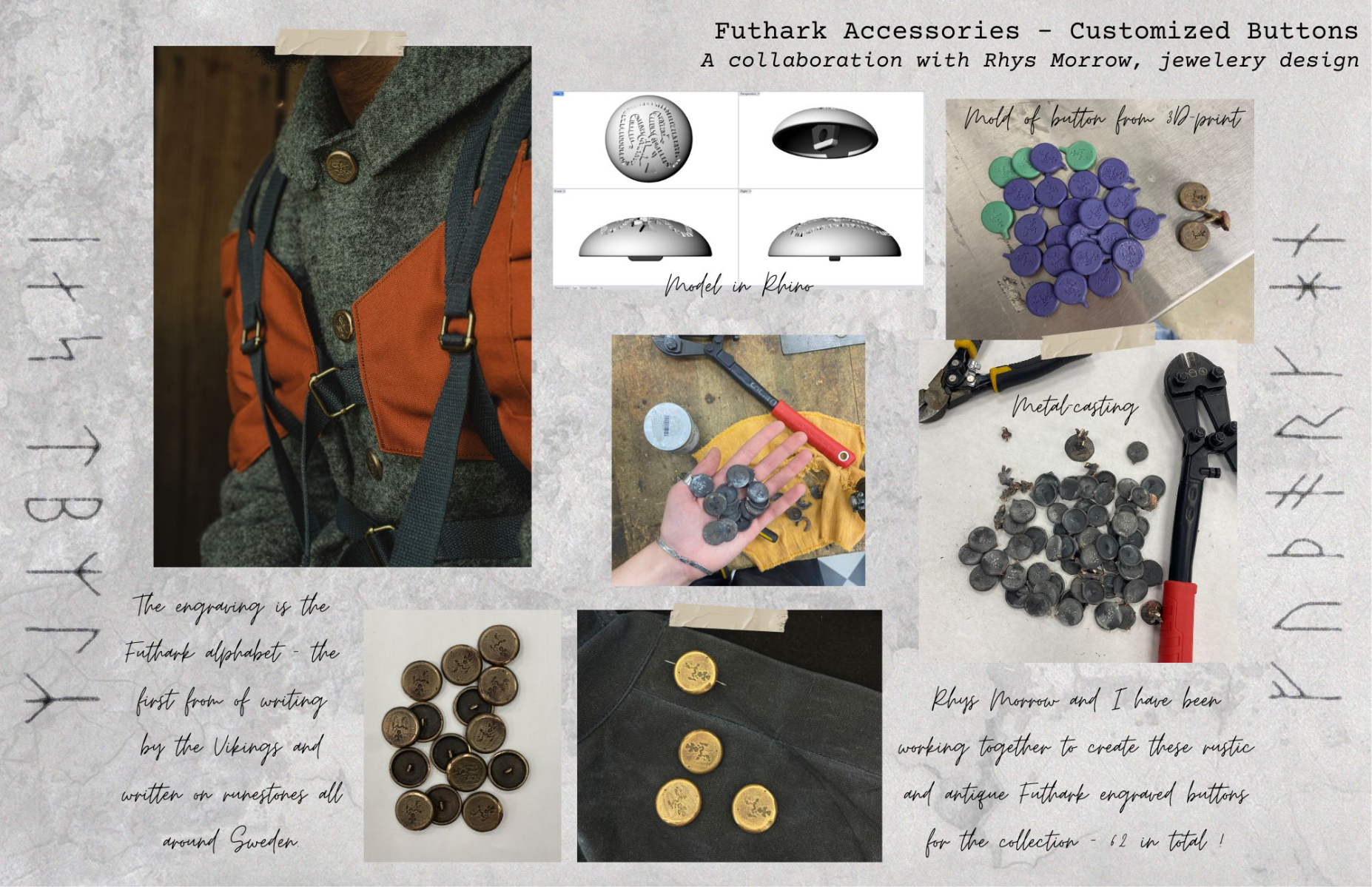 Futhark explores traditional Swedish communities - the Farmer, the Miner, the Industrial Worker, the Fisherman, the Viking Warrior, and the Sami Reindeer Herder - reflecting on the deep and interwoven relationships between individuals and their environment. Each community demonstrates a reciprocal influence with the environment and reflects Sweden's historical resilience, where harsh landscapes have shaped cultural identity, and the tension between rural and urban, tradition and modernity, nature and industry. Futhark celebrates these communities with respect and authenticity, showcasing a harmonious balance of heritage and modernity. At the heart of this concept lies the cyclical relationship between people and the environment: as our environments mold societal and cultural structures, so do we reshape the world around us. This collection invites a reflection on how modern Swedish society can learn from its historical communities to create a more balanced and sustainable relationship with its surroundings. CREDITS Photography by Samuel Murray Talent by Benjamin Pulka, Archer Lesser, Jonah Punnett, Aaron Waters, and Peyton Walston Jewelry Design by Rhys Morrow Shoe Design by Hailey Lander