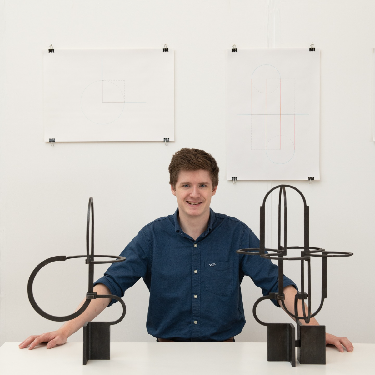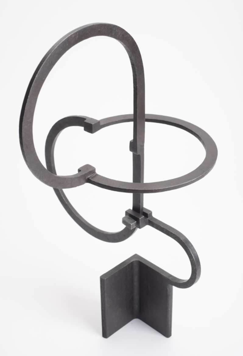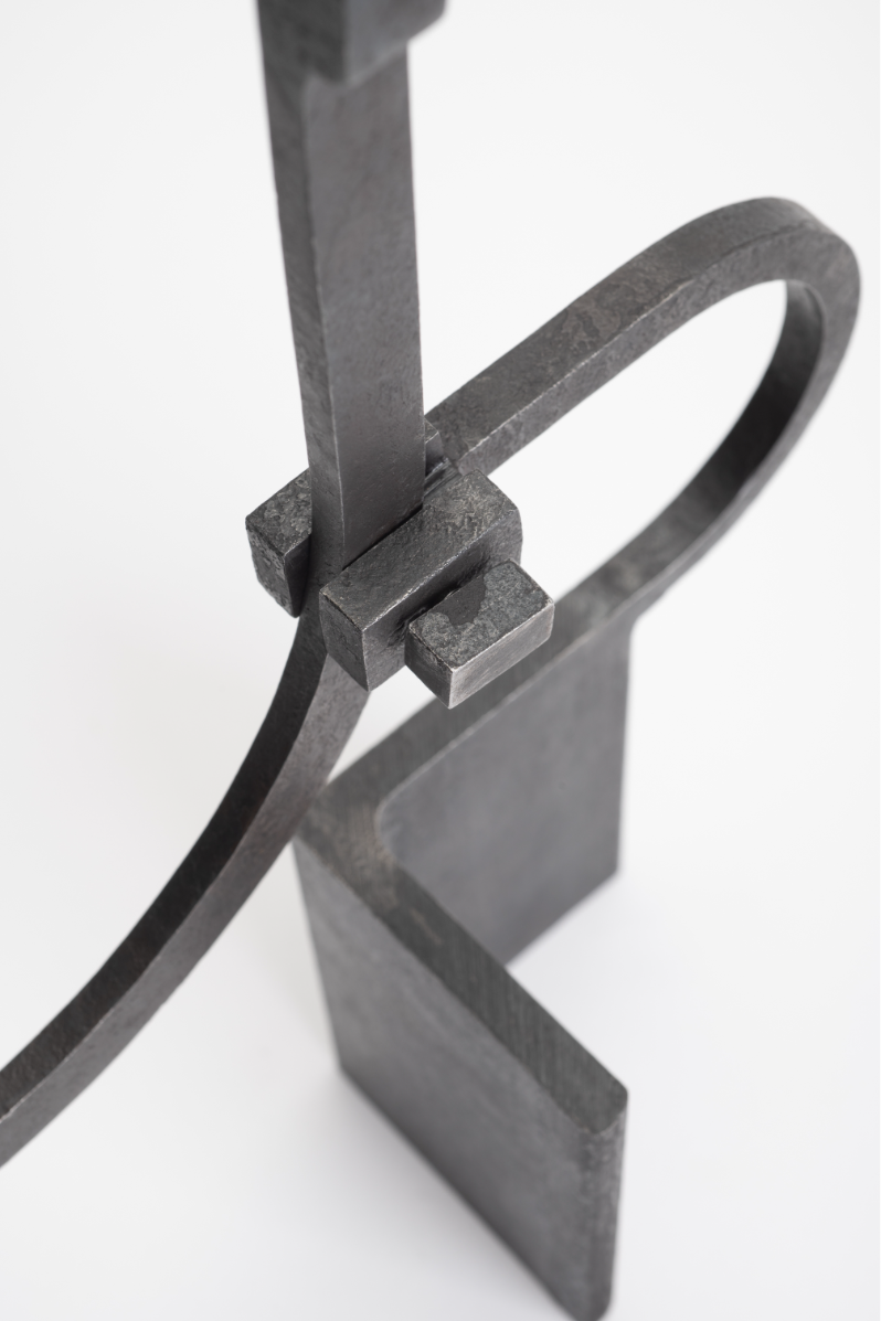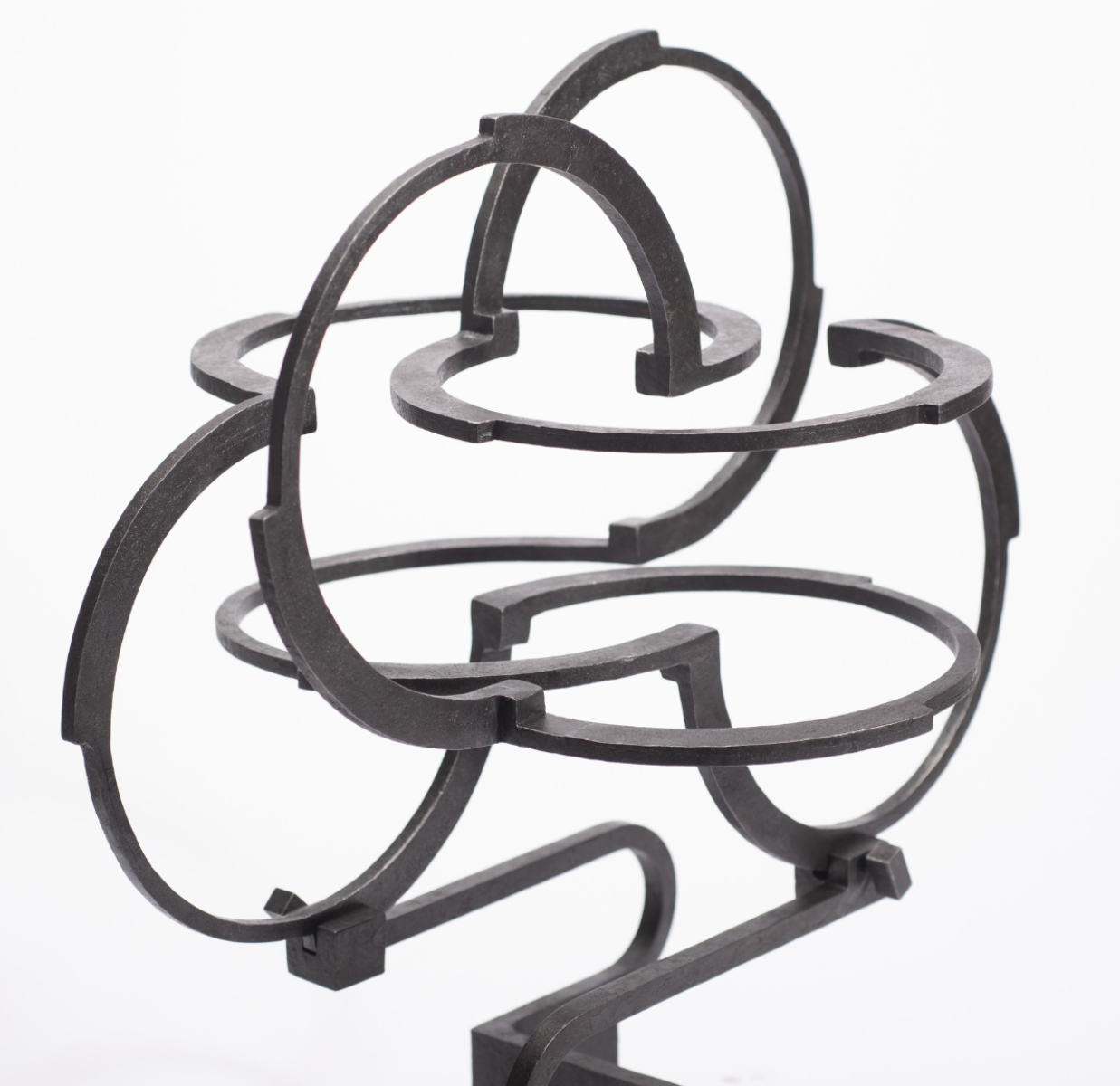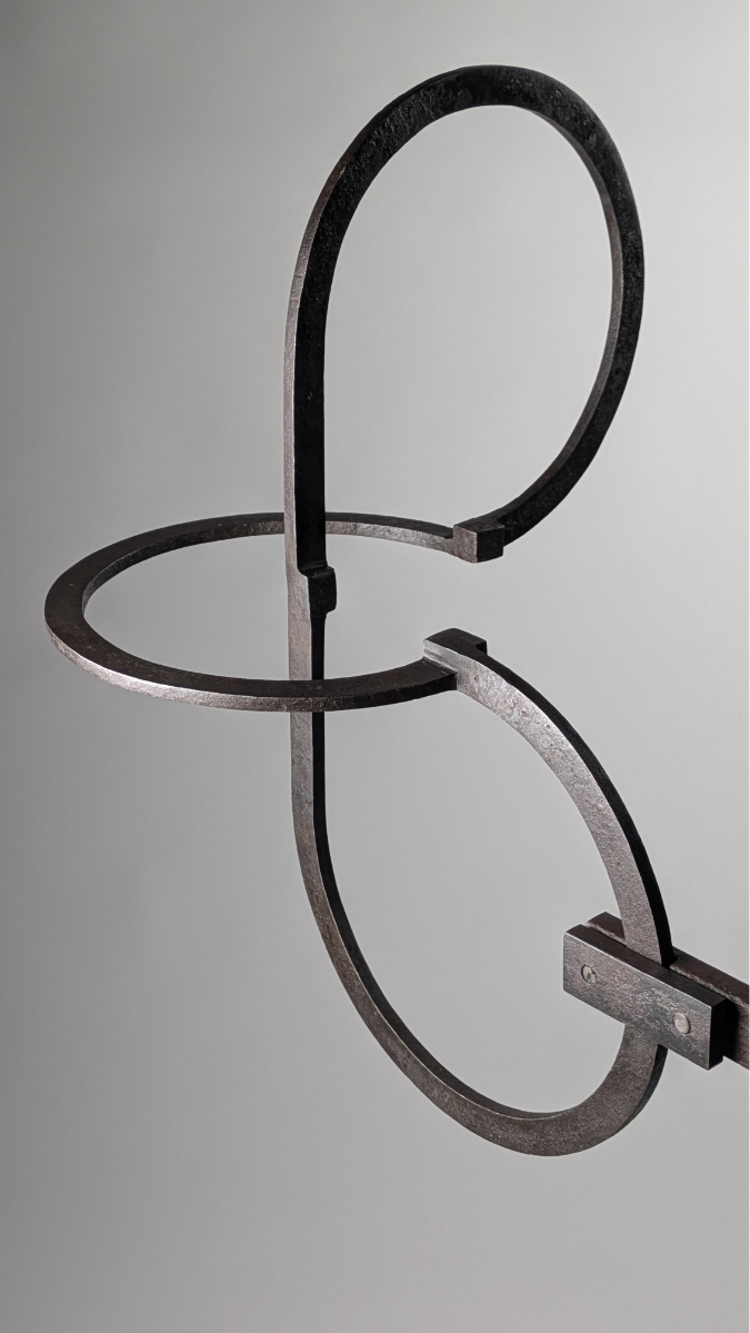 Geometry in Perspective A collection of 3 forged sculptures, each piece is forged out of one straight length of material with no cutting or welding involved. Inspired by Euclidean and Ideal geometry, these forged sculptures transform planar designs into three-dimensional forms through precise rotations. Each piece merges mathematical purity with a raw, forged aesthetic, revealing the intrinsic beauty of geometry. This work celebrates the intersection of art and science, highlighting the enduring elegance of geometric principles. Geometry in Perspective aims to articulate these foundational principles to compose their planula (2-dimensional) constructions. During their construction following the postulates of Euclid to dictate the processes of point, line and plane and demonstrates how the shapes that span from them can relate and interact with one other. Utilizing the precise rotations of 90o, 108o and 270o, these 2-dimensional compositions are translated through space, shifting a once flat design into 3-dimensional form. This pure, mathematical process is concluded with a forge aesthetic that adheres to the raw simplicity of their axiomatic constructions.