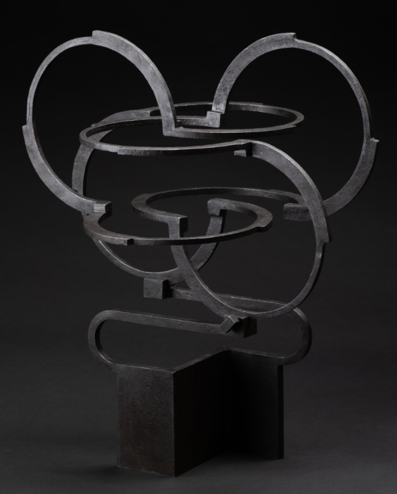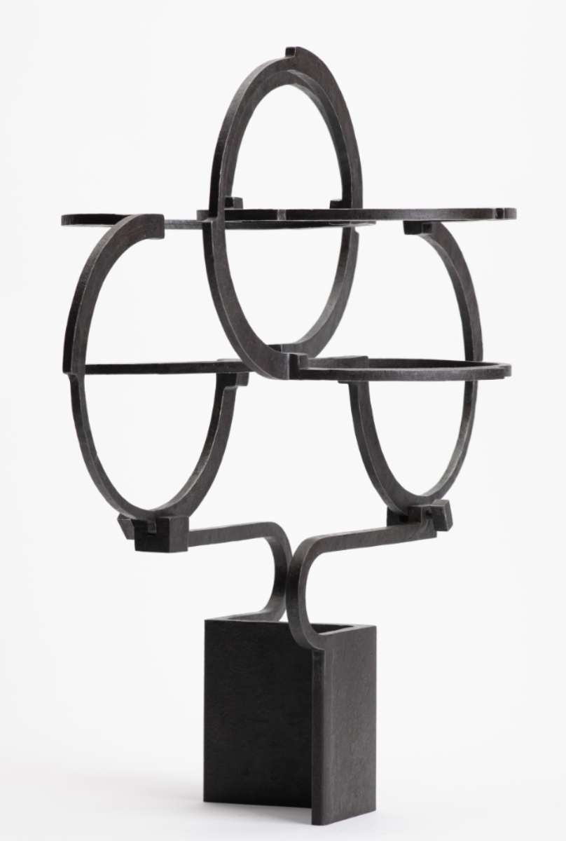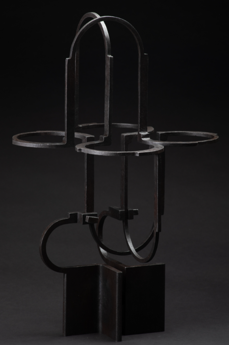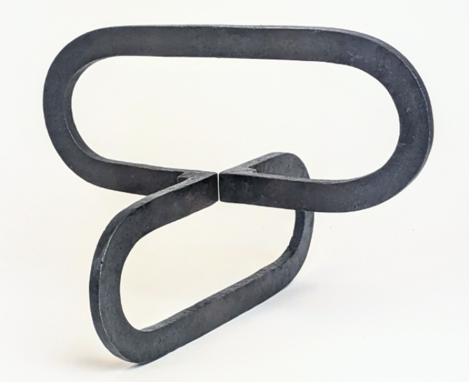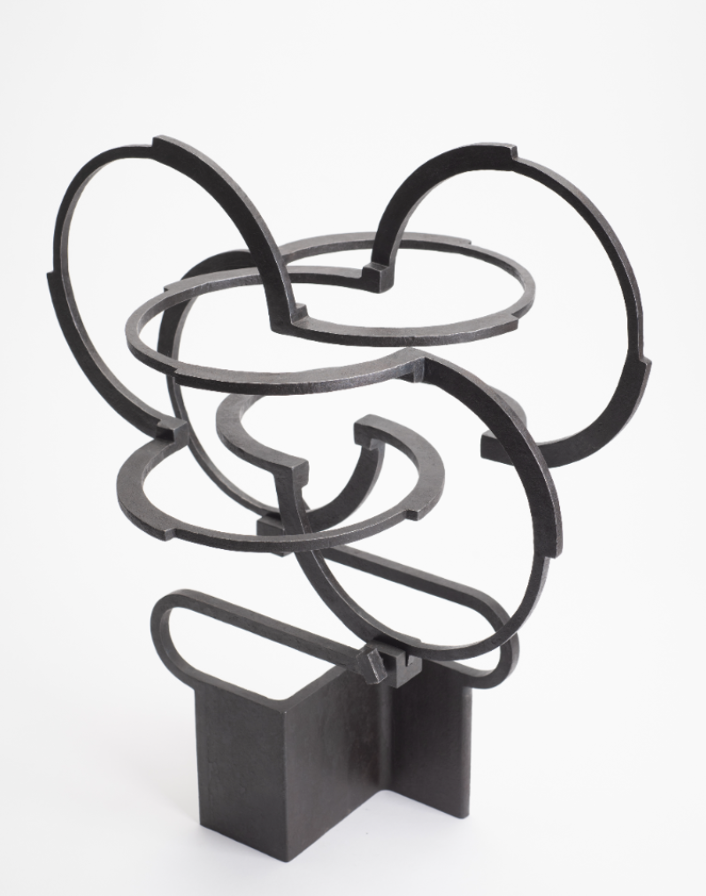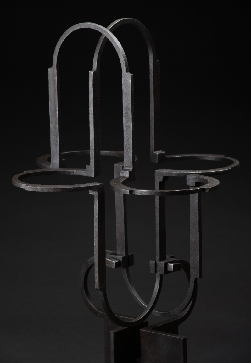 Geometry in Perspective A collection of 3 forged sculptures, each piece is forged out of one straight length of material with no cutting or welding involved. Inspired by Euclidean and Ideal geometry, these forged sculptures transform planar designs into three-dimensional forms through precise rotations. Each piece merges mathematical purity with a raw, forged aesthetic, revealing the intrinsic beauty of geometry. This work celebrates the intersection of art and science, highlighting the enduring elegance of geometric principles. Geometry in Perspective aims to articulate these foundational principles to compose their planula (2-dimensional) constructions. During their construction following the postulates of Euclid to dictate the processes of point, line and plane and demonstrates how the shapes that span from them can relate and interact with one other. Utilizing the precise rotations of 90o, 108o and 270o, these 2-dimensional compositions are translated through space, shifting a once flat design into 3-dimensional form. This pure, mathematical process is concluded with a forge aesthetic that adheres to the raw simplicity of their axiomatic constructions.