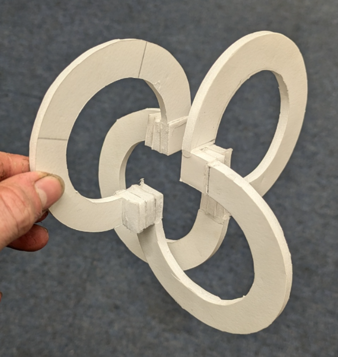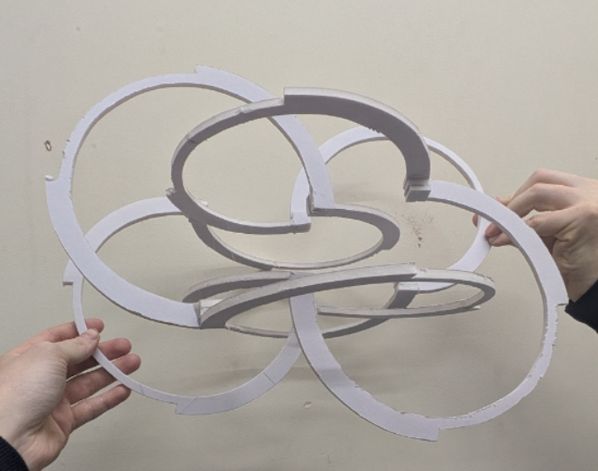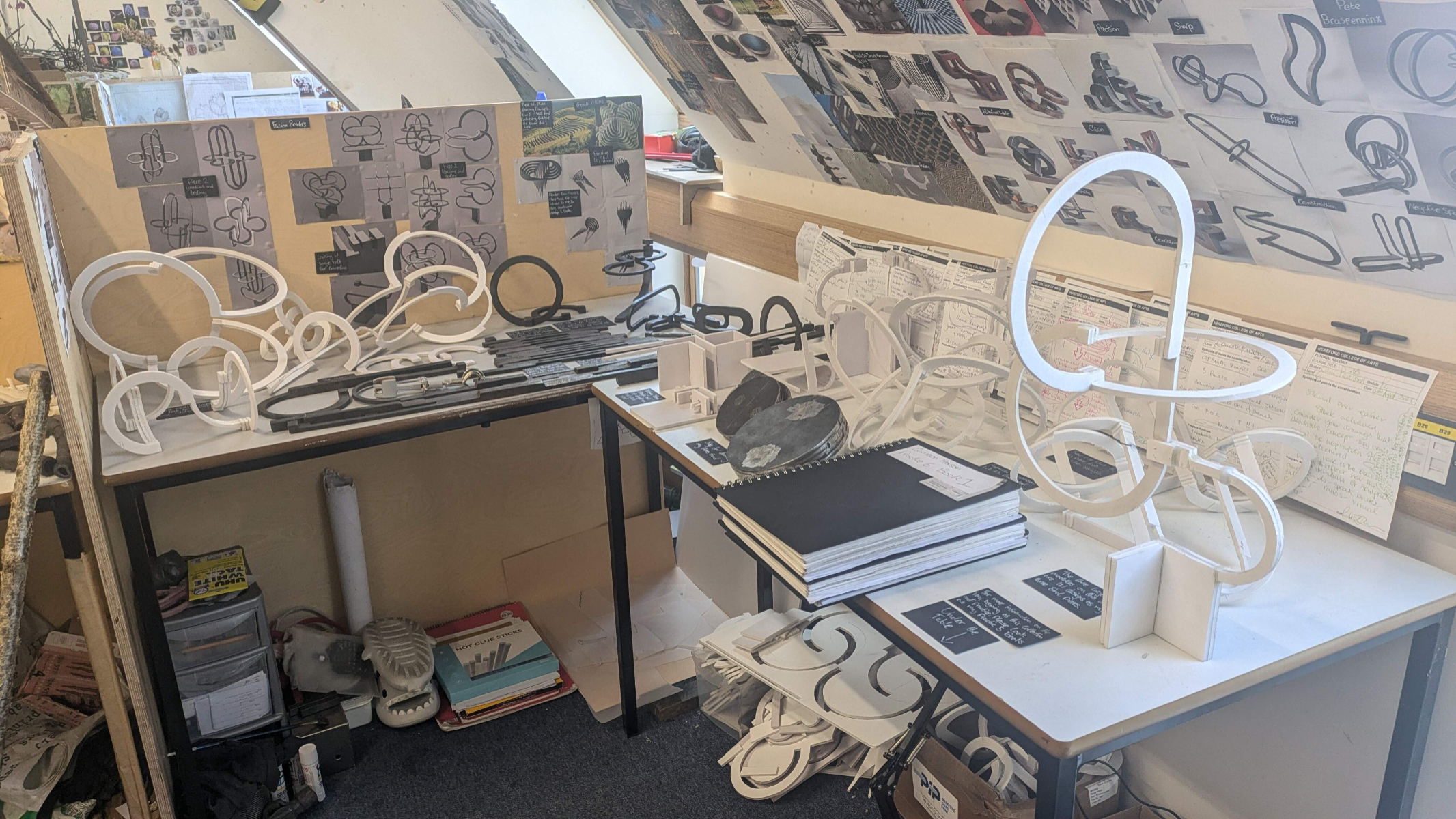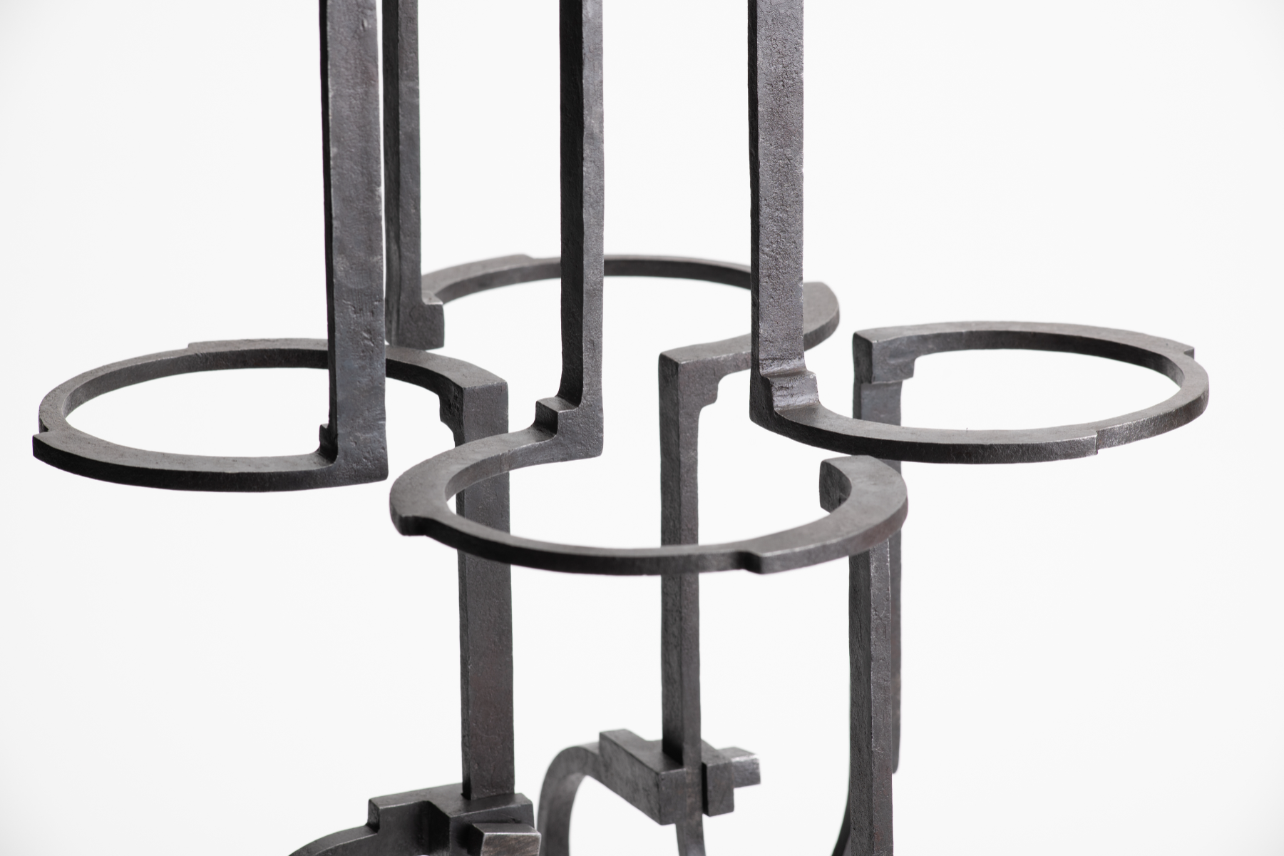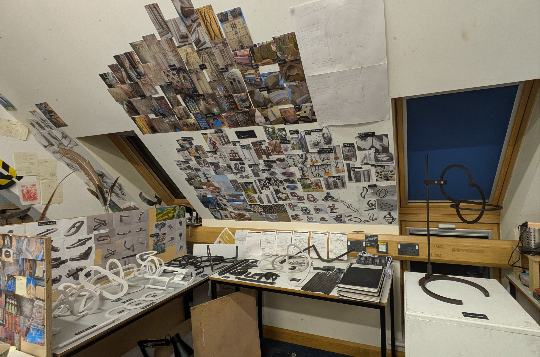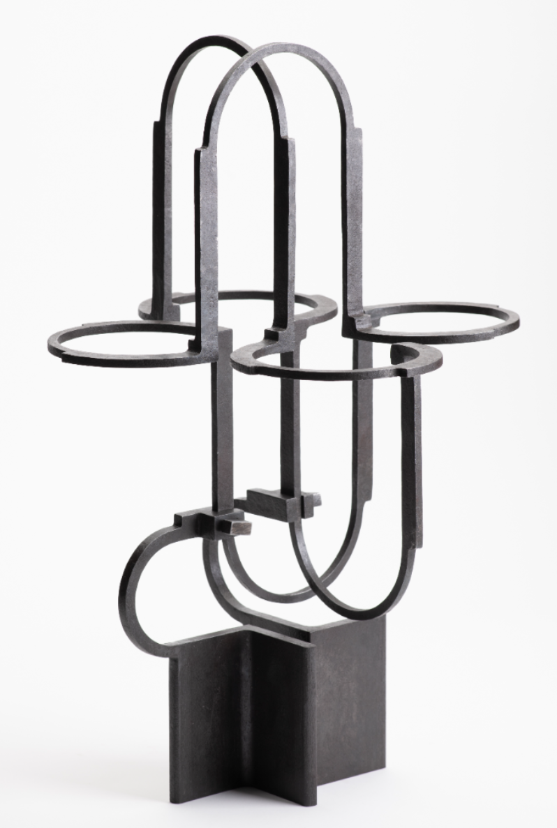 Geometry in Perspective A collection of 3 forged sculptures, each piece is forged out of one straight length of material with no cutting or welding involved. Inspired by Euclidean and Ideal geometry, these forged sculptures transform planar designs into three-dimensional forms through precise rotations. Each piece merges mathematical purity with a raw, forged aesthetic, revealing the intrinsic beauty of geometry. This work celebrates the intersection of art and science, highlighting the enduring elegance of geometric principles. Geometry in Perspective aims to articulate these foundational principles to compose their planula (2-dimensional) constructions. During their construction following the postulates of Euclid to dictate the processes of point, line and plane and demonstrates how the shapes that span from them can relate and interact with one other. Utilizing the precise rotations of 90o, 108o and 270o, these 2-dimensional compositions are translated through space, shifting a once flat design into 3-dimensional form. This pure, mathematical process is concluded with a forge aesthetic that adheres to the raw simplicity of their axiomatic constructions.