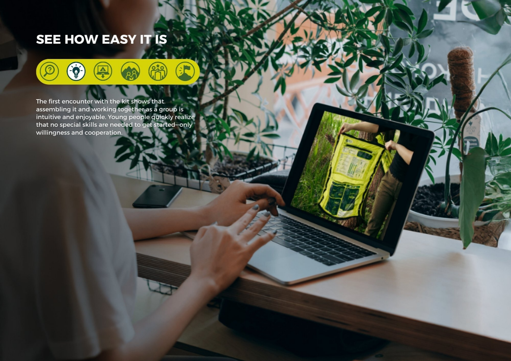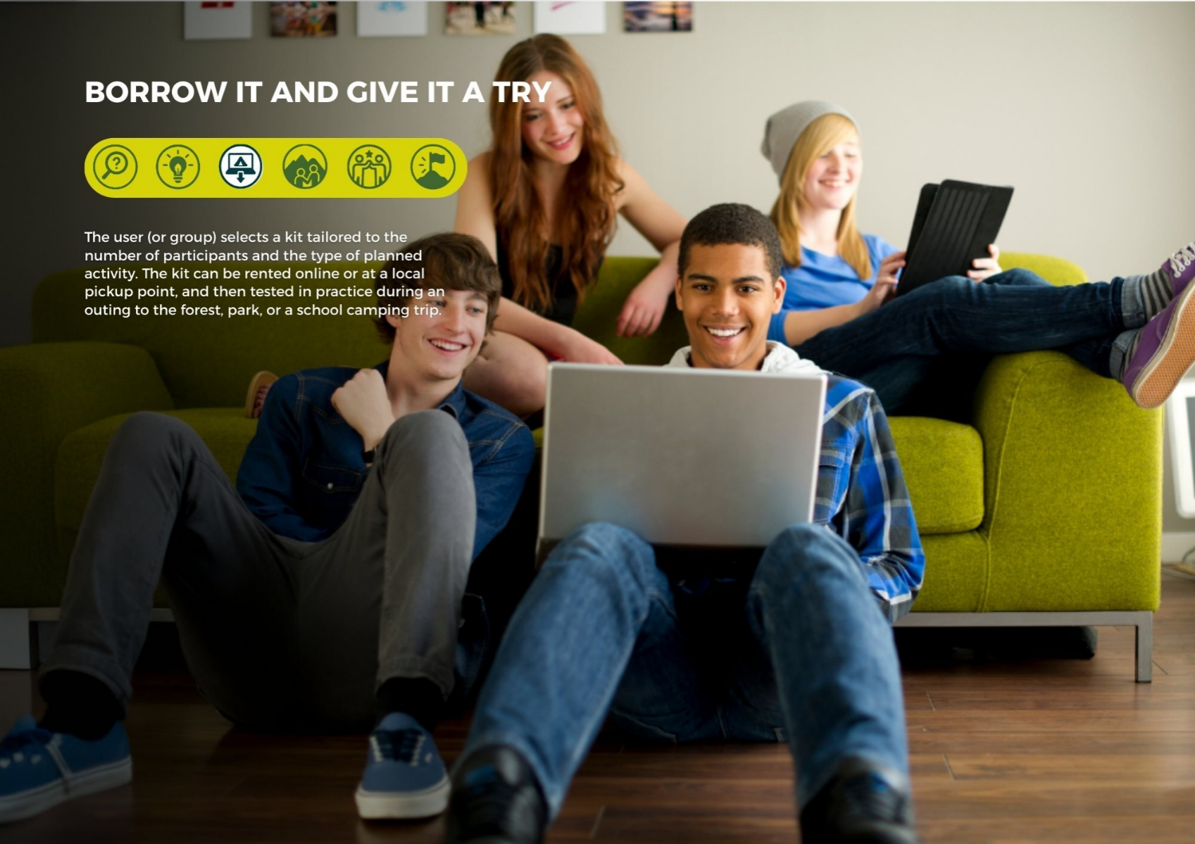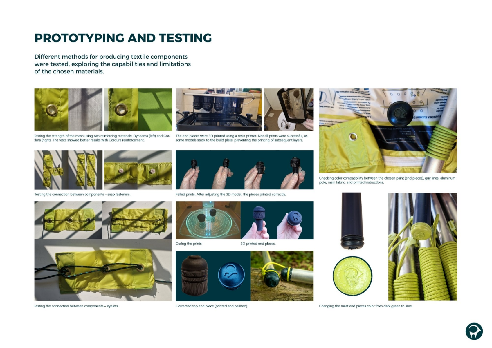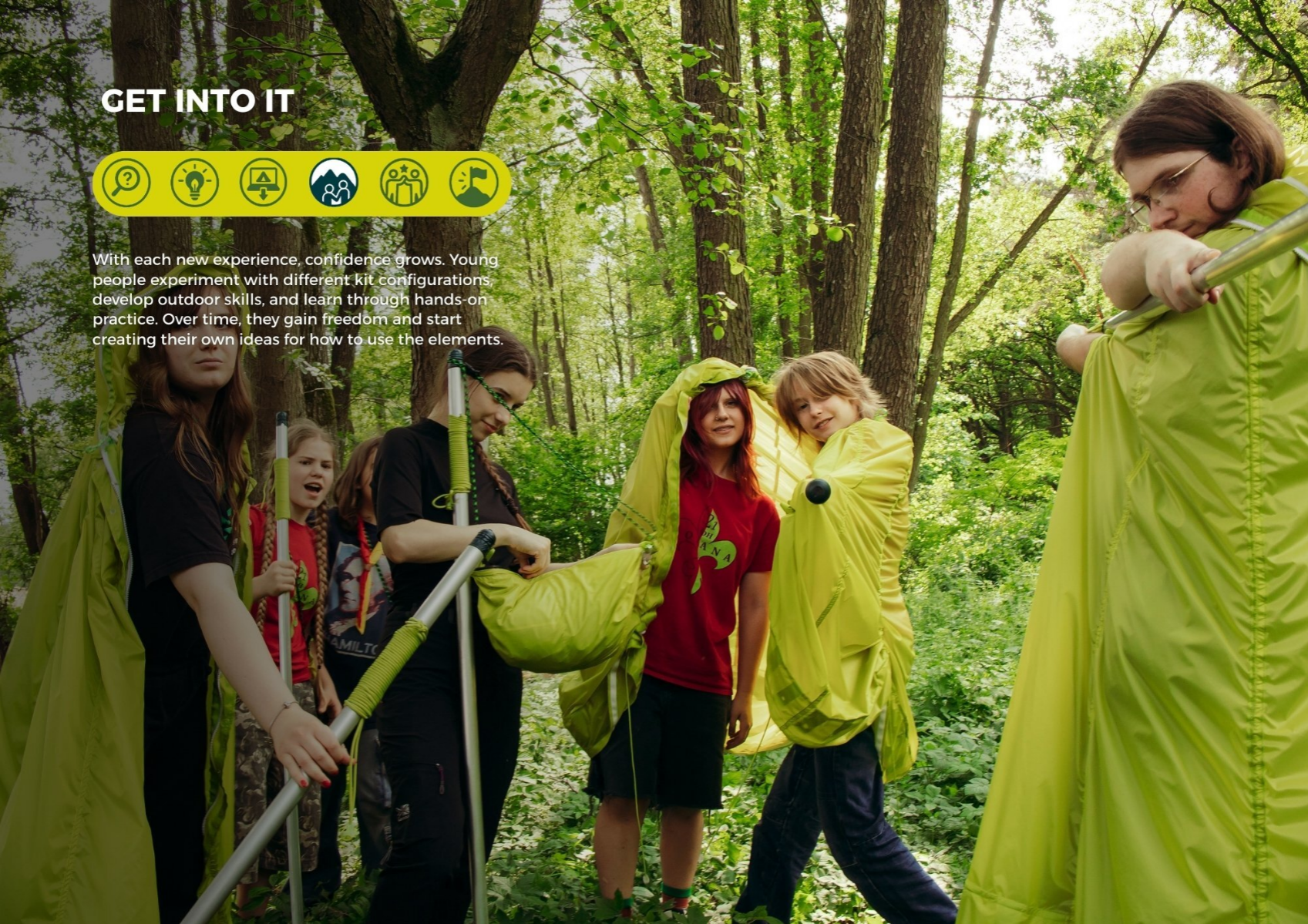 The G.O.A.T. Greatest Outdoor Adventure Toolkit is a product concept designed to support group outdoor activities among teenagers aged 14-18. Inspired by research into how young people spend their free time, it addresses the growing need for peer connection and contact with nature through shared action. The modular kit includes three tarps, three hammocks, six trekking poles (which double as masts), 24 tent pegs, and paracord, each packed with printed instructions. With three difficulty levels, it allows for simple shelters, social spaces, or full yurts. By involving participants in transport, planning, and construction, G.O.A.T. fosters teamwork, creativity, and empowerment.
