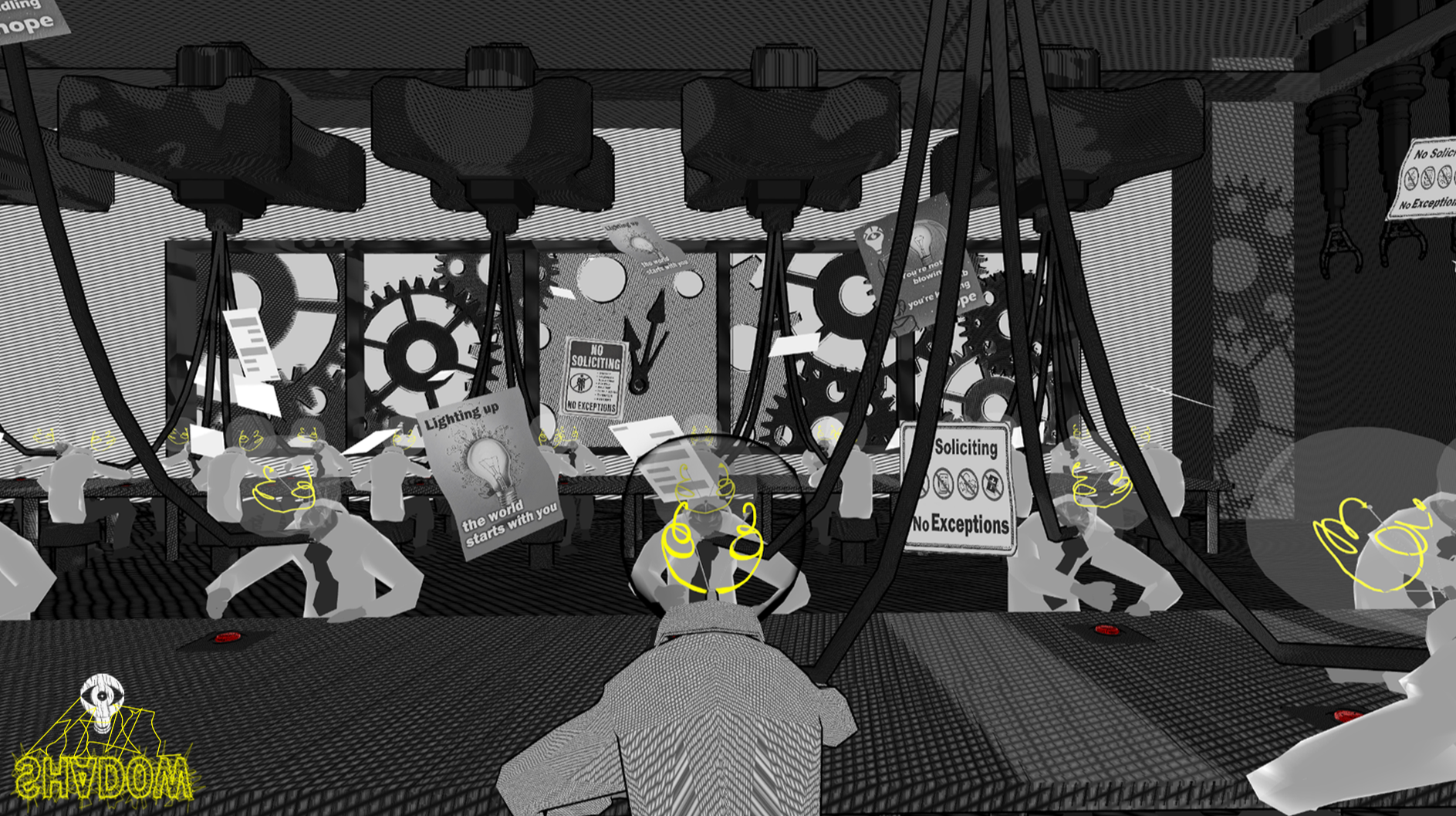 ƧHⱯDOM is a narrative experience that blends Mixed Reality (MR) and Virtual Reality (VR) to explore how modern society defines “success,” and how individuals gradually lose themselves in its pursuit.Inspired by Carl Jung’s concept of the “shadow self,” players embody a shadow and navigate a symbolic world of light and darkness, reexamining meaning, identity, and freedom through immersive metaphor.