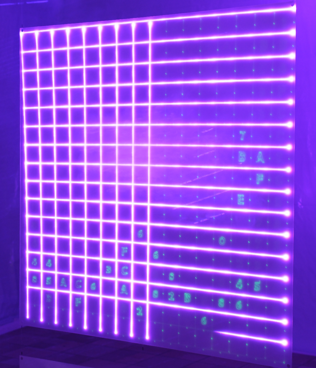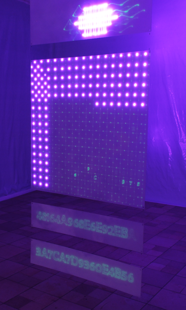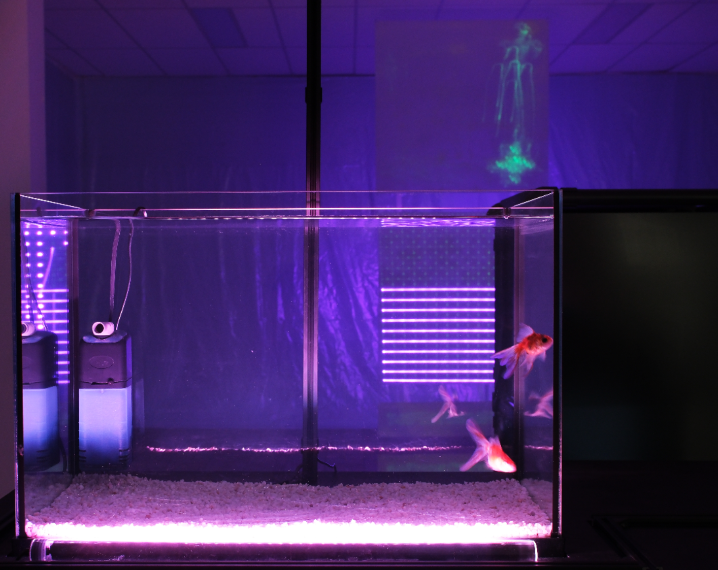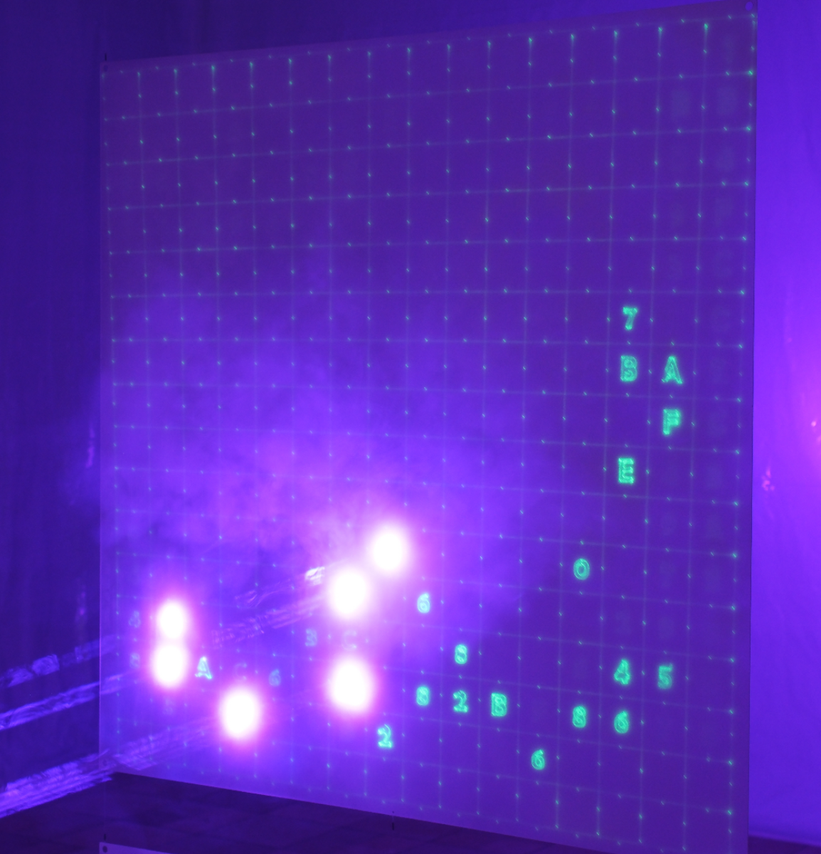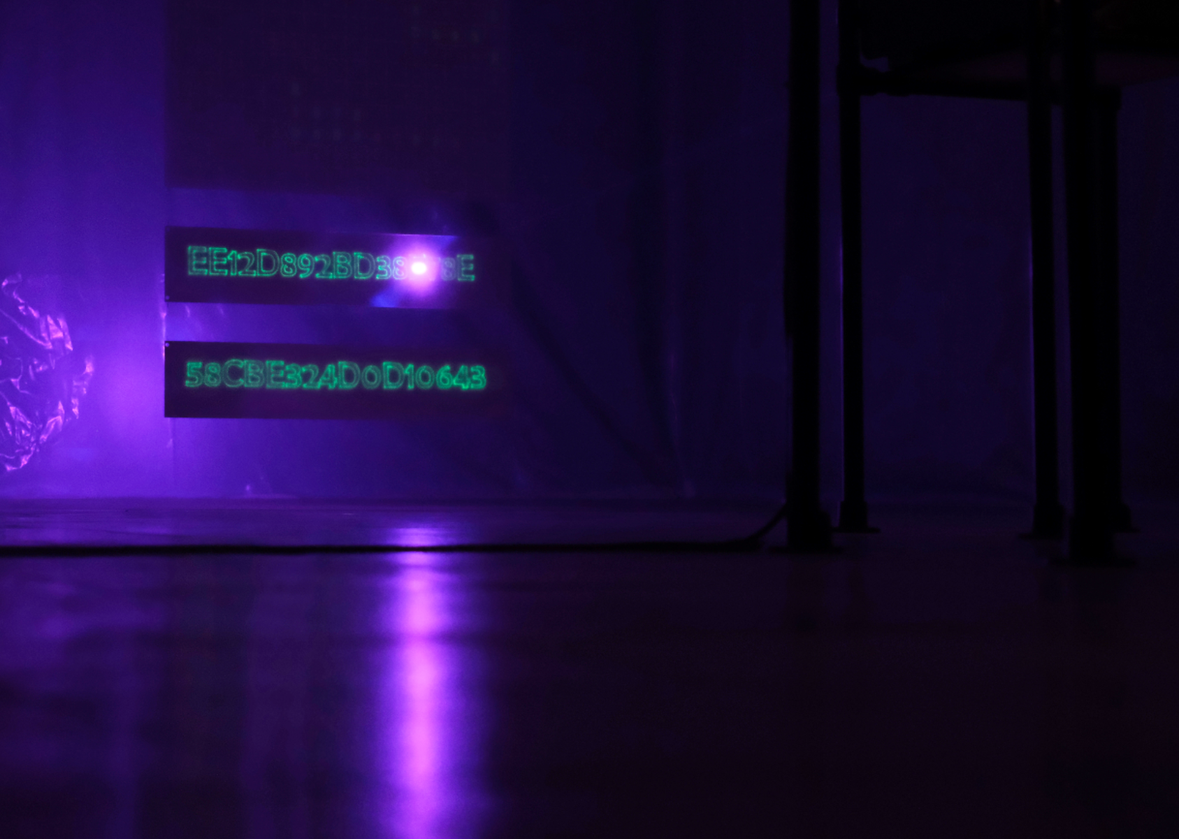 This installation turns living motion into encryption. Fish in an aquarium generate unrepeatable entropy through their movements, captured and transformed into cryptographic keys powered by life itself. On one side, a real aquarium; on the other, its holographic double—coordinates abstracted into light. This divide questions what happens when life becomes data: Can organic motion serve as an encryption mechanism? At what point does abstraction strip away meaning? Here, the unpredictable patterns of conscious beings generate complexity algorithms can hardly replicate, blurring the boundary between biological spontaneity and digital systems.