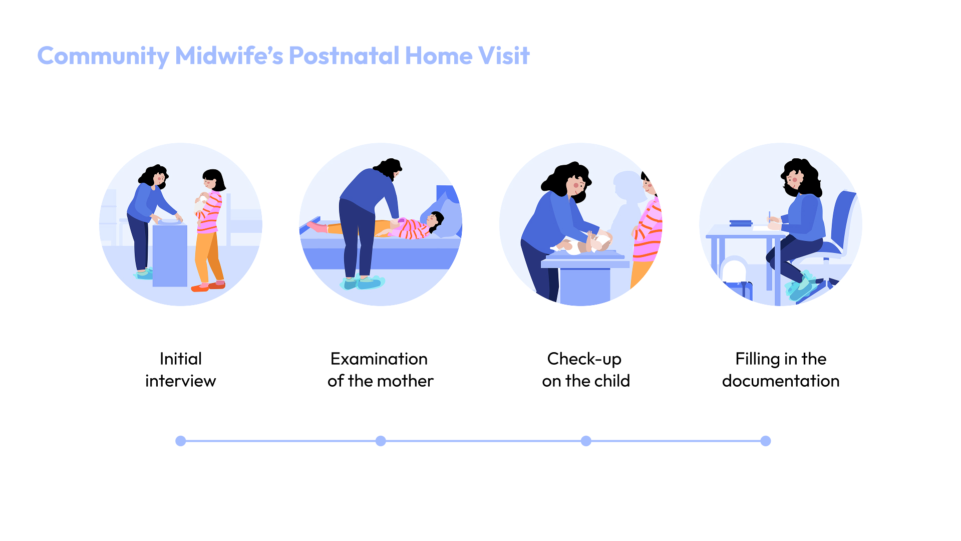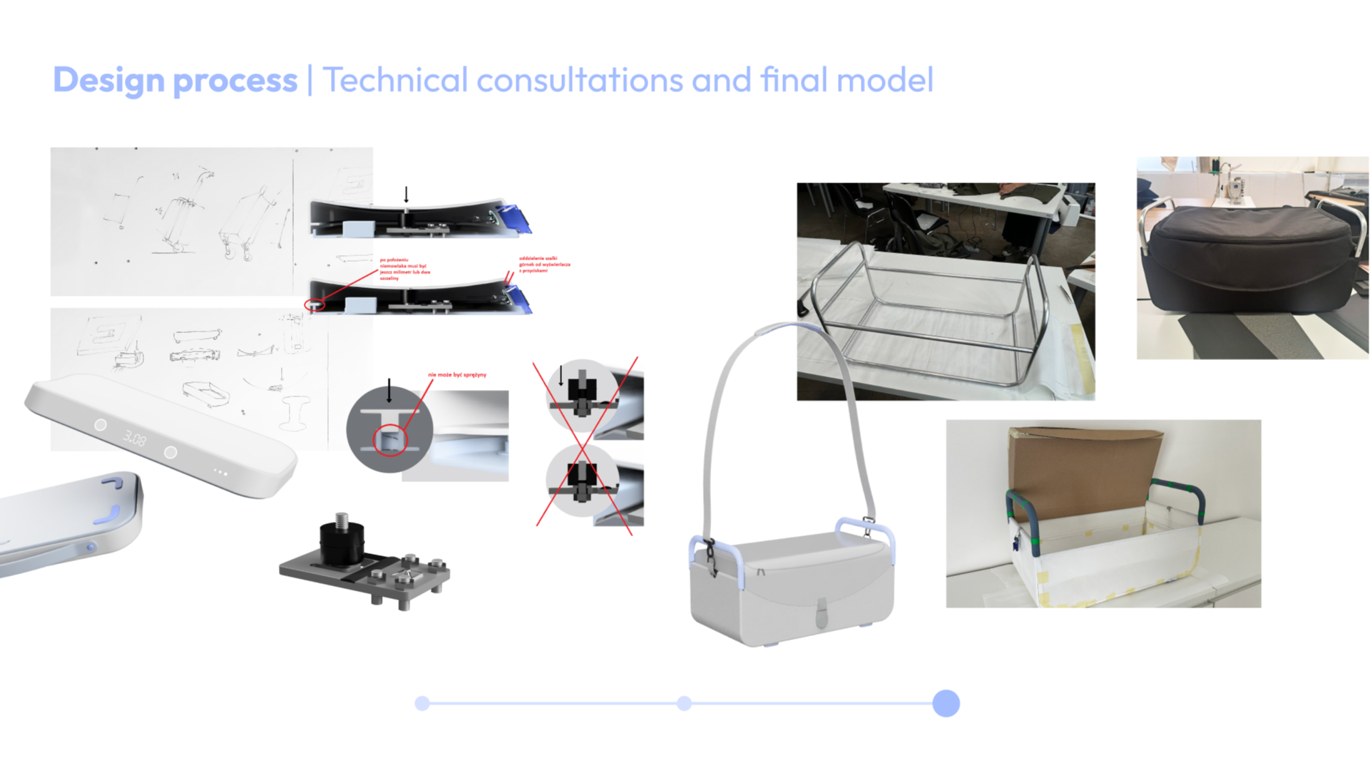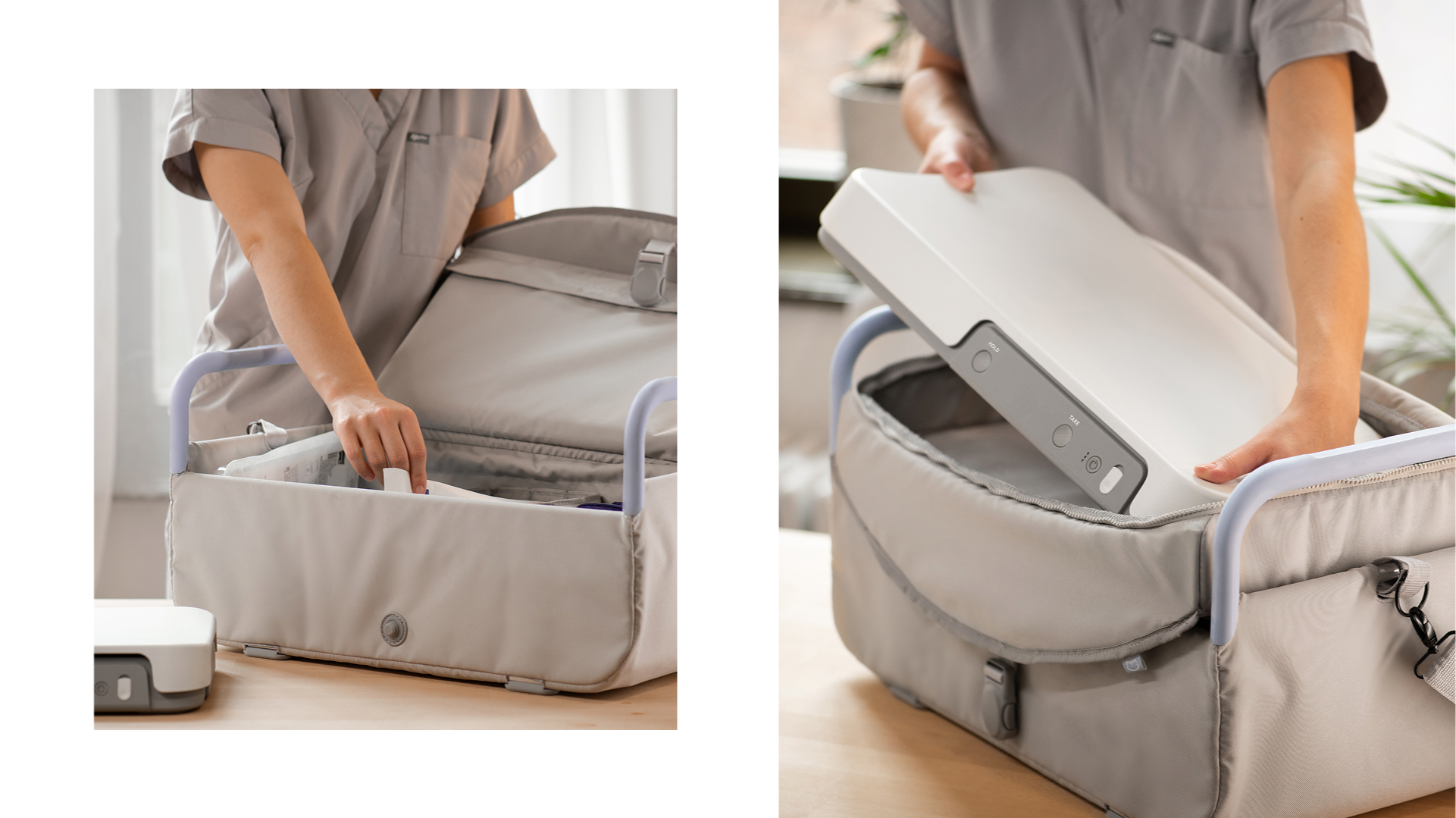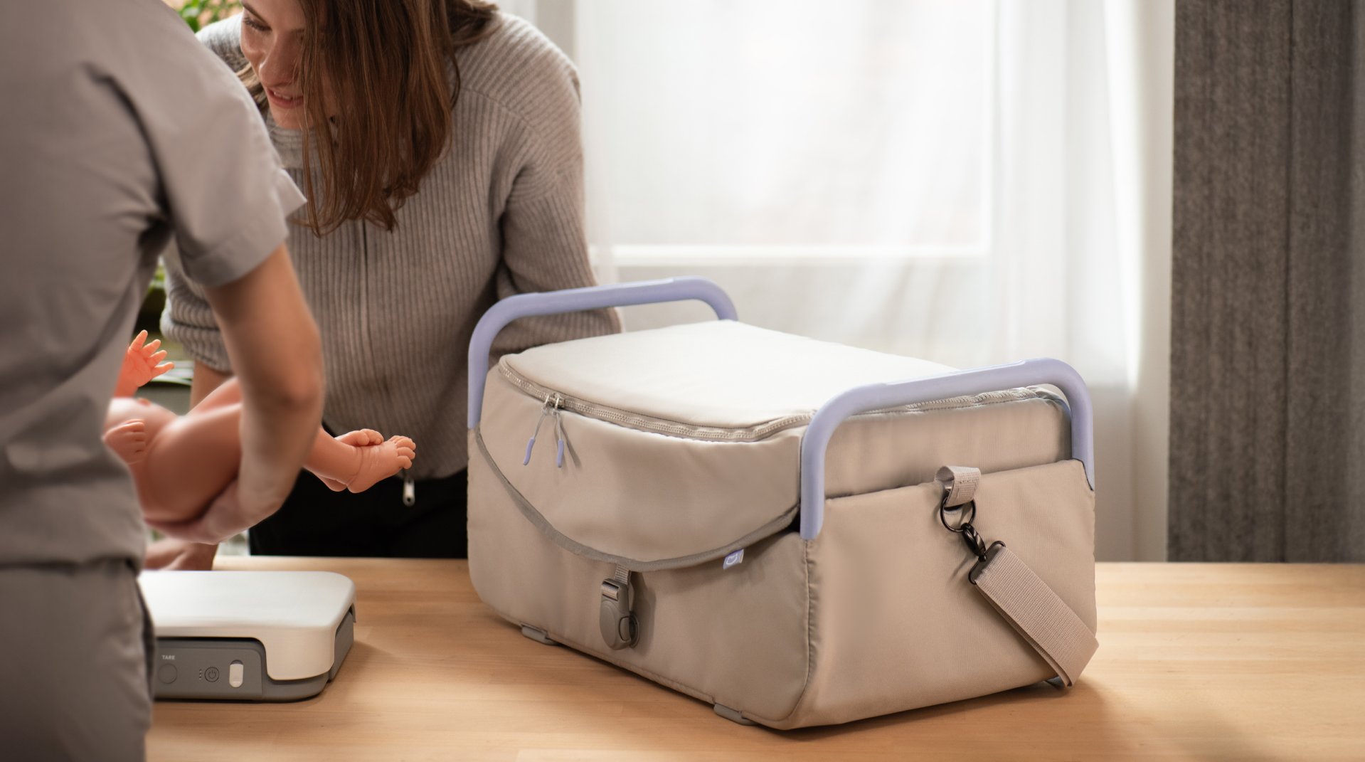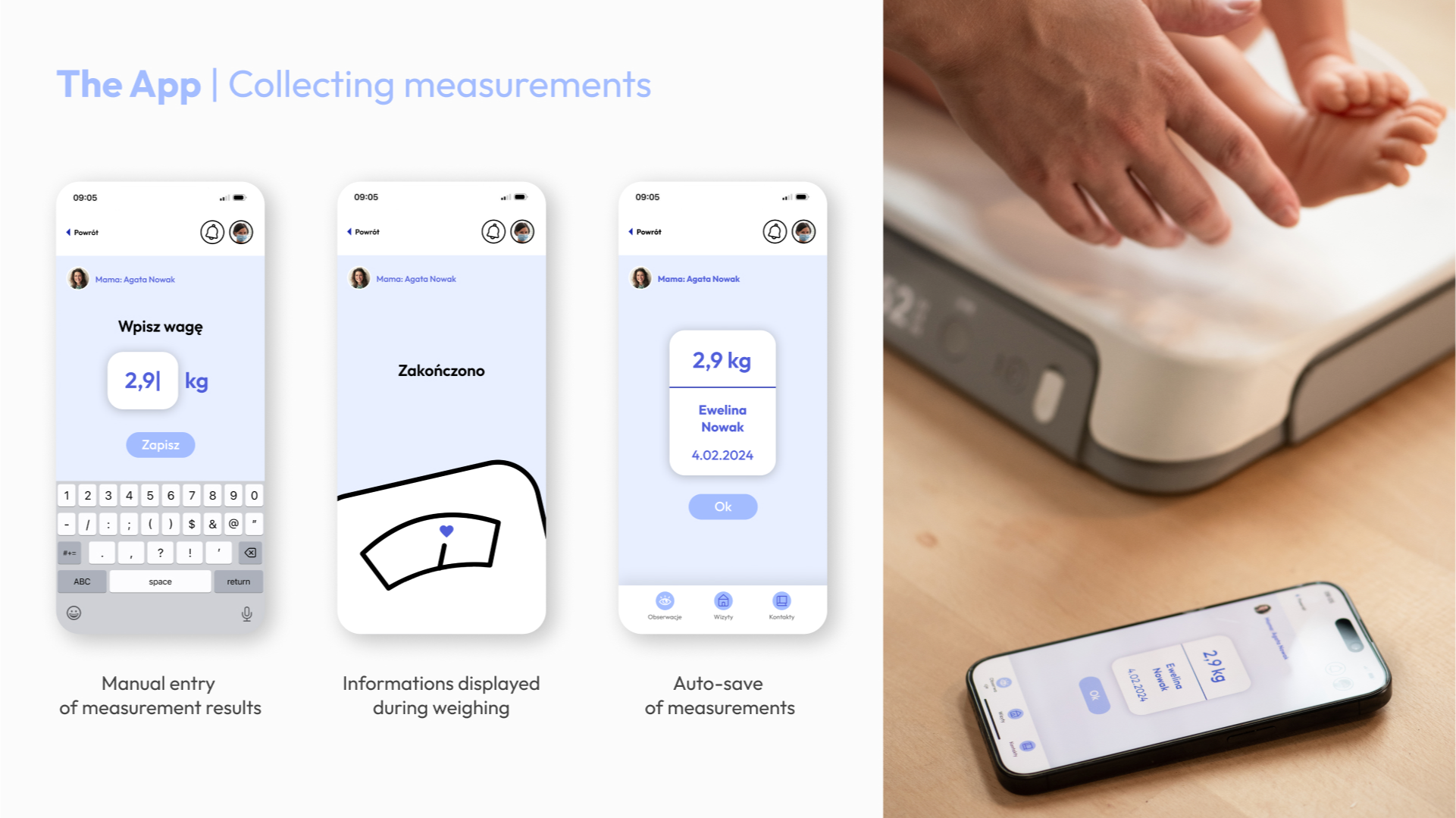 home care for the newborn and mother during the postpartum period. mobile midwife workstation Parents face new challenges when their child is born, and the postnatal period brings many physical and psychological changes for the mother. The midwife plays a crucial role in ensuring the well-being of both mother and baby through home visits. To work effectively, she needs the right tools to streamline her tasks, allowing more time to build meaningful relationships with her patients. The mobile midwife workstation includes a specialist bag with a portable baby scale. An integral part of the project is the “Home Care Together” app, which supports scheduling visits, monitoring the baby’s health, and tracking the parents’ well-being. This solution streamlines the midwife’s workflow while giving parents reliable access to information about visits and their newborn’s health.