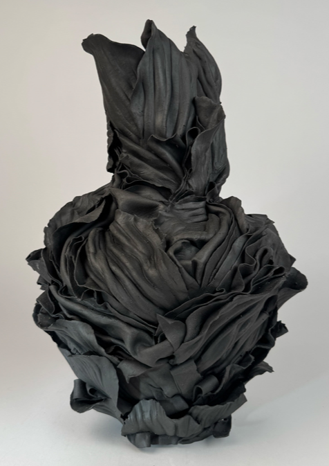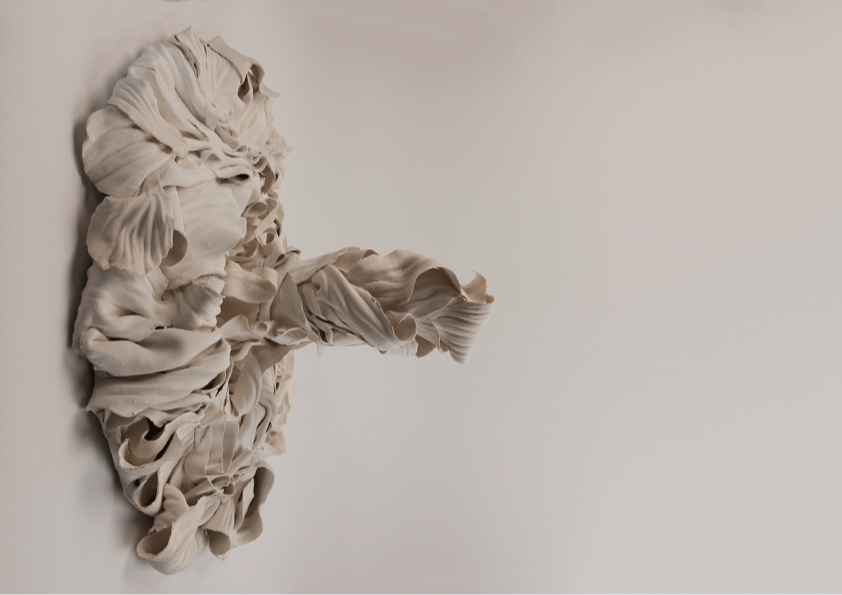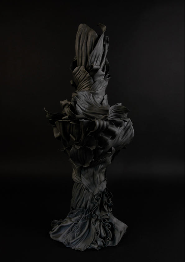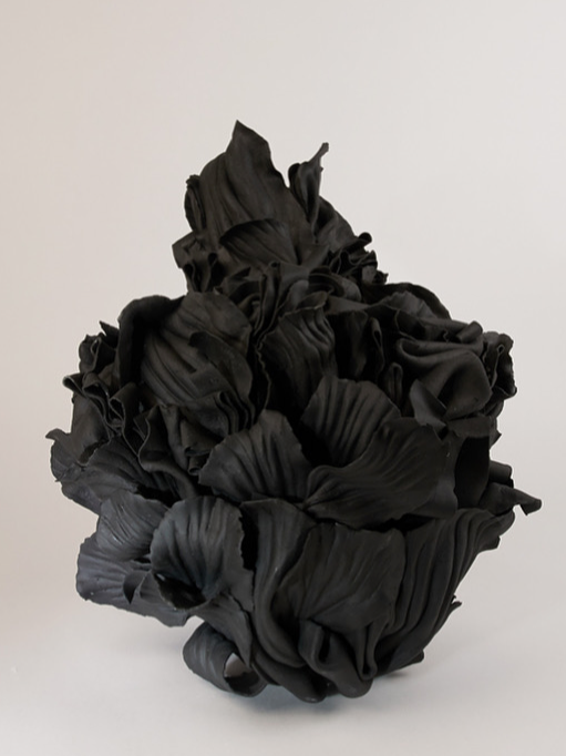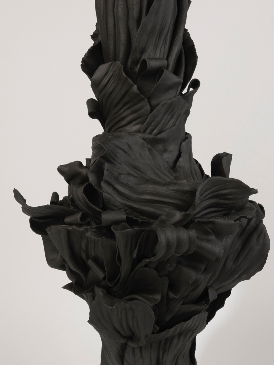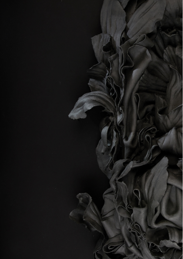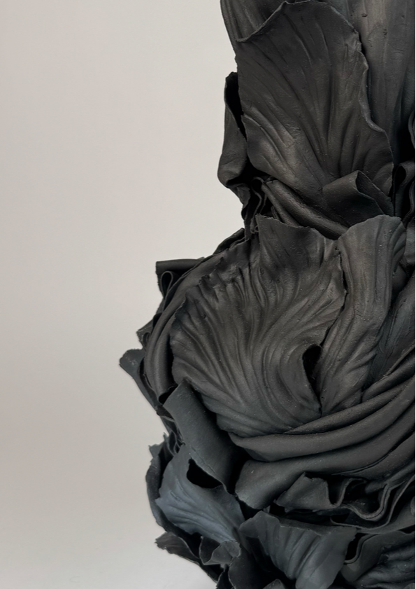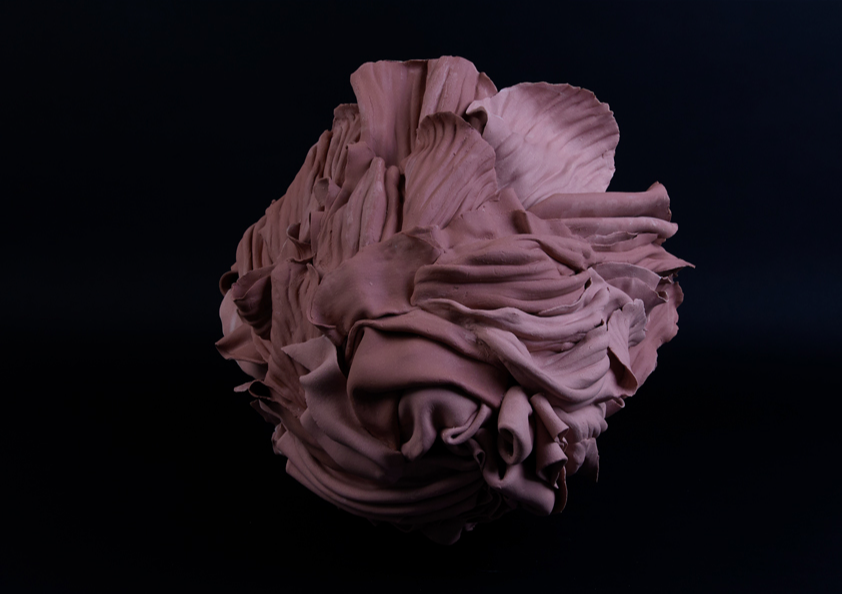 ‘In the alchemical garden’ explores transformation as a continuous, unstable state where materials bloom, decay, and shift in continuous metamorphosis. Drawing on my background in fashion, I work with paper porcelain as if it were cloth, cutting, draping, and pressing it into forms that inhabit the in-between. I create objects that are neither fully formed nor collapsing, but suspended in tension. This material language reflects my fascination with hybridity, instability, and the dialogue between control and surrender in making. My work merges botanical, bodily, and mineral references into seductive yet unsettling objects. Each piece resists a fixed form, embodying the vulnerability, drama, and possibility that is inherent in transformation, and existing in a state where beginnings and endings are inseparable.