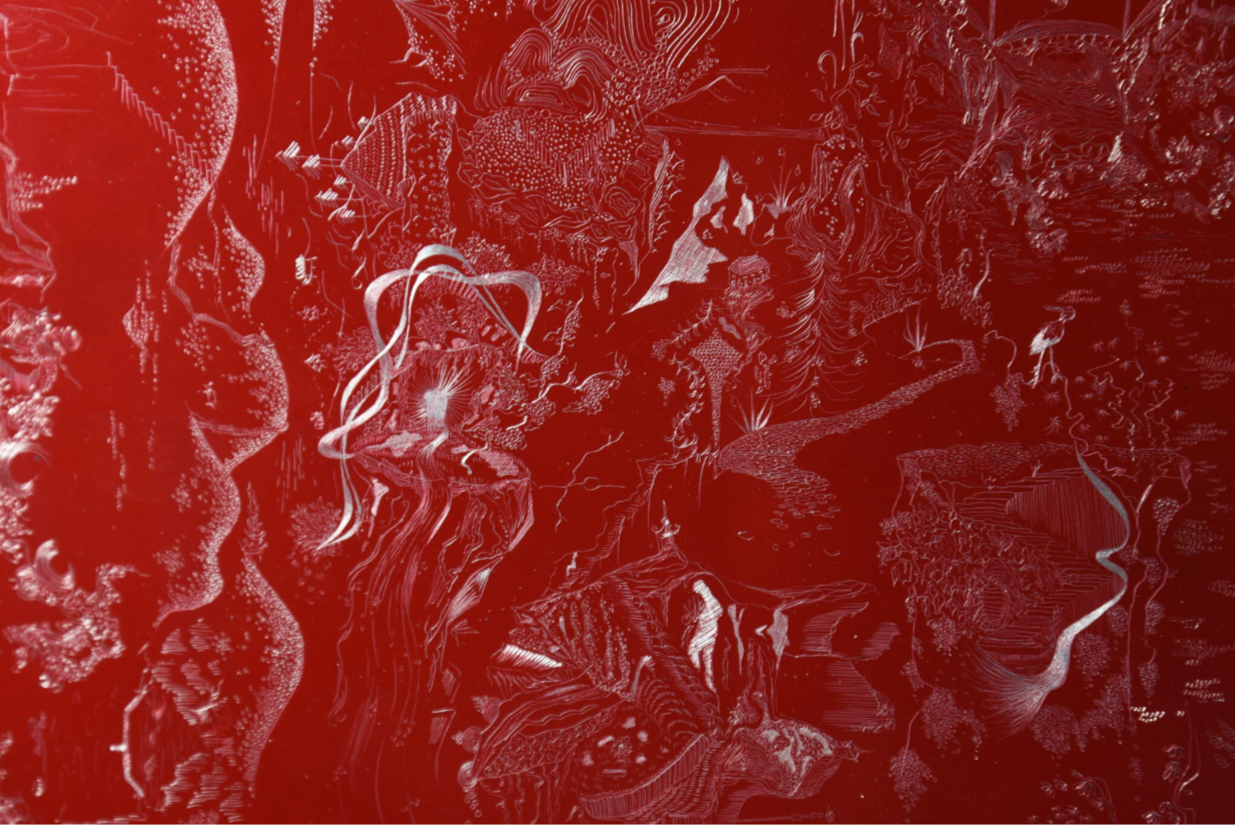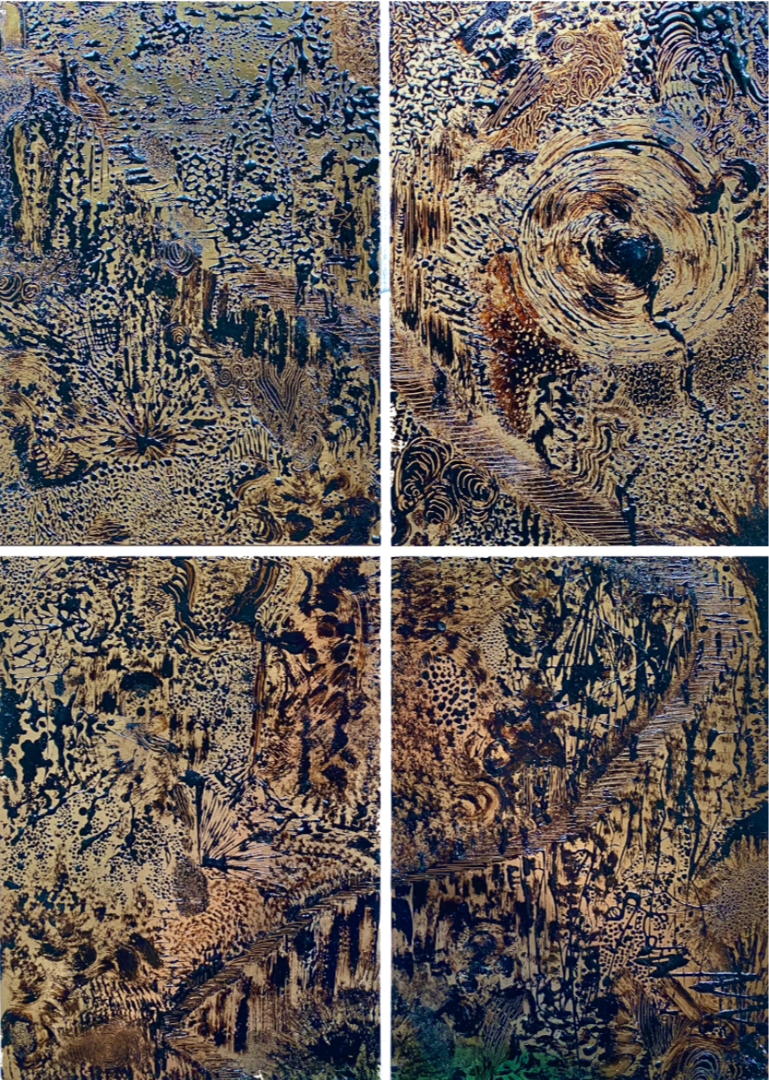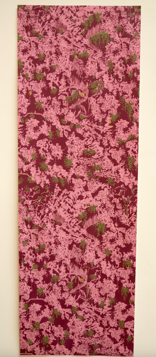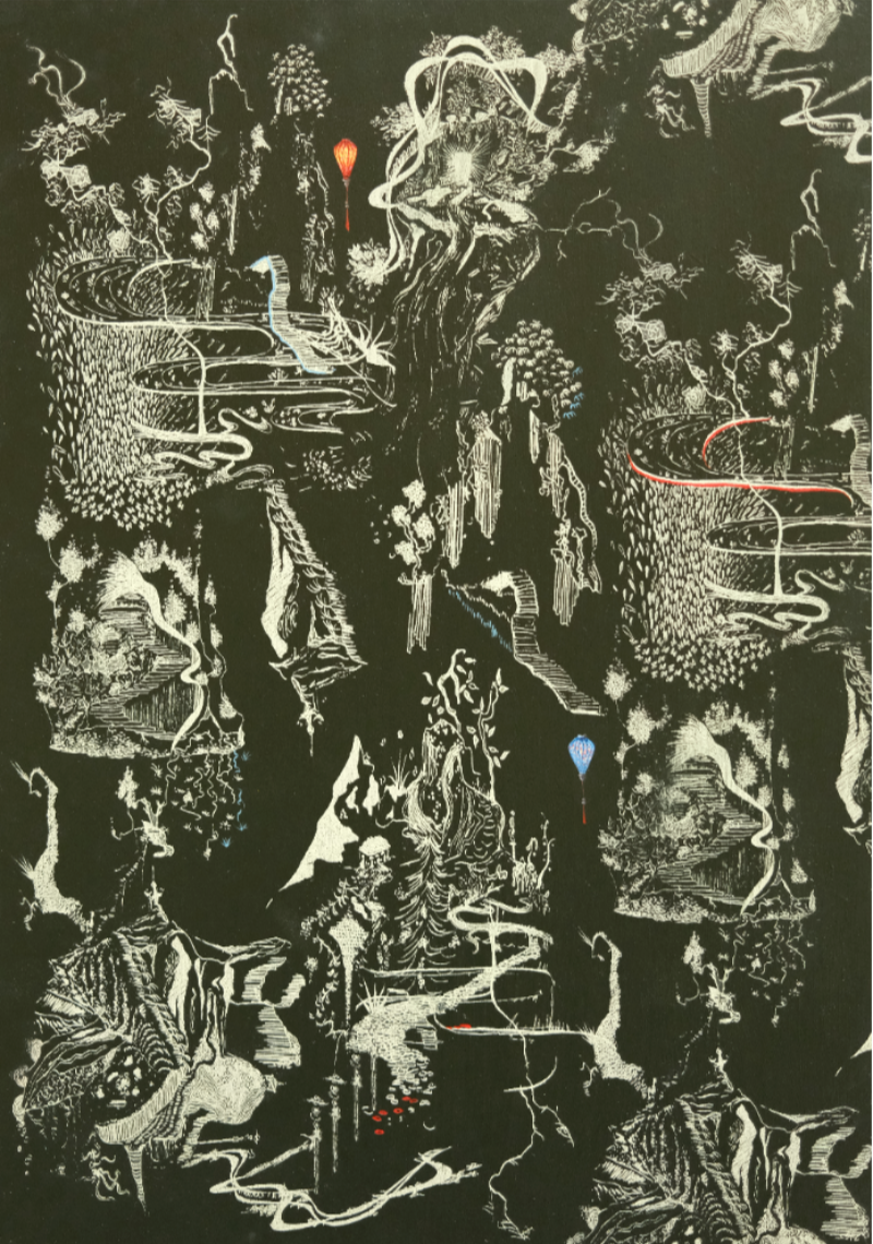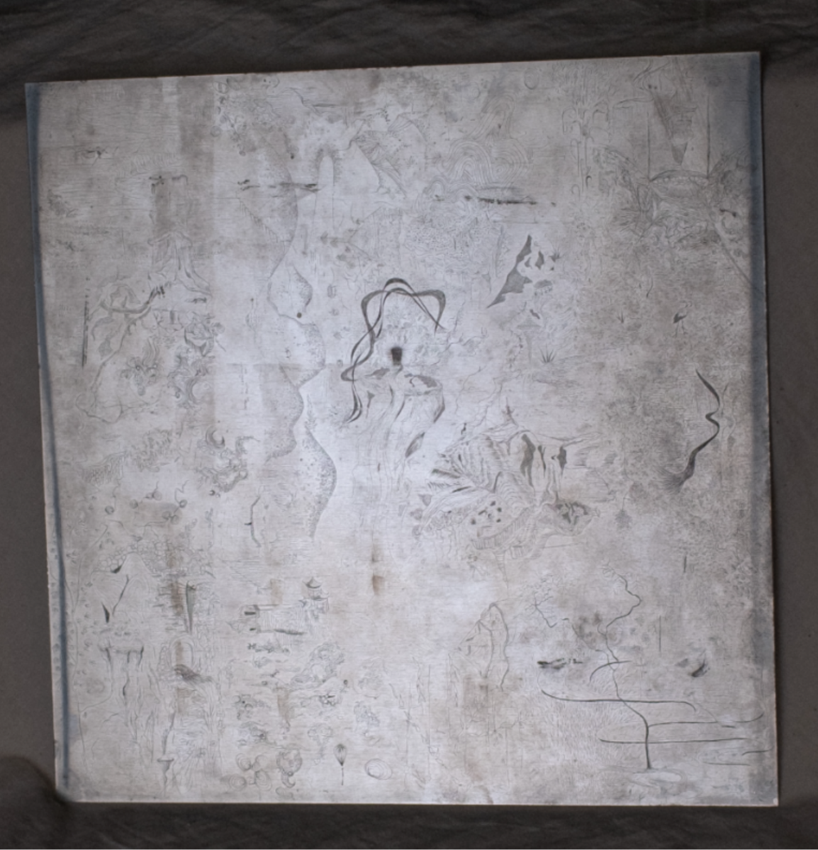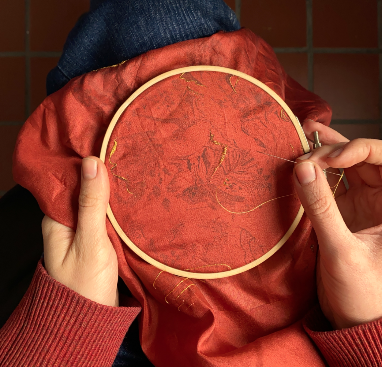 My collection focuses on detail in print and traditional craft such as etching and embroidery. The title of my collection, ‘Inner Landscapes’ comes from a phrase I heard in a meditation session. I took this practice of ‘observing my inner landscape’ from meditation into creating my collection. My main inspiration when creating my designs is the storytelling and detail in traditional Japanese landscape art. As well as this influence in my designs, my creative process is central to the making. My main medium is etching, a long meditative process that includes drawing onto metal with a needle and painting onto metal using stop out varnish, which has a very unpredictable nature. I scan these etched metal designs to create repeats onto different surfaces using a range of printmaking techniques. My collection displays a journey from these printed etching plates to surfaces such as silk, paper and wood. https://vimeo.com/1082282763/541a735fca