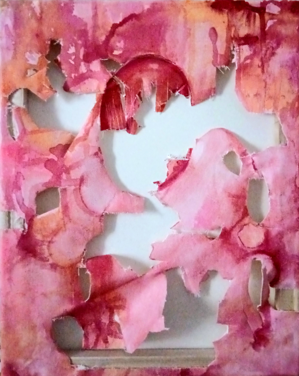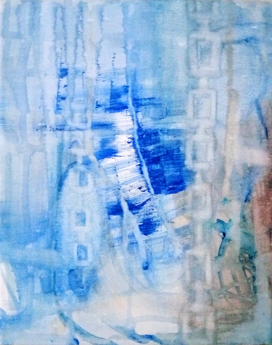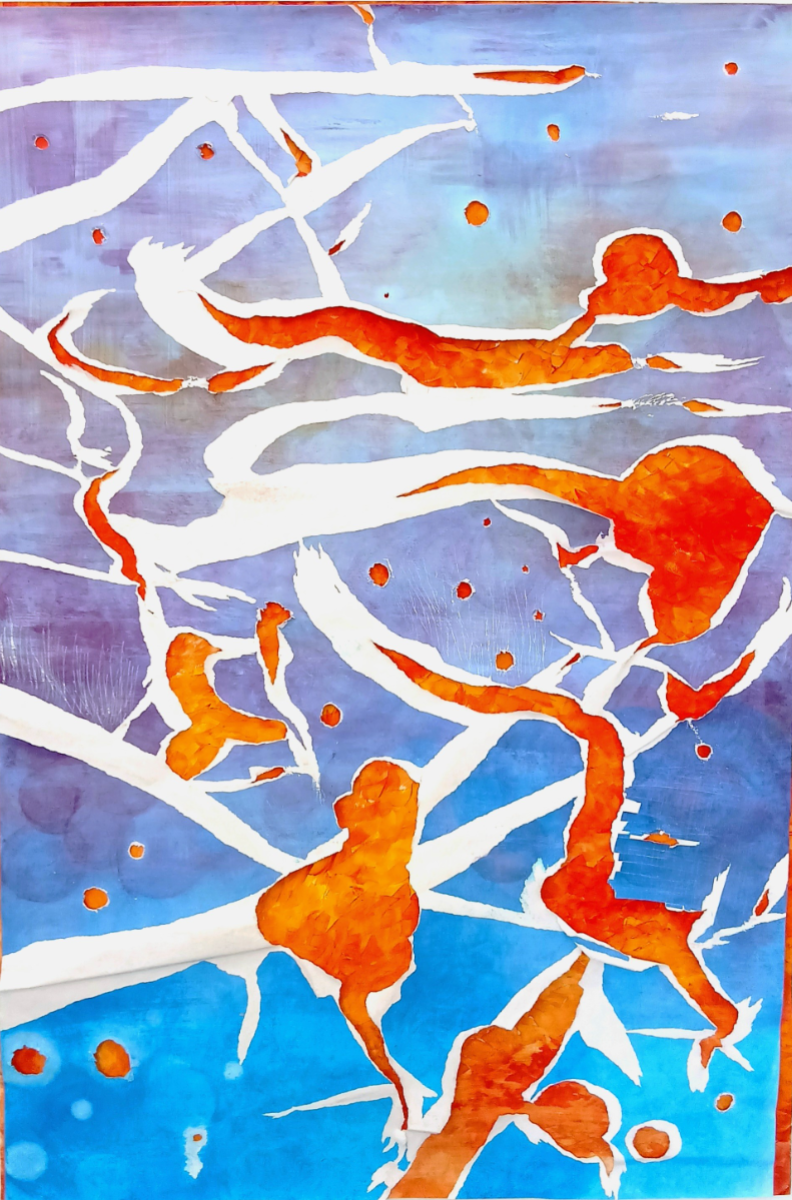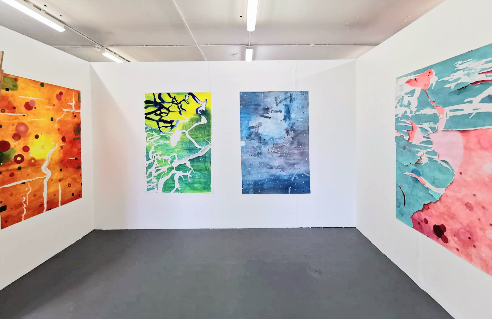 In anthropology, the liminal space comes from the disconnection that develops in the middle of a transformation. This space is something we often do not realize we are in but do know that we feel deeply disconnected, disorientated and overwhelmed with the world around us as the liminal space engulfs us, causing one to become dissociative, disconnected and fragile within liminality. I wanted to explore the liminal space from an emotive aspect describing the in-between through phosphene structures and contrasting palettes and mimicking the repetitive contradictory forces of destruction and creation that occur within liminality. This is represented through the dilution of acrylic paint and the repetitive nature of wiping and adding paint to paper and canvas. With desperate acts of scratching, grazing and ripping paper, we can feel the desperation and anticipation of exiting and entering the liminal space.