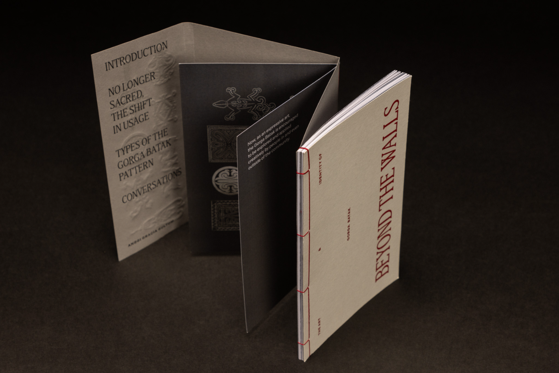 Marking Home is a hands-on toolkit inspired by the traditional Batak art of the Gorga Pattern in Indonesia, developed to explore themes of identity and memory. This project started from the interest in how the pattern has transformed, from something that’s sacred, carved in traditional homes, into an expressive art form that continues to carry a sense of belonging even for those who have migrated. The toolkit consisted of a packaging that was created manually with letterpress, inspired by the handcrafted nature of Gorga and reflecting on their different level of surfaces. A publication was also included, tracing the history of the pattern that also features conversations with migrants in different parts of the world.
