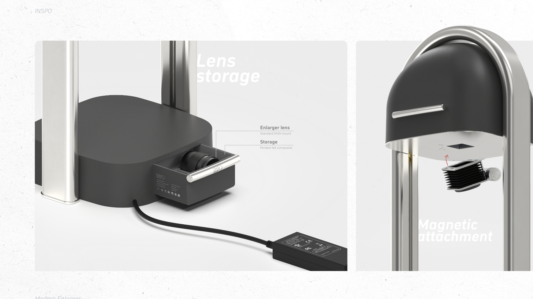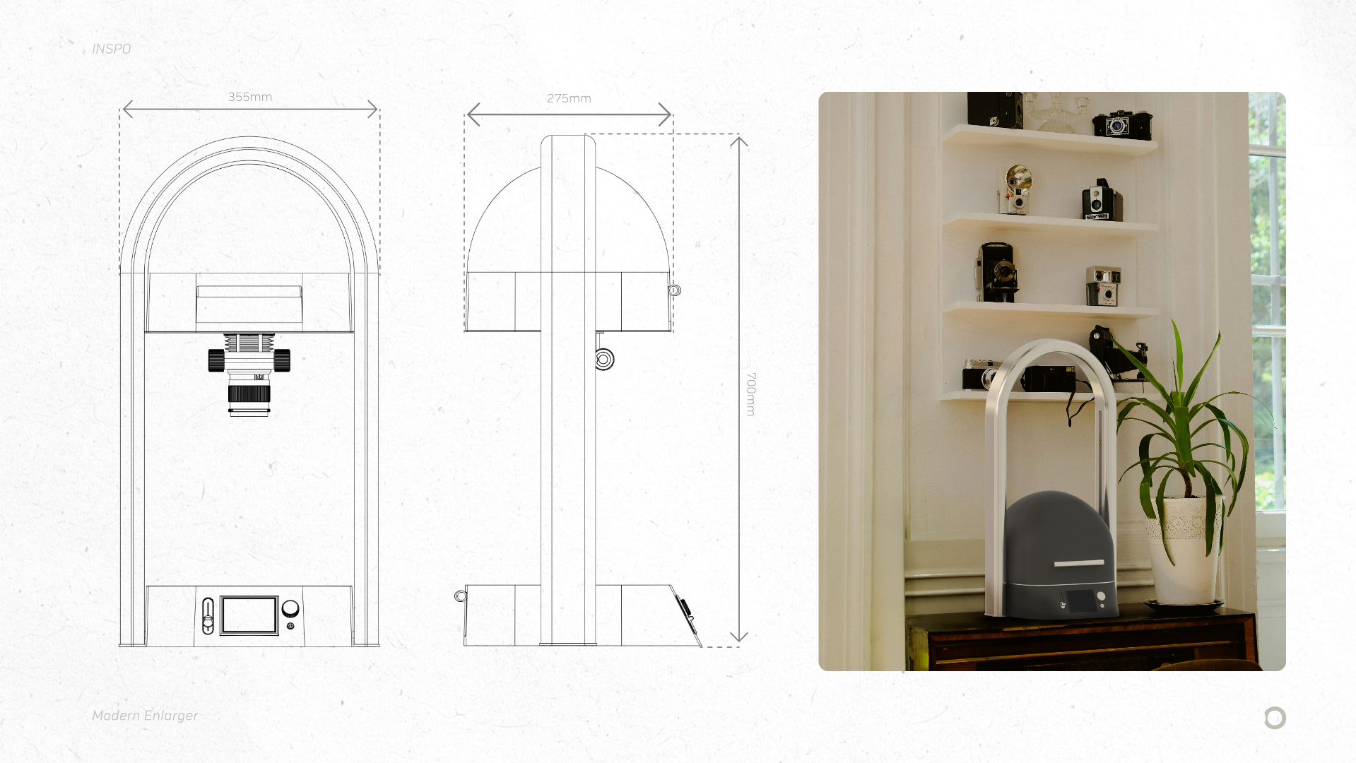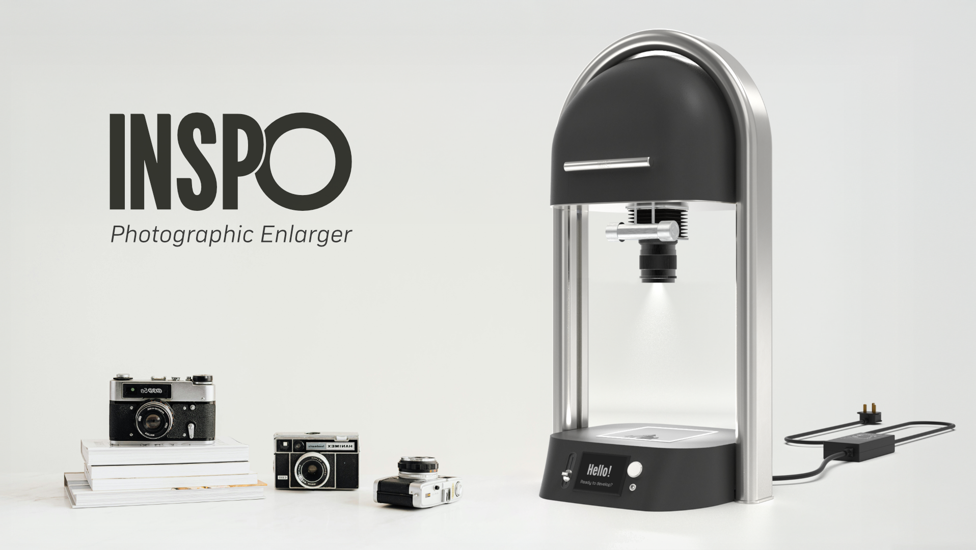Meet the Inspo Photographic Enlarger – a reimagination of darkroom development for the modern user. The product allows film photographers to project images from film onto light-sensitive paper by adjusting focus, exposure, and size to create physical prints. Designed to be tactile and intuitive with a contemporary aesthetic, the Inspo Enlarger brings the charm of hands-on film development to your home or studio. With film photography making a nostalgic comeback amongst younger generations, darkroom printing is next in line for revival. The Inspo Enlarger will serve both as a high-quality tool and an accessible learning platform.