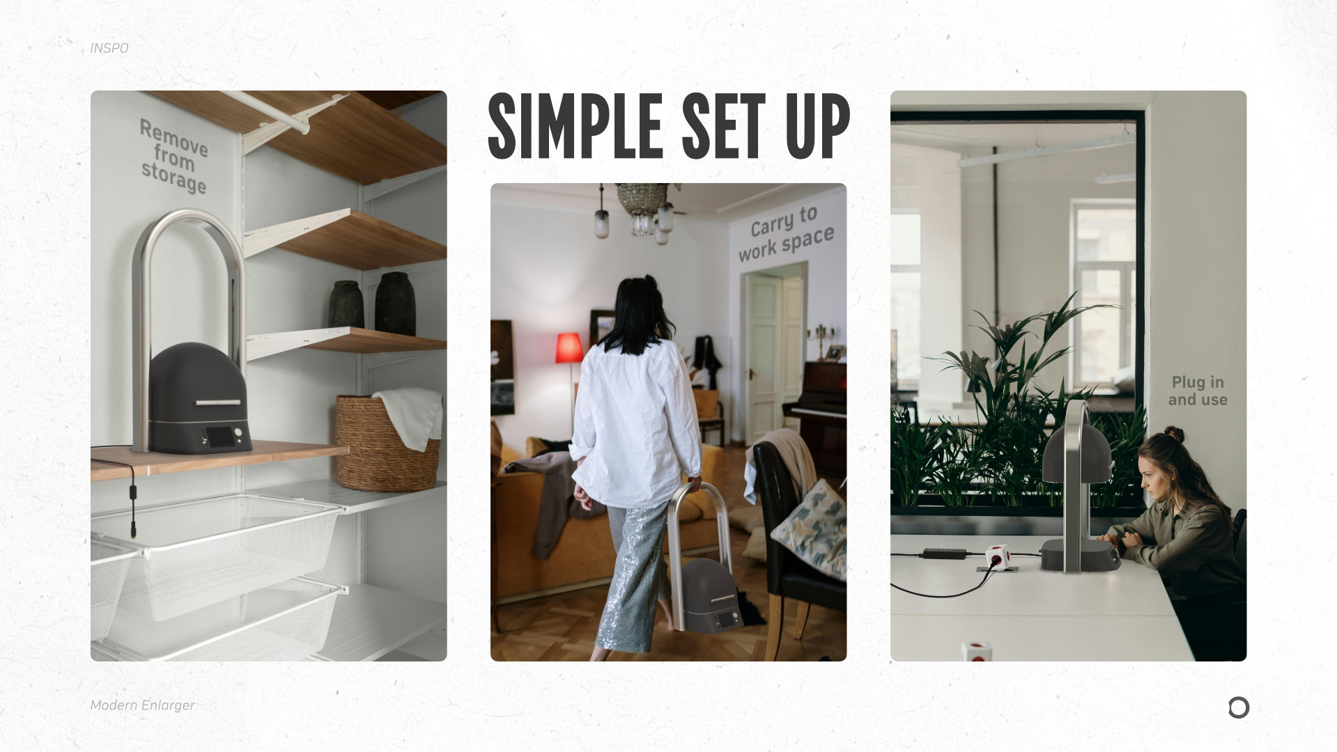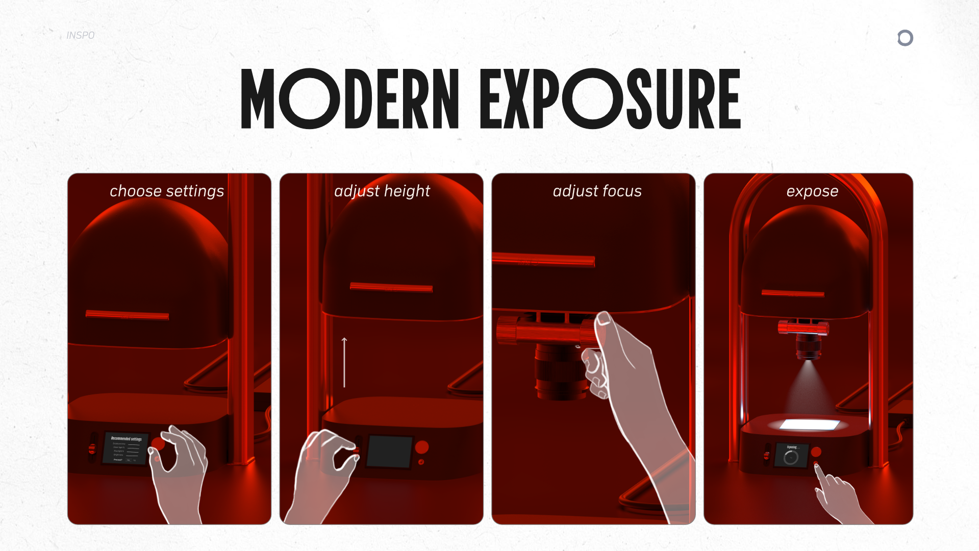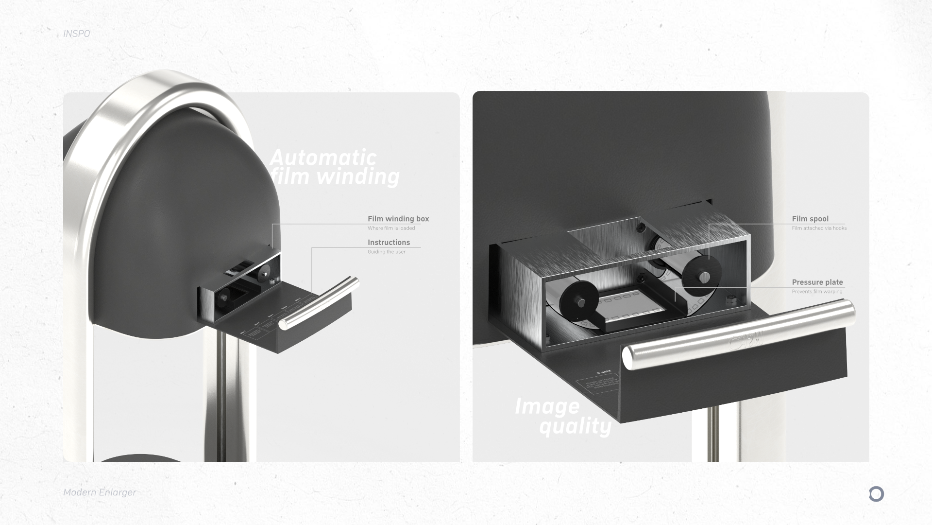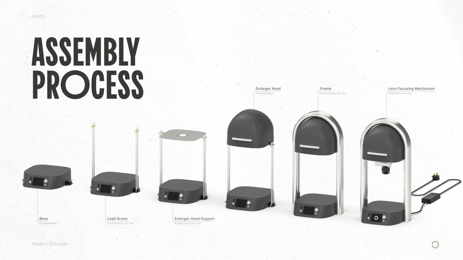 Meet the Inspo Photographic Enlarger – a reimagination of darkroom development for the modern user. The product allows film photographers to project images from film onto light-sensitive paper by adjusting focus, exposure, and size to create physical prints. Designed to be tactile and intuitive with a contemporary aesthetic, the Inspo Enlarger brings the charm of hands-on film development to your home or studio. With film photography making a nostalgic comeback amongst younger generations, darkroom printing is next in line for revival. The Inspo Enlarger will serve both as a high-quality tool and an accessible learning platform.