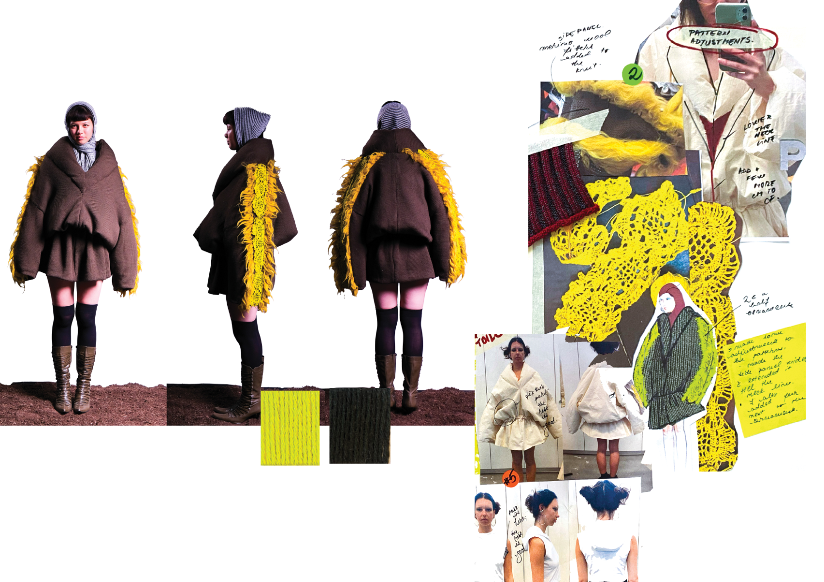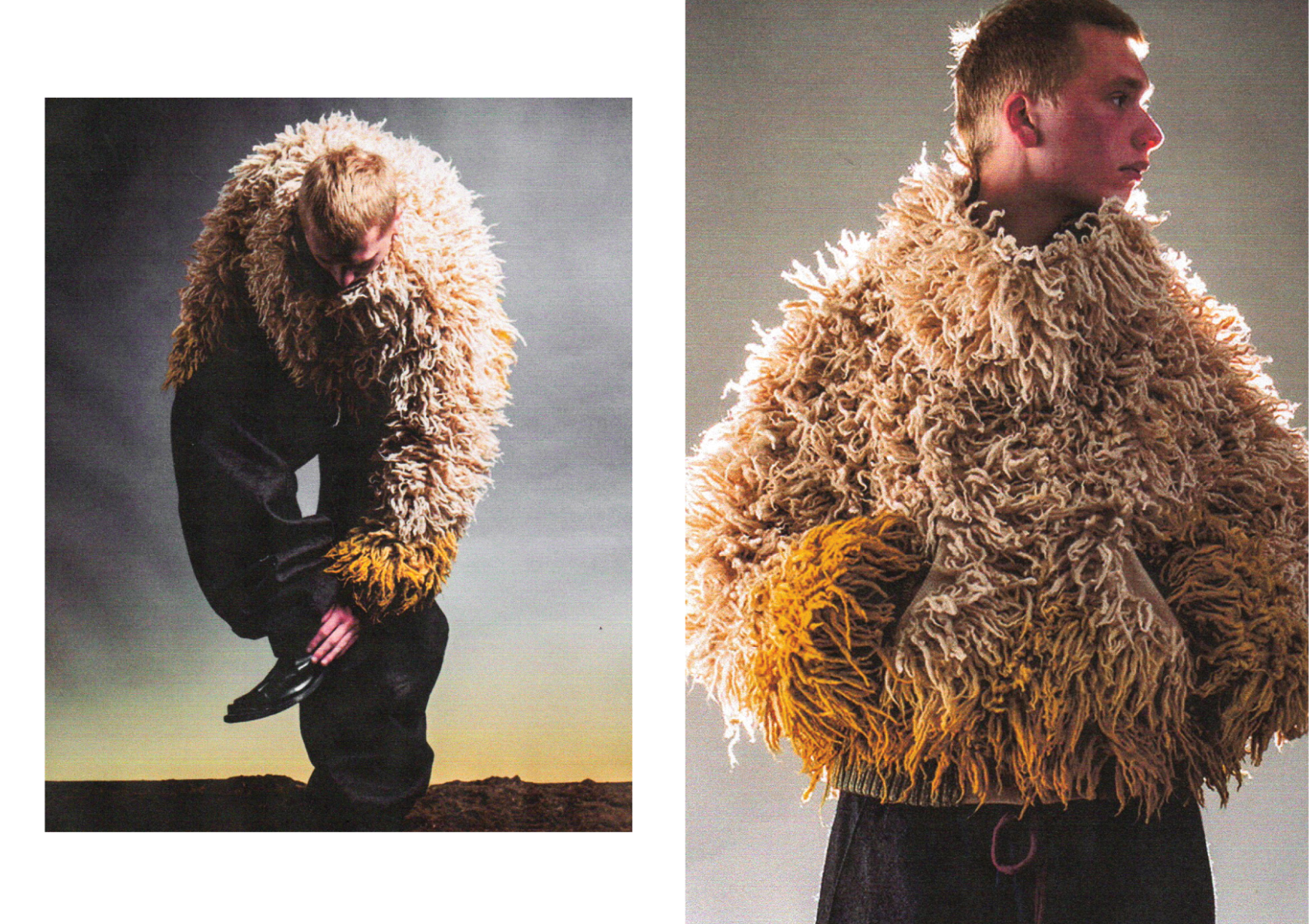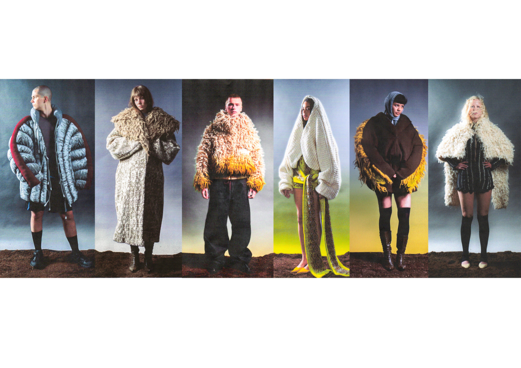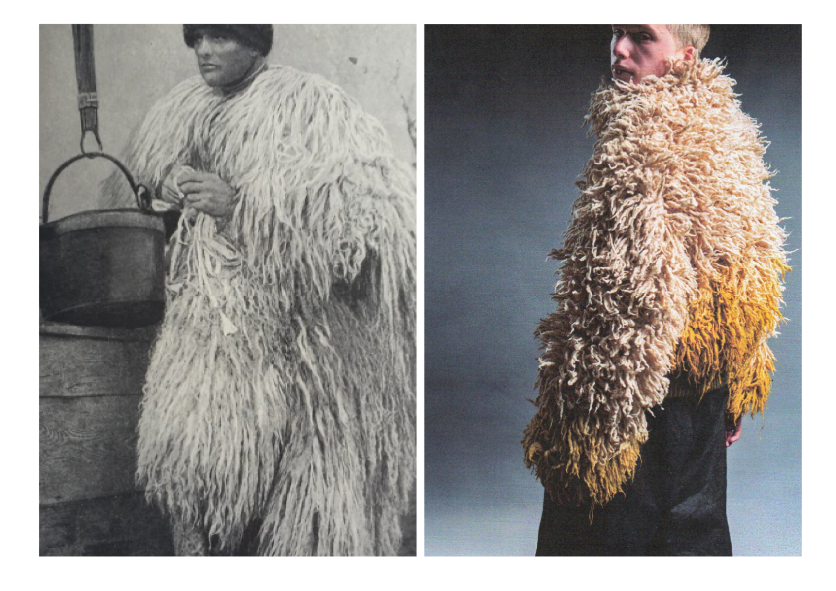How can craftsmanship, rather than being left behind, help reinvent our current fashion practices? The collection “Resilient Forms” challenges the current state of the fashion industry by functionally reintroducing craftsmanship into our society. The coats worn by Romanian shepherds in the rugged conditions of the Carpathian Mountains are a prime example of how craft can create functional and weather-resistant garments while using natural materials. Drawing inspiration from this traditional context, the project explores techniques such as knitting and the properties of wool to develop improved garment-making methods for today’s needs. The heart of this collection lies in the development of a knitted outerwear line. By delving into the evolution of this protective layer, it draws a parallel between the traditional sheepskin coats and their modern counterpart, the oversized puffer jacket. Garments take on a slower and more sustainable approach to contemporary silhouettes. By bridging the gap between tradition and innovation, the collection “Resilient Forms” is a celebration of the past and a vision for the future, finding harmony between beauty and functionality.