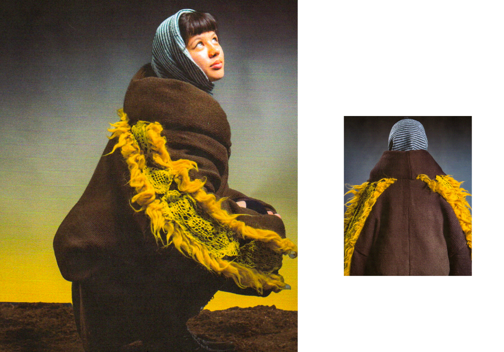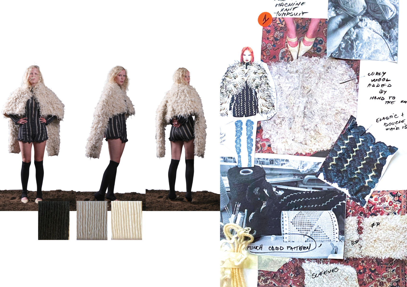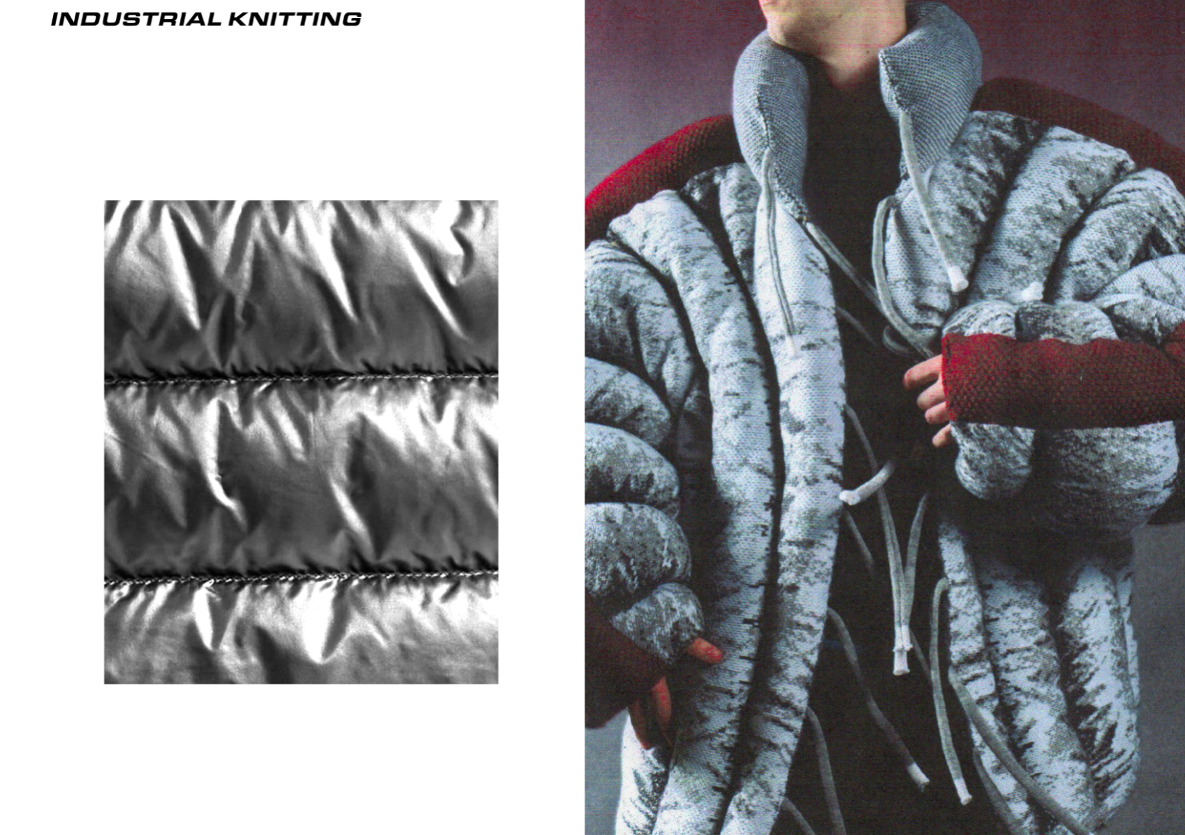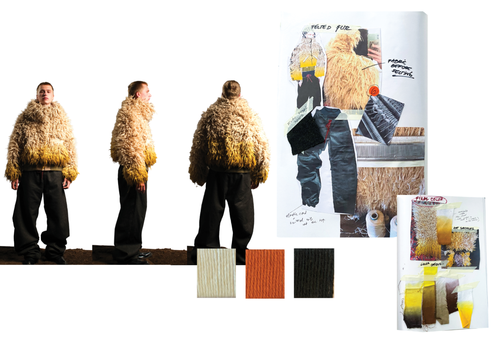 How can craftsmanship, rather than being left behind, help reinvent our current fashion practices? The collection “Resilient Forms” challenges the current state of the fashion industry by functionally reintroducing craftsmanship into our society. The coats worn by Romanian shepherds in the rugged conditions of the Carpathian Mountains are a prime example of how craft can create functional and weather-resistant garments while using natural materials. Drawing inspiration from this traditional context, the project explores techniques such as knitting and the properties of wool to develop improved garment-making methods for today’s needs. The heart of this collection lies in the development of a knitted outerwear line. By delving into the evolution of this protective layer, it draws a parallel between the traditional sheepskin coats and their modern counterpart, the oversized puffer jacket. Garments take on a slower and more sustainable approach to contemporary silhouettes. By bridging the gap between tradition and innovation, the collection “Resilient Forms” is a celebration of the past and a vision for the future, finding harmony between beauty and functionality.