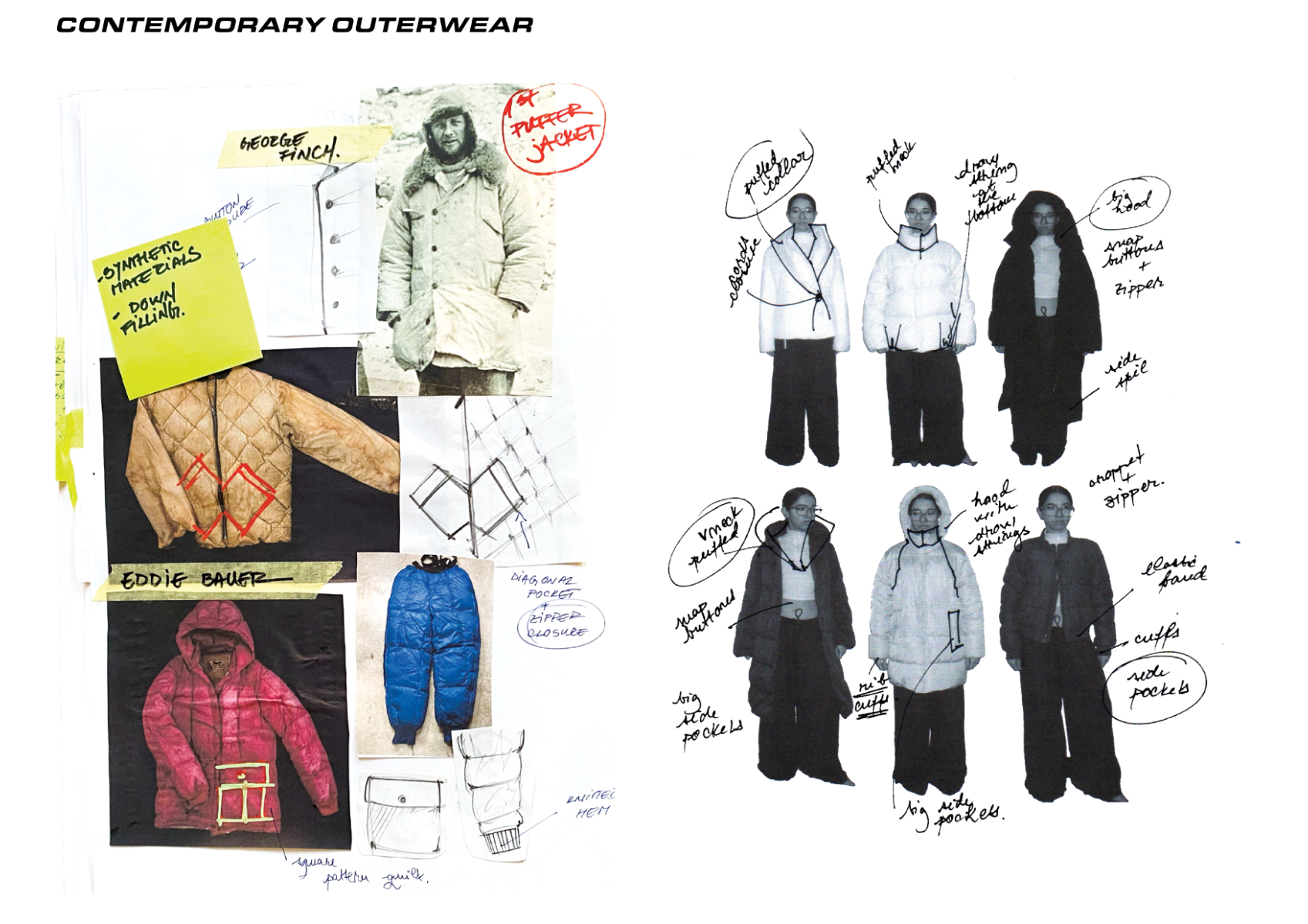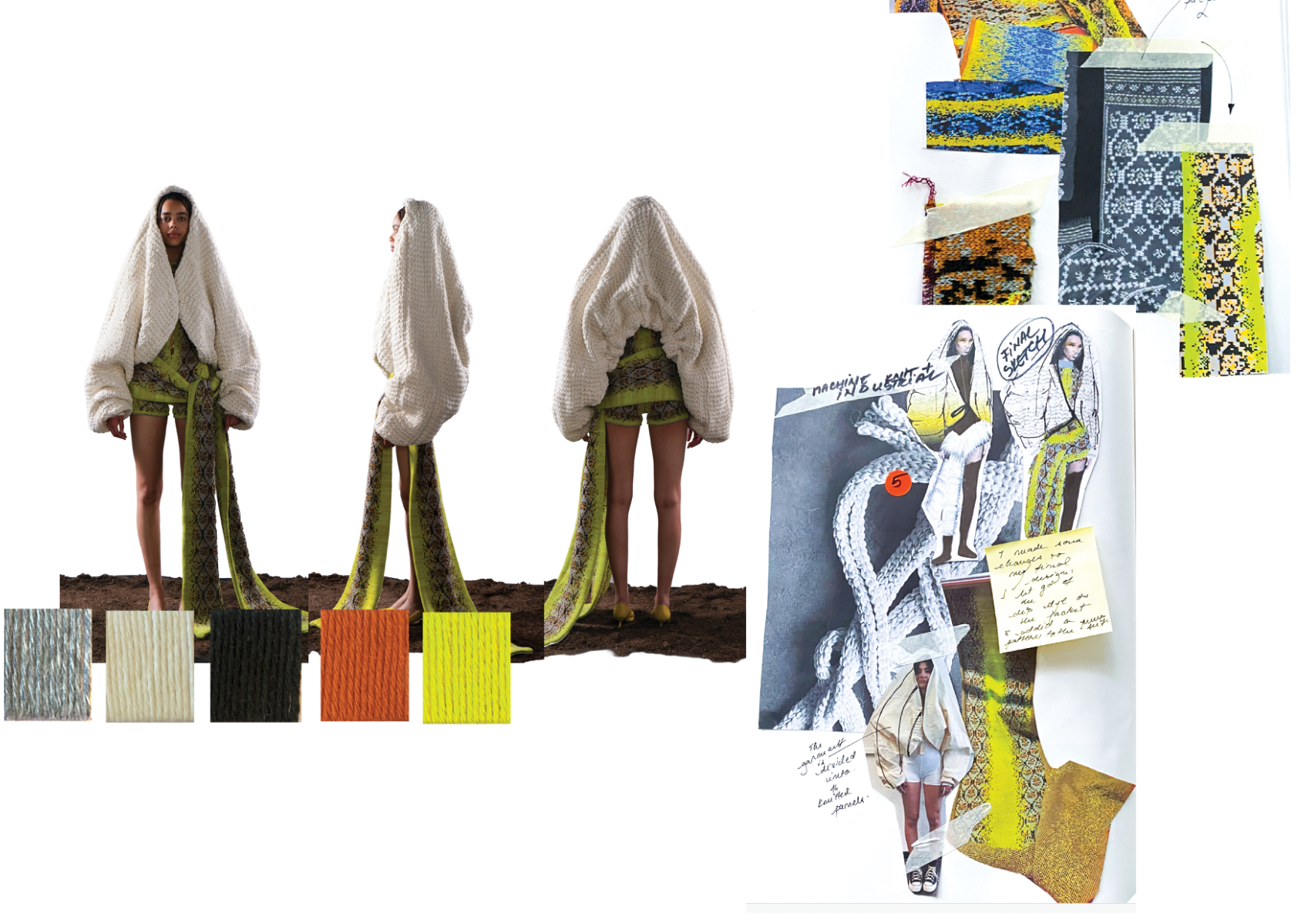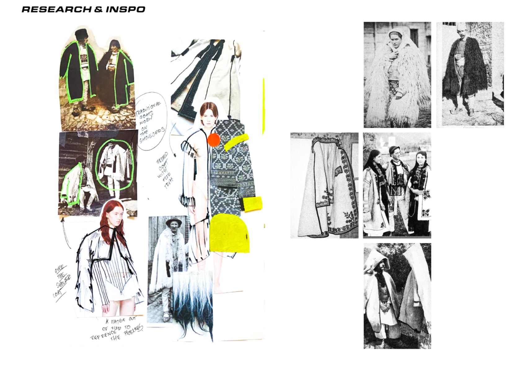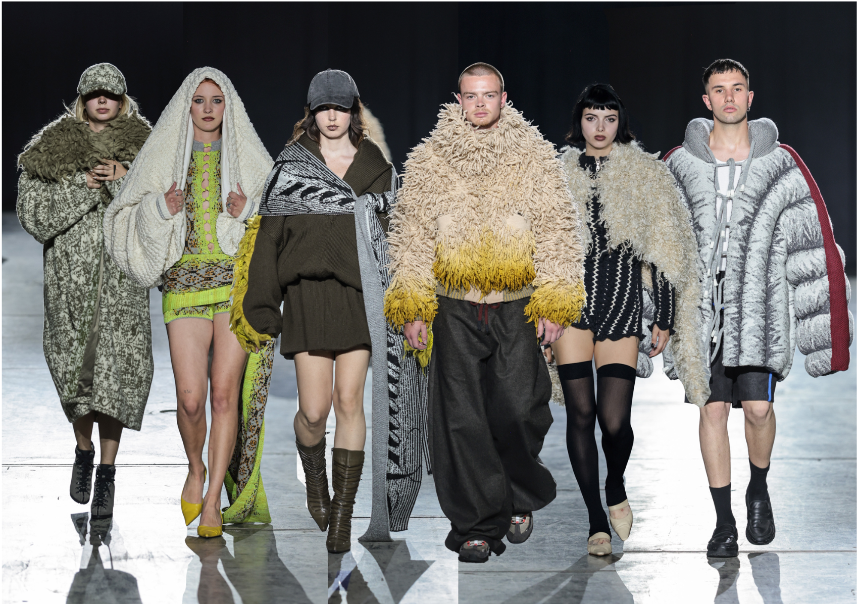 How can craftsmanship, rather than being left behind, help reinvent our current fashion practices? The collection “Resilient Forms” challenges the current state of the fashion industry by functionally reintroducing craftsmanship into our society. The coats worn by Romanian shepherds in the rugged conditions of the Carpathian Mountains are a prime example of how craft can create functional and weather-resistant garments while using natural materials. Drawing inspiration from this traditional context, the project explores techniques such as knitting and the properties of wool to develop improved garment-making methods for today’s needs. The heart of this collection lies in the development of a knitted outerwear line. By delving into the evolution of this protective layer, it draws a parallel between the traditional sheepskin coats and their modern counterpart, the oversized puffer jacket. Garments take on a slower and more sustainable approach to contemporary silhouettes. By bridging the gap between tradition and innovation, the collection “Resilient Forms” is a celebration of the past and a vision for the future, finding harmony between beauty and functionality.