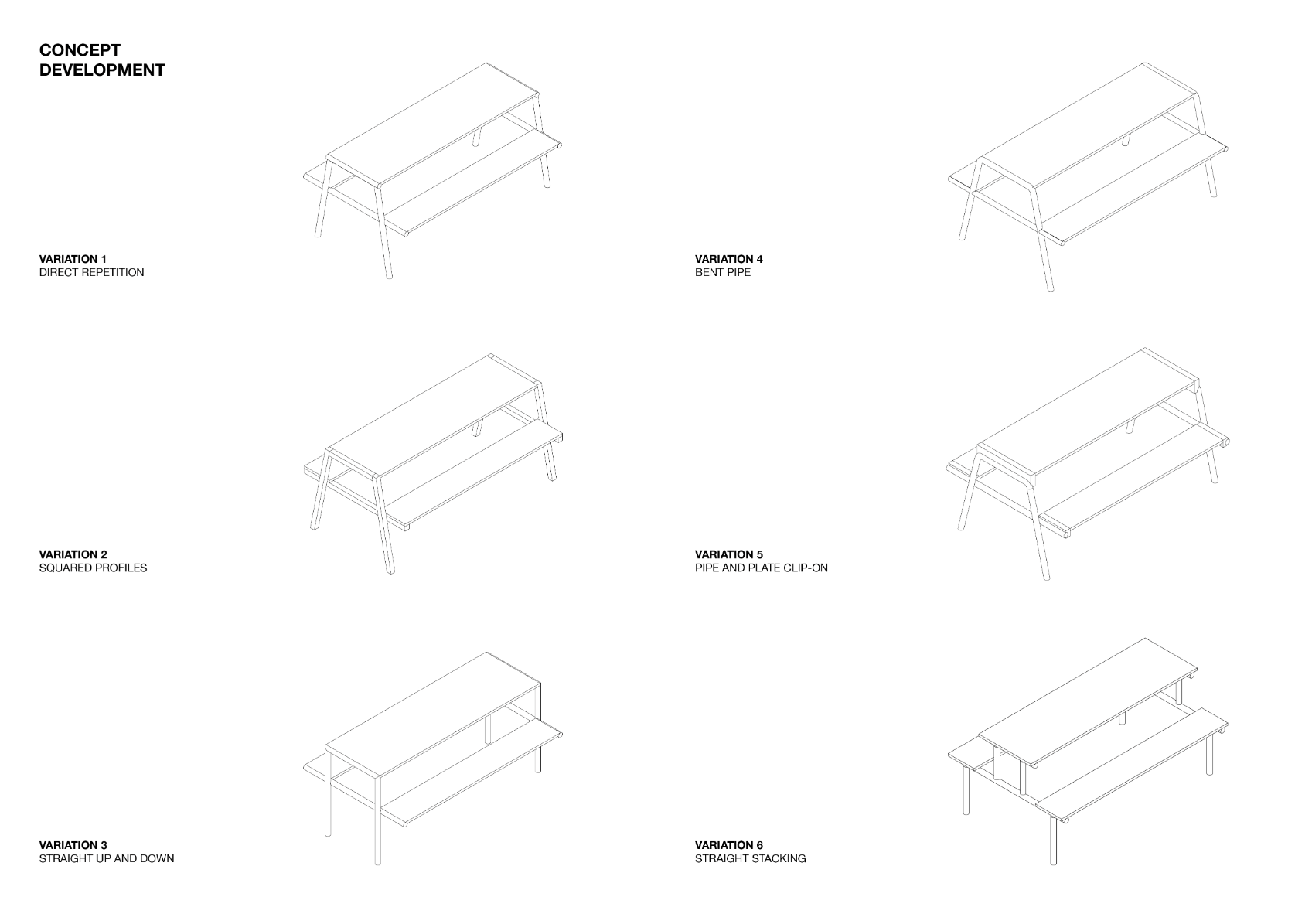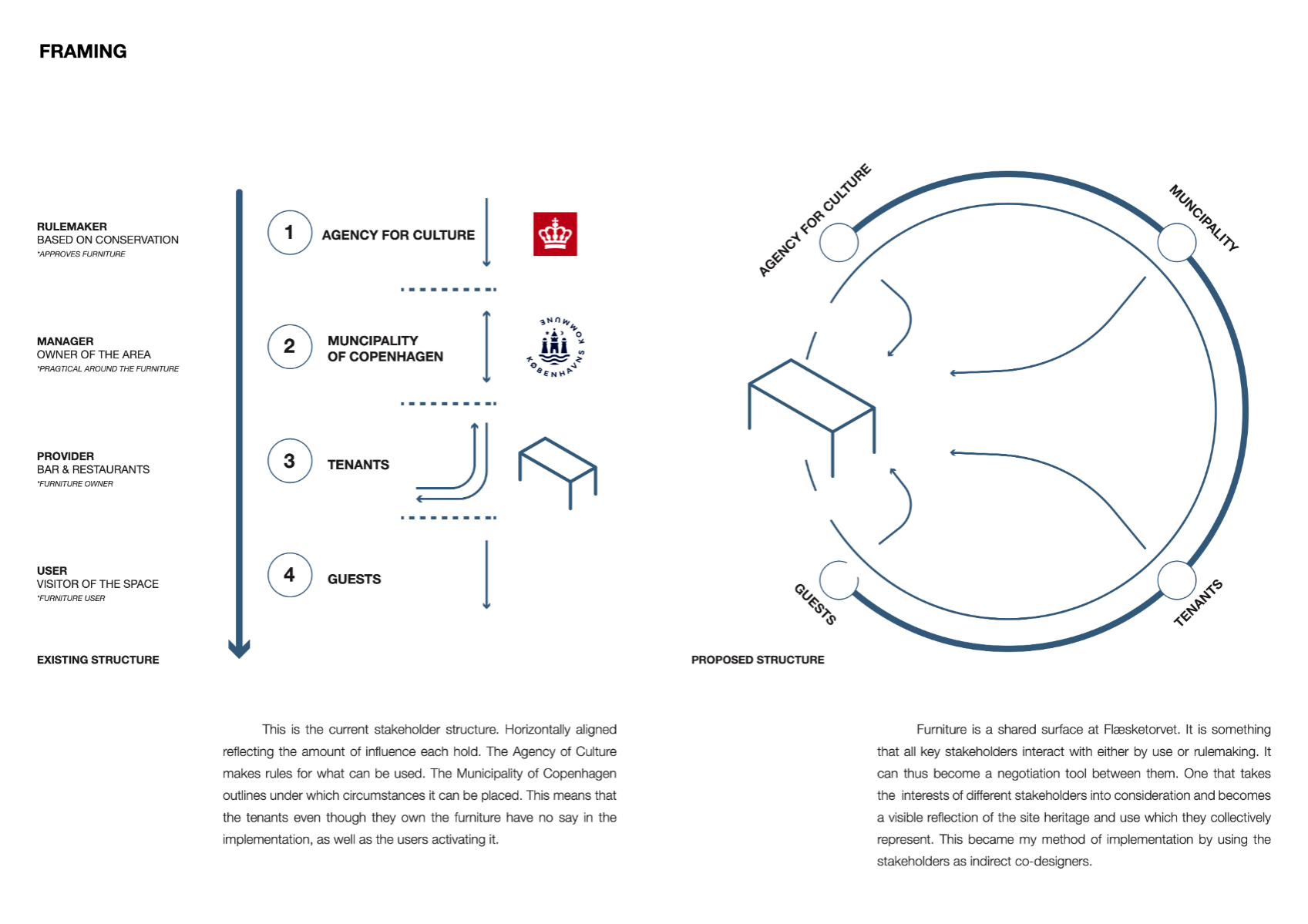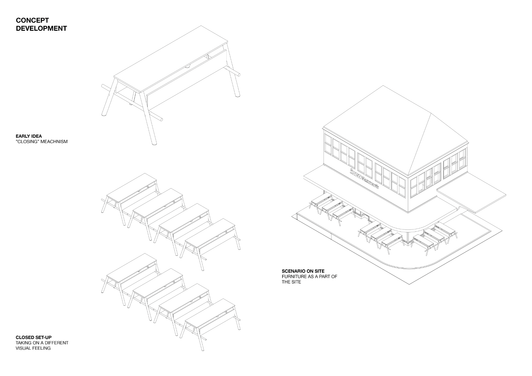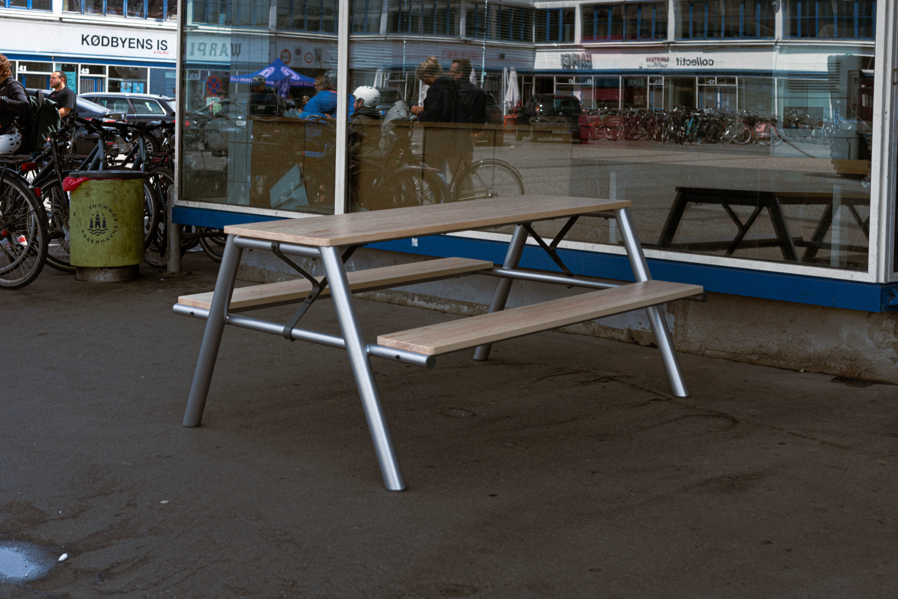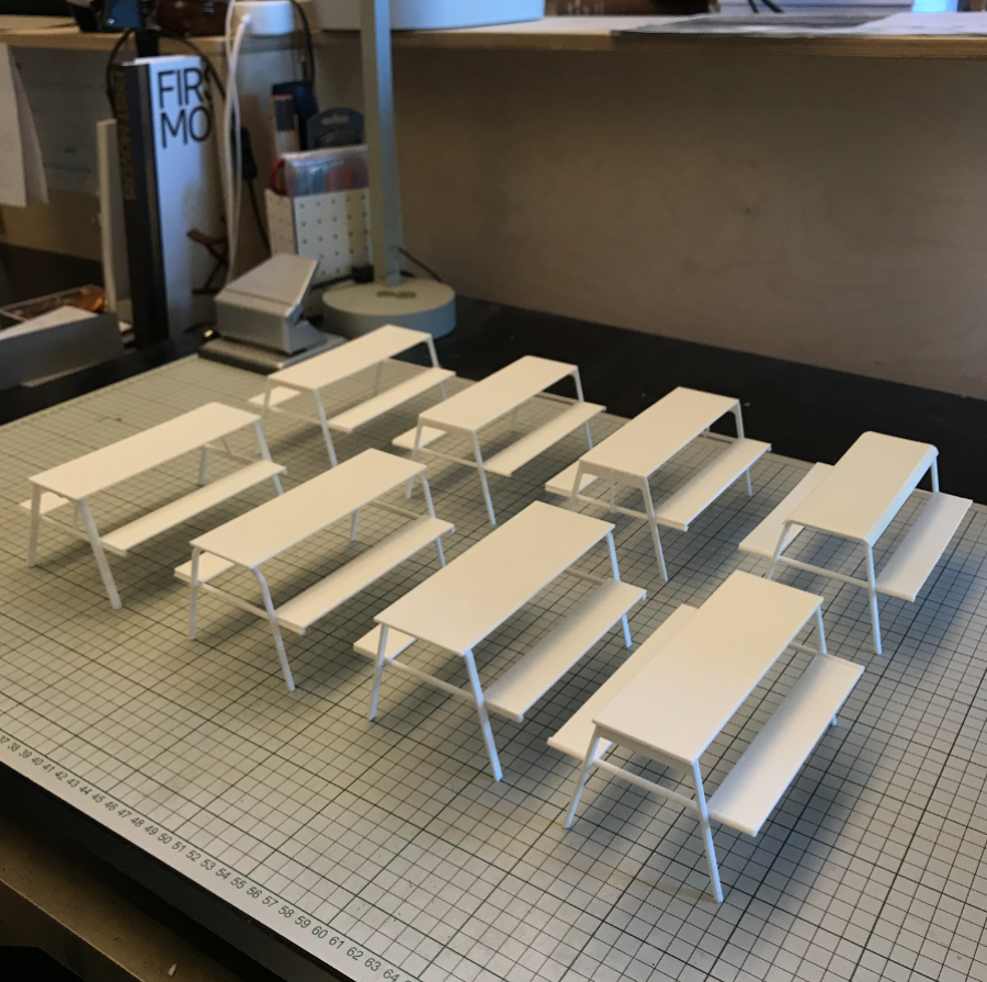 The project was motivated by a curiosity of how furniture can relevantly take part in the conversation of public spaces beyond function. The site was Copenhagen's Meatpacking District. An industrial heritage site with rich history that now are acting as an asphalt park - full of bars and restaurant. The result was deeply influenced by a co-design process with the site's stakeholders, contemporary use and industrial history. Trying to signify relevance situated through history, assembly and use. The prototype was made in collaboration with HAUGAARD A/S.
