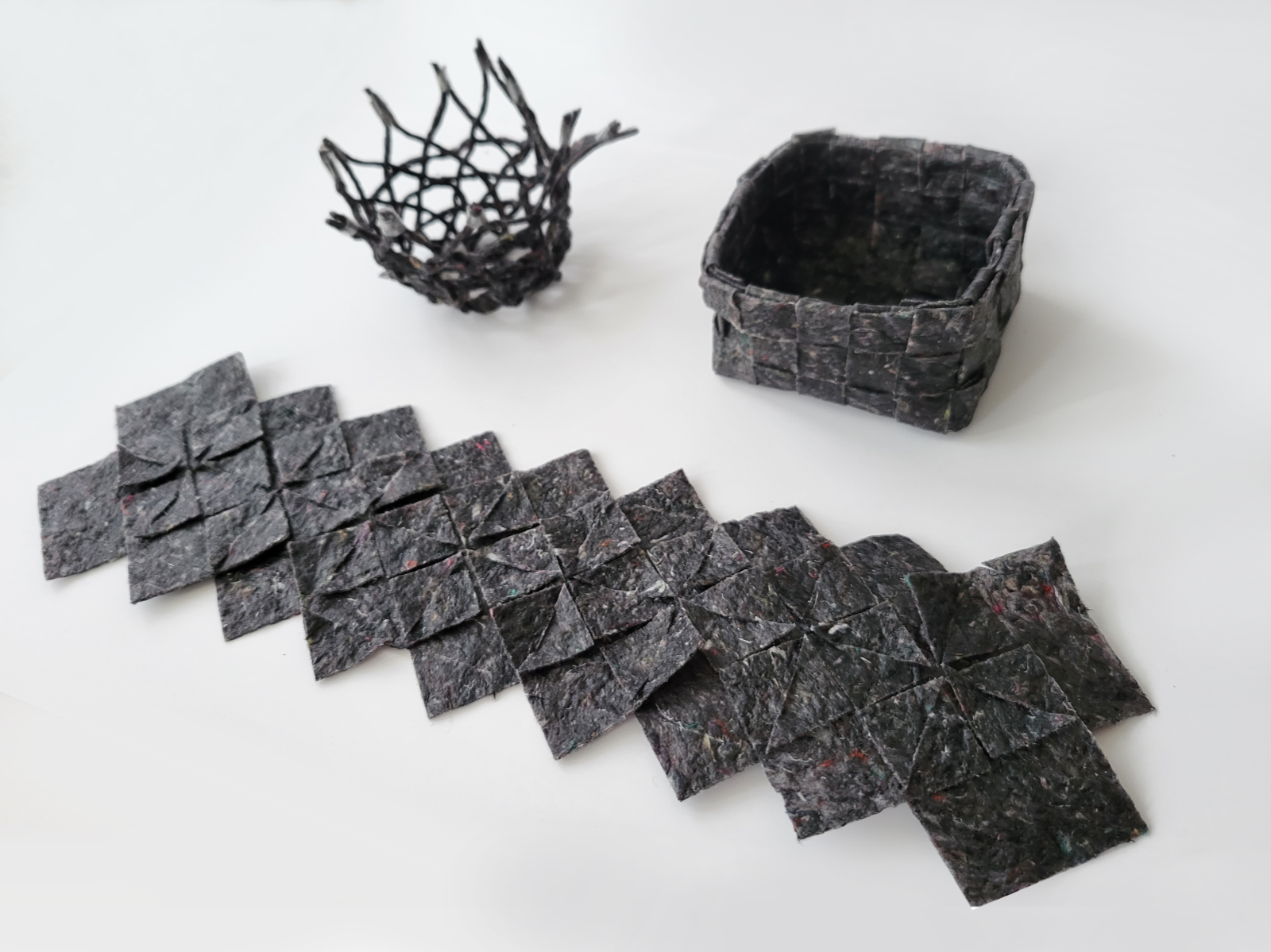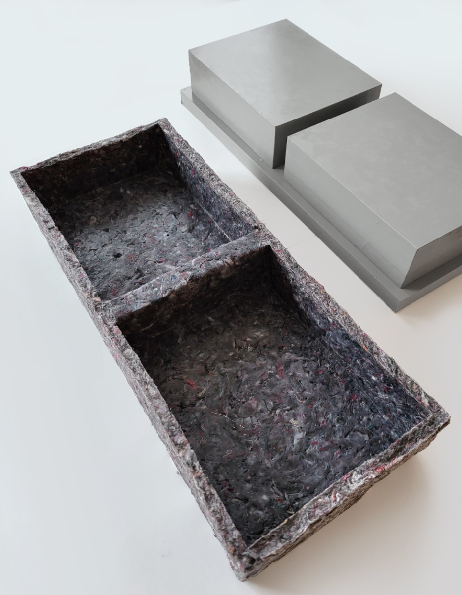 The growing fashion industry is leading to a massive environmental burden due to textile waste, of which only about 1 % is used for textile-to-textile recycling. Innovative approaches to the reuse of textile fibers are urgently needed to conserve resources and reduce environmental impact. In my master‘s thesis „Fabricated Futures. Potentials of Textile Transformations“ I developed Texterra. An innovative material made from textile fibers and a natural binder based on corn starch. Texterra resembles artificial leather at a thin material thickness and plastic at a thicker material thickness. The fiber material can be processed through various manufacturing processes such as molding, laser cutting, or extrusion. Thus offering a wide range of applications in the design field.