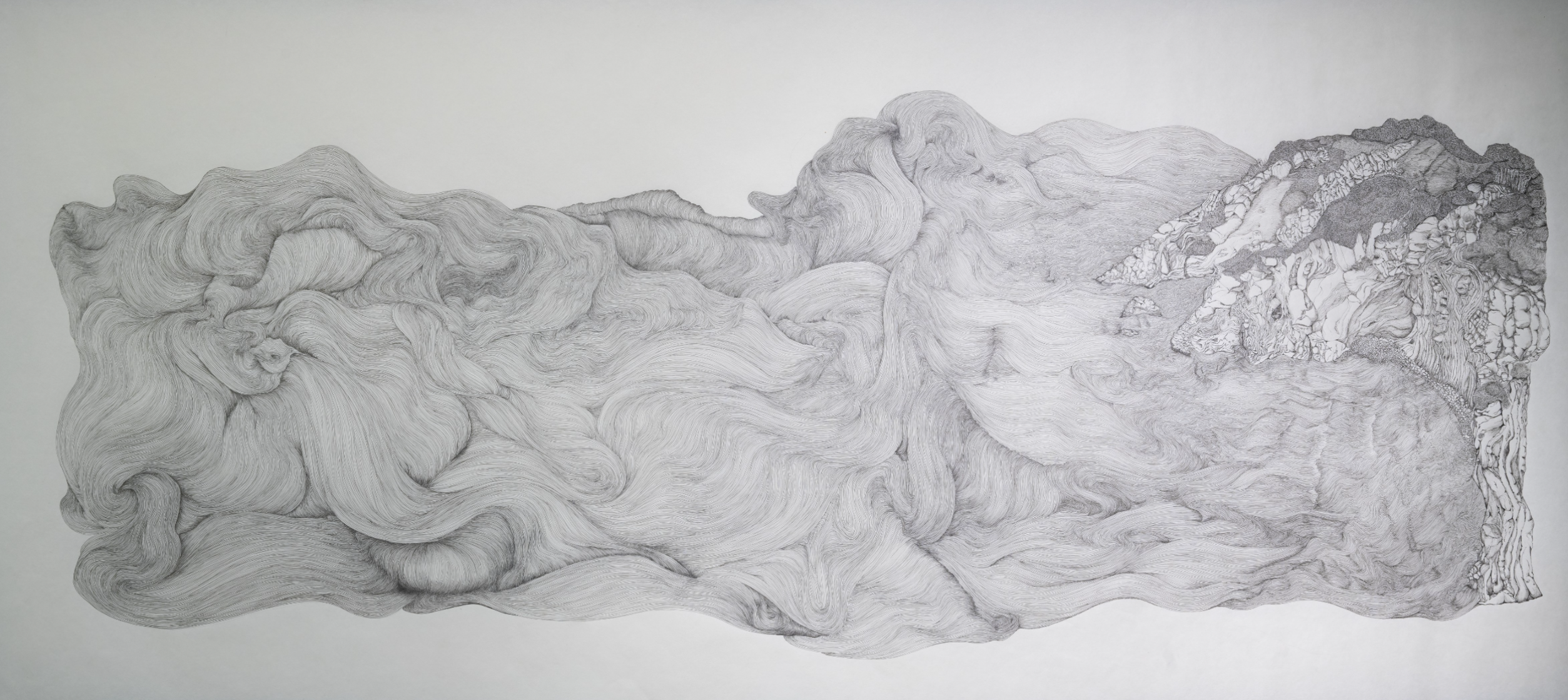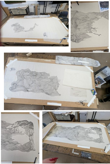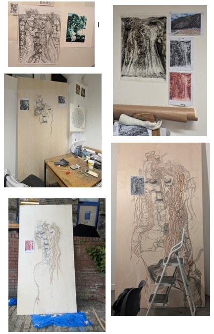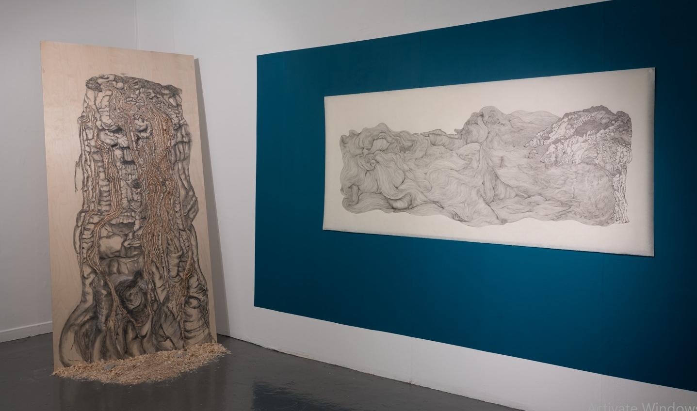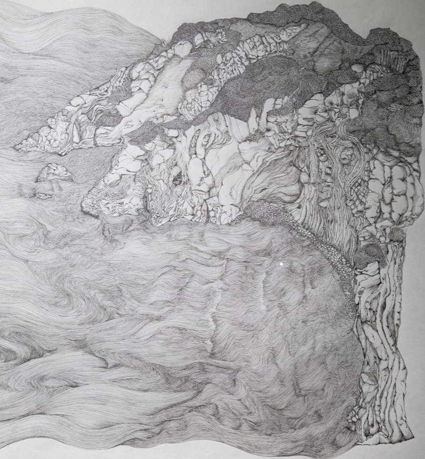 This body of work is a conversation between myself and nature, where my innermost thoughts, emotions, and experiences intertwine with the elements. Time is implicit throughout the works, bridging my discoveries and the larger narrative of erosion. 'The Fault' is a rockface eroded over time, forming a face of beauty, horror, and sadness, observing the Irish sea. It represents a metaphor for human accountability in the climate crisis, questioning the consequences of erosion. The perpetual, infinite movement of the sea shapes and draws our coastlines through erosion. Observing this, I recalled a quote by Cóilín Murray that inspired the process of this work as my practice is rooted in drawing. "There is no such thing as 'Drawing' as an entity, no more than life. We must be willing to let more 'in' the known and the unknown, and let all the 'BITS CLASH AND BANG IN THE DANCE', so that the most poetic, personal, private moments can complete a passage into the public arena."