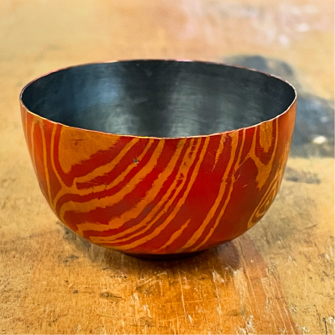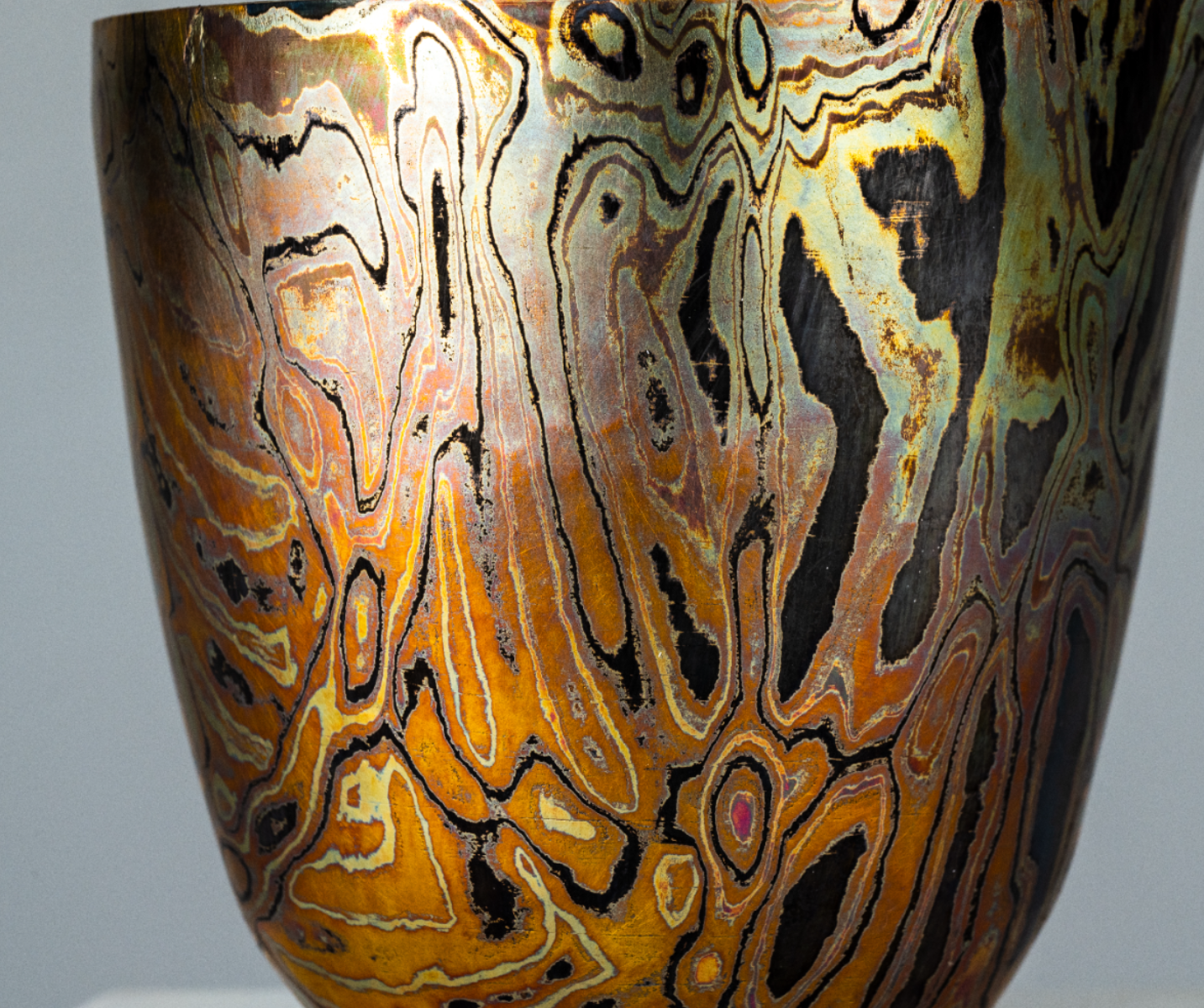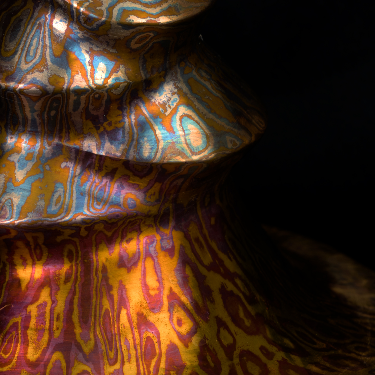 Henry Le Page The UNDUL Collection Mokume Gane Jugs and a Vase, embody the UNDUL Collection’s pursuit of elegance through material complexity. Undulating forms emerge from hand- raised designs, guided by the metallurgy of copper alloys and patination. Beginning with the billet, the process embraces unpredictability, allowing pattern, surface, and silhouette to unfold with an intentional spontaneity. Mokume Gane is a traditional Japanese metalworking technique developed in the early 17th century by the swordsmith Denbei Shoami. The name means “wood grain metal,” referring to the layered appearance of the patterns it creates. By stacking and fusing sheets of different metals, such as silver, copper, and shakudo, skilled artisans form a solid billet, which is then forged, carved, and manipulated to reveal organic layered shapes and patterns. Only one family maintained the tradition into the modern era, keeping it alive until its revival in the 20th century. Today, a small global collective of craftspeople continues to adapt and evolve Mokume Gane, applying it to jewellery, vessels, and sculptural forms. Personally, I use Mokume Gane to explore form, texture, and process in my jewellery and silversmithing pieces. Each work begins with a handmade billet, forged from carefully selected metals and shaped through a process that requires both patience and precision. What draws me back to this technique again and again is its unpredictability and the challenge it presents, a constant dialogue between maker and material. The pieces here are small snapshots of that ongoing, hands-on exchange. I seek to expand this tradition, experimenting with Mokume Gane in ways that bring fresh forms and a stronger presence in the UK @henry_le_page
