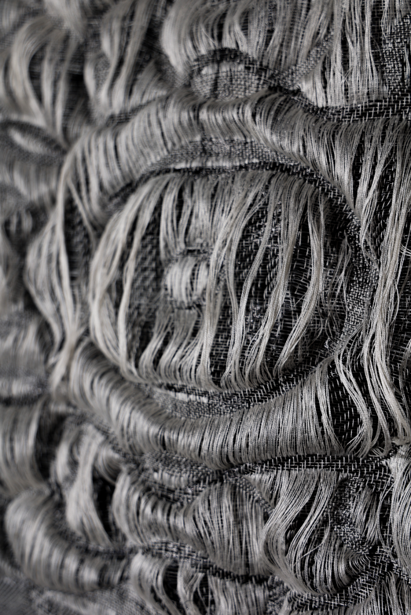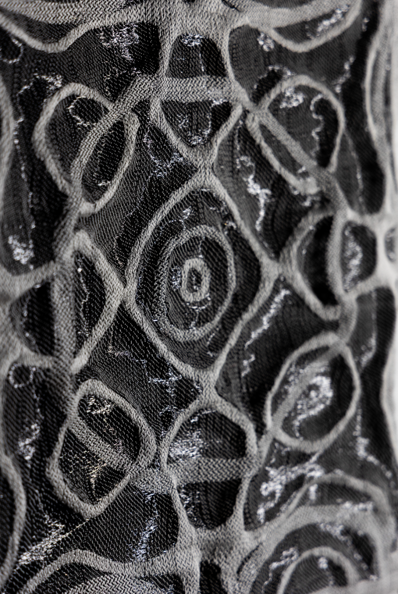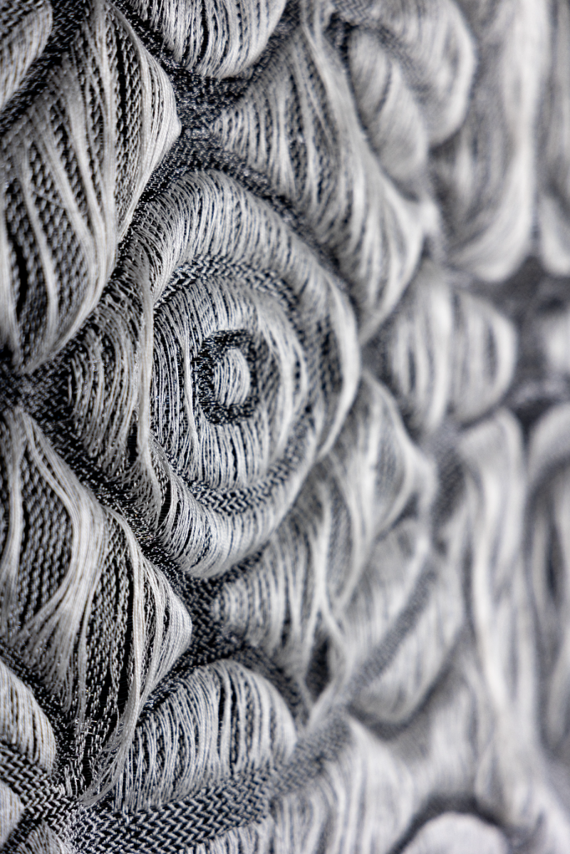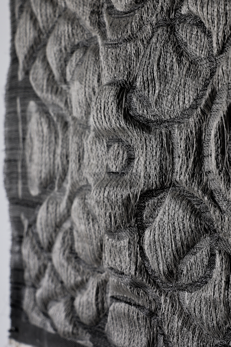 CONFLUENT PATTERNS investigates material translation of sound phenomena through textile structures, exploring how Chladni figures, acoustic wave patterns first documented by Ernst Chladni, can be reimagined through contemporary weaving. Operating at physics, digital manipulation, and material exploration, this three-phase methodology begins with digital transformation of original Chladni patterns, systematically layering multiple acoustic formations while preserving mathematical integrity. The TC2 jacquard loom serves as a technological interface between digital composition and material manifestation. Black copper wire combined with cotton weft creates visual contrast and material dialogue, metallic elements introducing conductivity referencing sound's electromagnetic properties. This work transforms transient, invisible sound vibrations into enduring material objects, challenging conventional temporal experiences. The resulting textiles function simultaneously as scientific documentation, artistic interpretation, and independent material explorations, offering new perspectives on experiencing sound's invisible architectures.