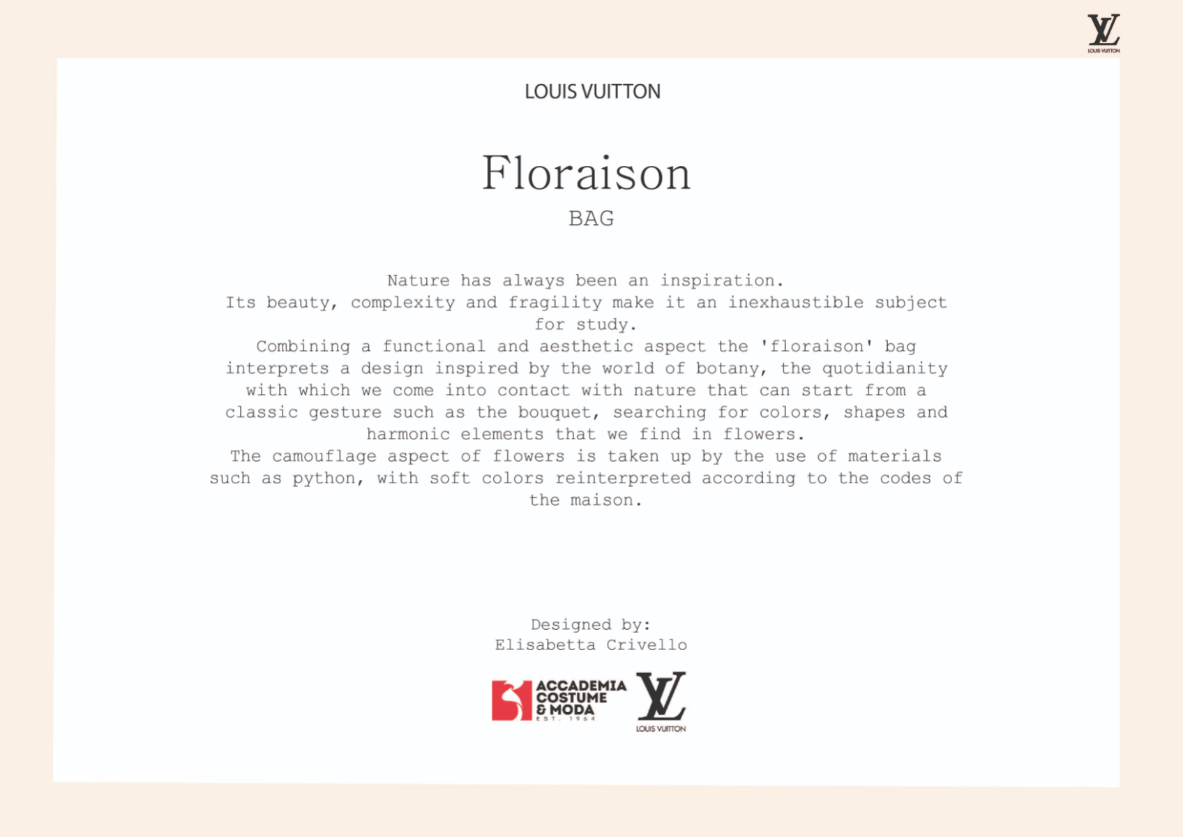 Louis Vuitton graduate initiative contest accessories project.