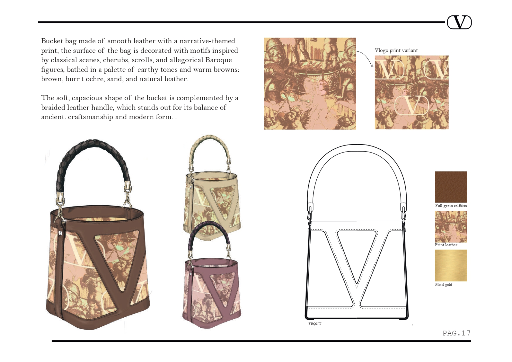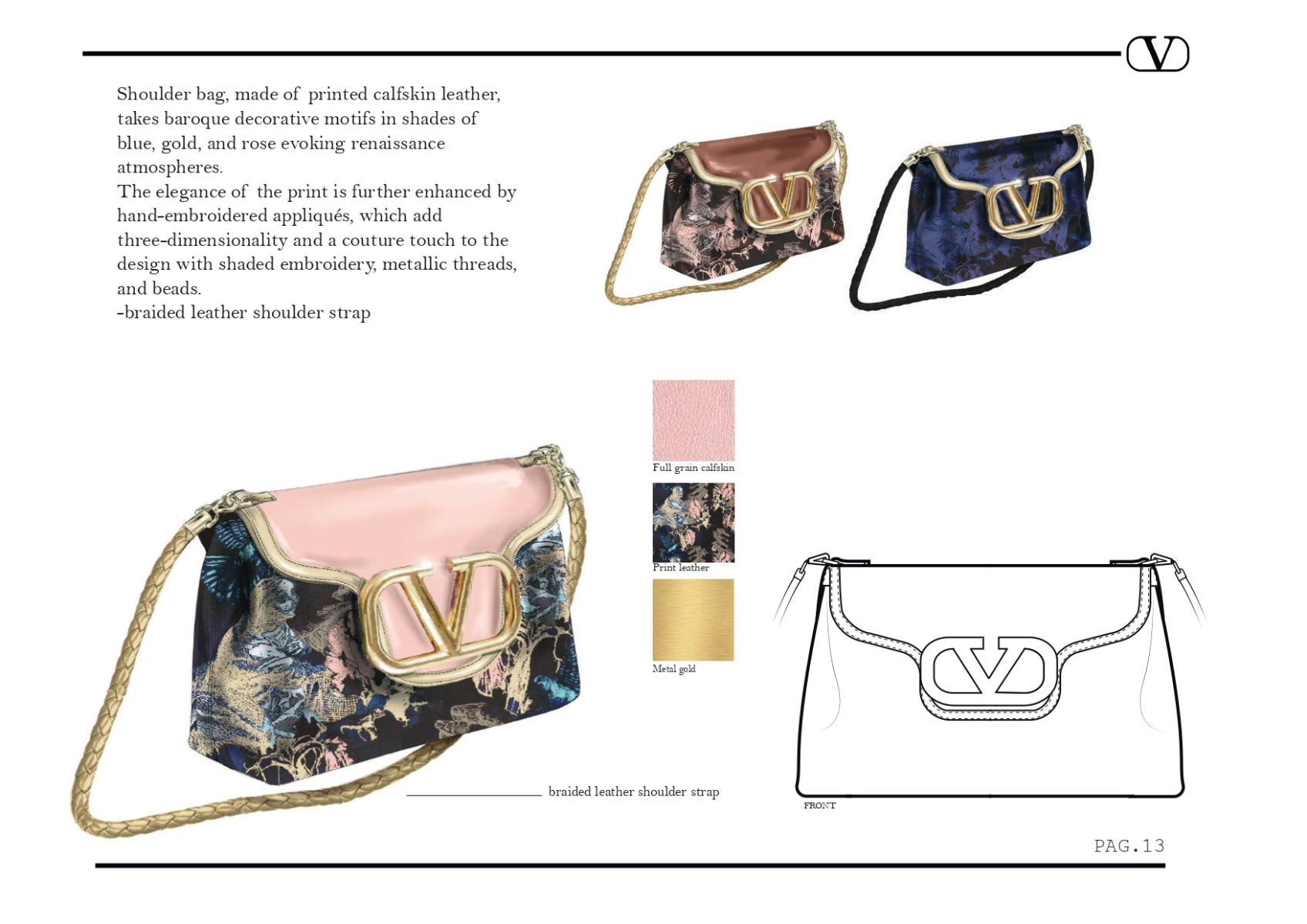 A tribute to the visual richness of the Baroque and the timeless appeal of figurative art, the "Vocation" collection for Valentino explores the encounter between decoration and memory. Bags become canvases to wear: elaborate prints, inspired by 17th-century paintings and ornamental motifs, blend with an intense, romantic and theatrical palette in which deep reds, opulent golds and powdery hues triumph. The shapes evoke vintage elegance reinterpreted in a contemporary key. A collection that tells stories of art and love through meticulous details, interweaving the aesthetic heritage of antiquity with the Maison's modern vision.