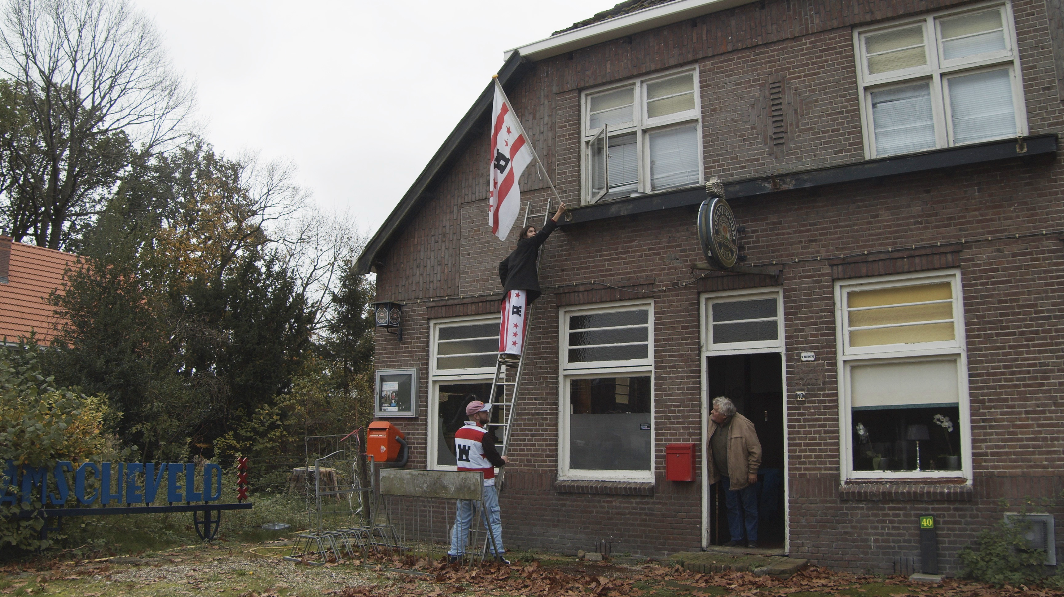 When is the moment you think: I'm going to hoist my regional flag? Who are these flaghoisters? And what does it mean to identify with your region? These are questions that filmmaker Okki Poortvliet, theatermaker Hans van der Werf and designer Vera Vos asked. So, they went through the whole of Drenthe, the region in the North of The Netherlands where all three of them grew up, to collect as many stories as possible from hoisters of the flag of Drenthe. The Flaghoisters is a film about the confrontation between the countryside and, as the Drents call it, “the city dwellers”. A story about a disappearing language, the safety of your village, creating each other, being proud, and just acting normal. Next to the film, Hans, Vera and Okki developed a theaterplay that was performed on different locationsin open airthroughout Drenthe.