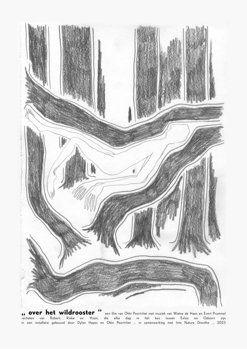 In Over the Cattle Grid you watch and listen to Robert, Rinke and Ytzen. Three people who spend every day in the woods between the villages of Odoorn and Exloo. Ytzen and Rinke because they live in the middle of the woods, Robert because he cycles through the woods every day to get to work. All three experience the world behind the cattle grid as a different world than the one in front of the cattle grid. Behind the grid there is peace, the forest is sometimes endless and time seems to pass in a different way. Or as Ytzen says "there is no time, there is just being". Yet they experience a lot of change, because the forest is different every day. But Robert, Rinke and Ytzen also see things they have never seen before, such as trees that lose their leaves in September and plants that want to start growing in the middle of winter. You will also see Wietse de Haan and Evert Prummel, they build instruments from dead trees. All the music you hear in the film was played on these tree instruments and recorded in the forest. Okki herself also occasionally passes by. She has been coming to this piece of forest all her life, which is a kilometer from the house where she grew up. Not only has she known the forest, but also Robert, Ytzen and Rinke for most of her life.